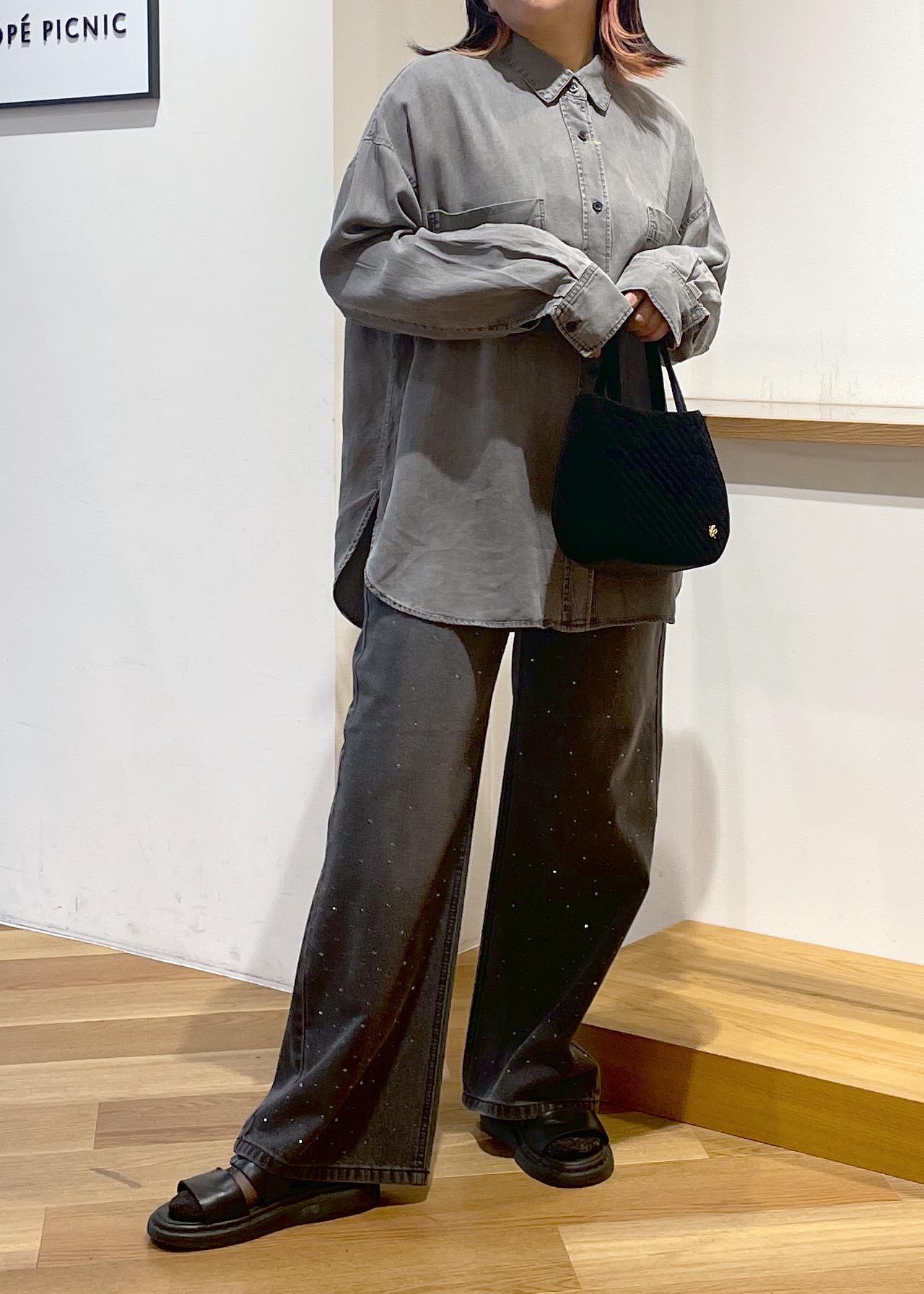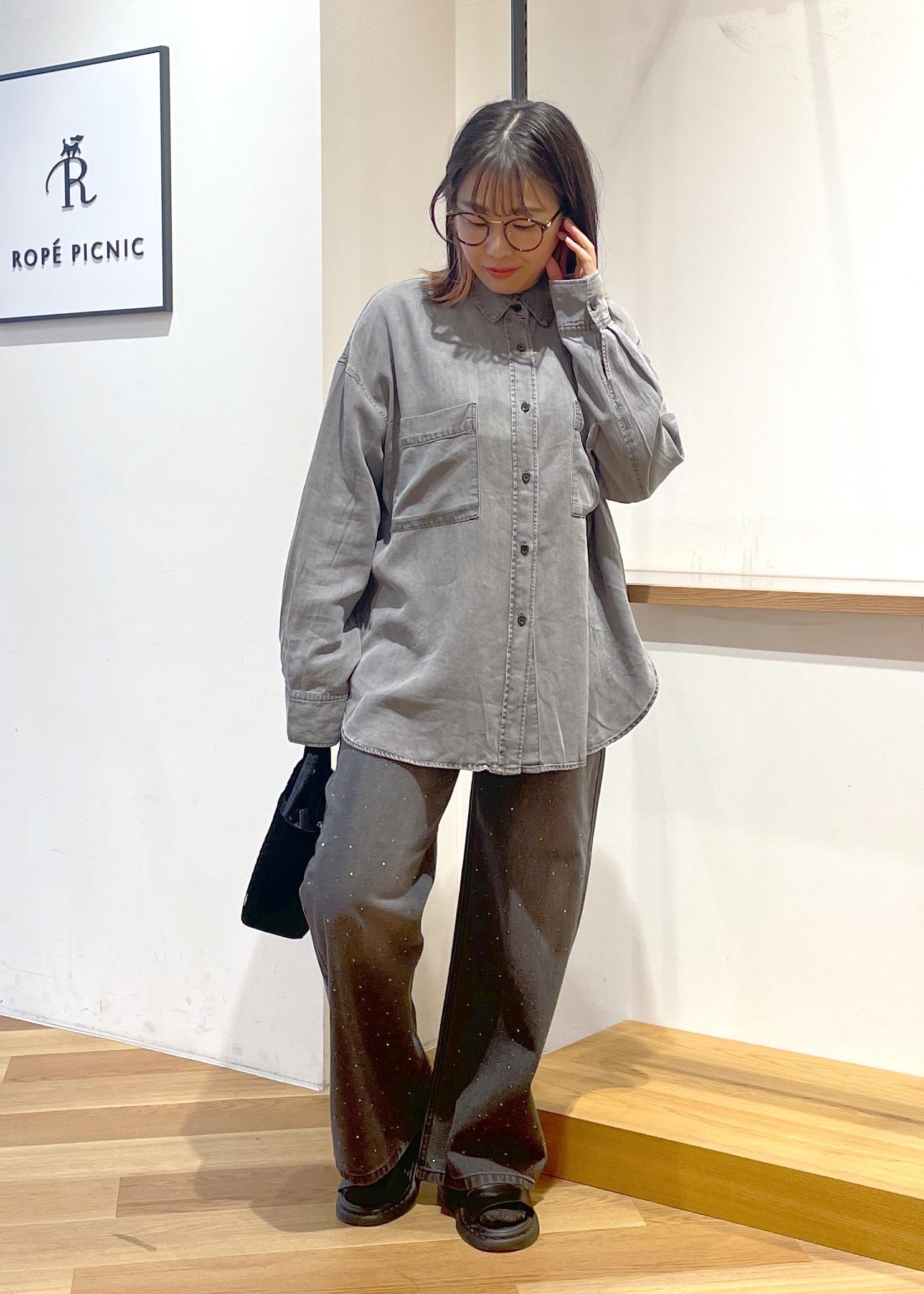 ROPÉ PICNICシャンブレーデニム調シャツチャコール / 38¥4,499レビュートロンとした着心地でとても肌触りが滑らかです。身幅もゆったりしており、お腹もお尻も隠れるので体型カバーもできちゃいます○