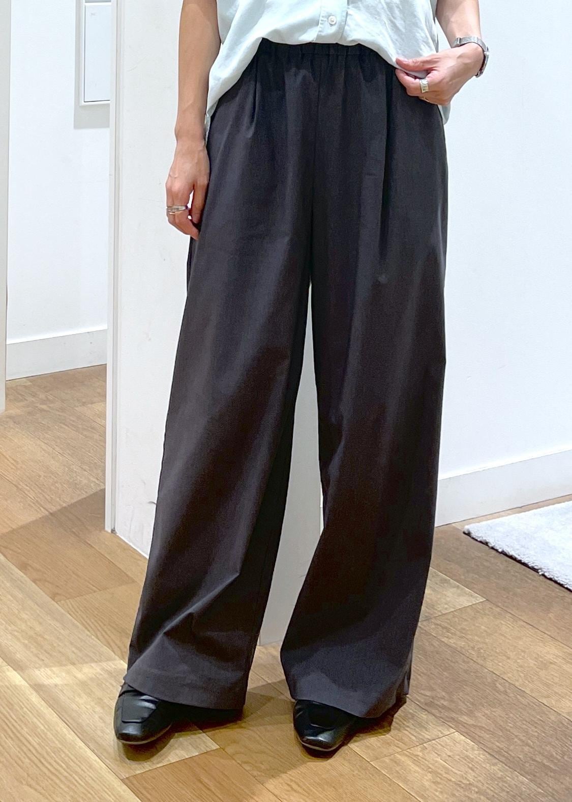 以前のイージーパンツより、少しハリ感のある素材です。履き心地は柔らかくサラッとした肌触り。