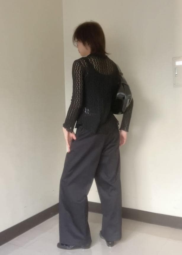 シアートップスの透け感とタイト感、パンツの太さで今っぽさ出してみました!