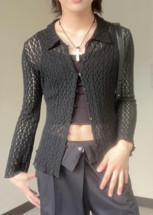 レースポロ襟カーディガン