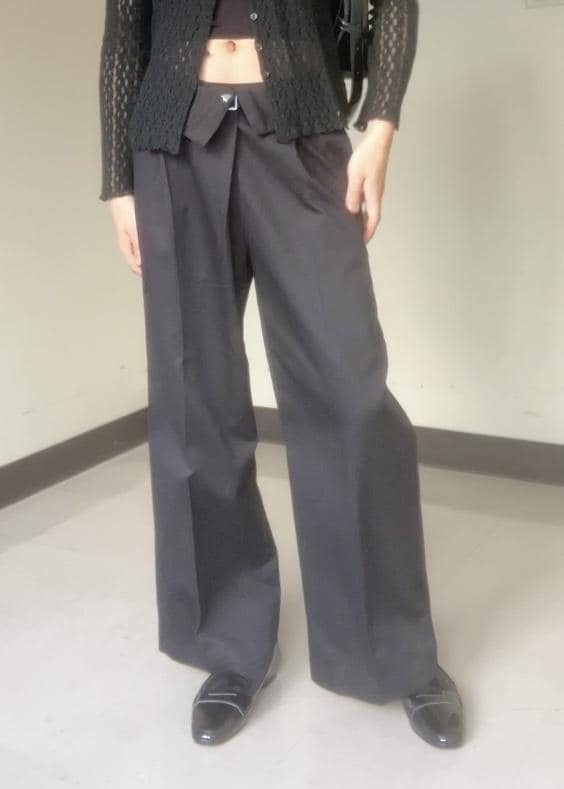 程よい太さで流行りのゆったり感をだしつつ、ダブルタックが入ってるのでキレイさもあるアイテムです!