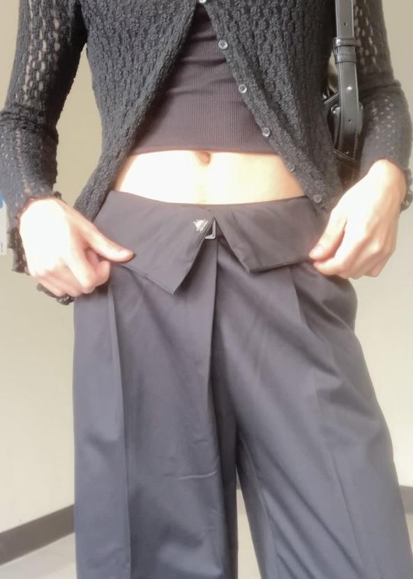 ベルトより上部の布を折って着用するのがオススメです!魅せパンしてもかわいいですよ!