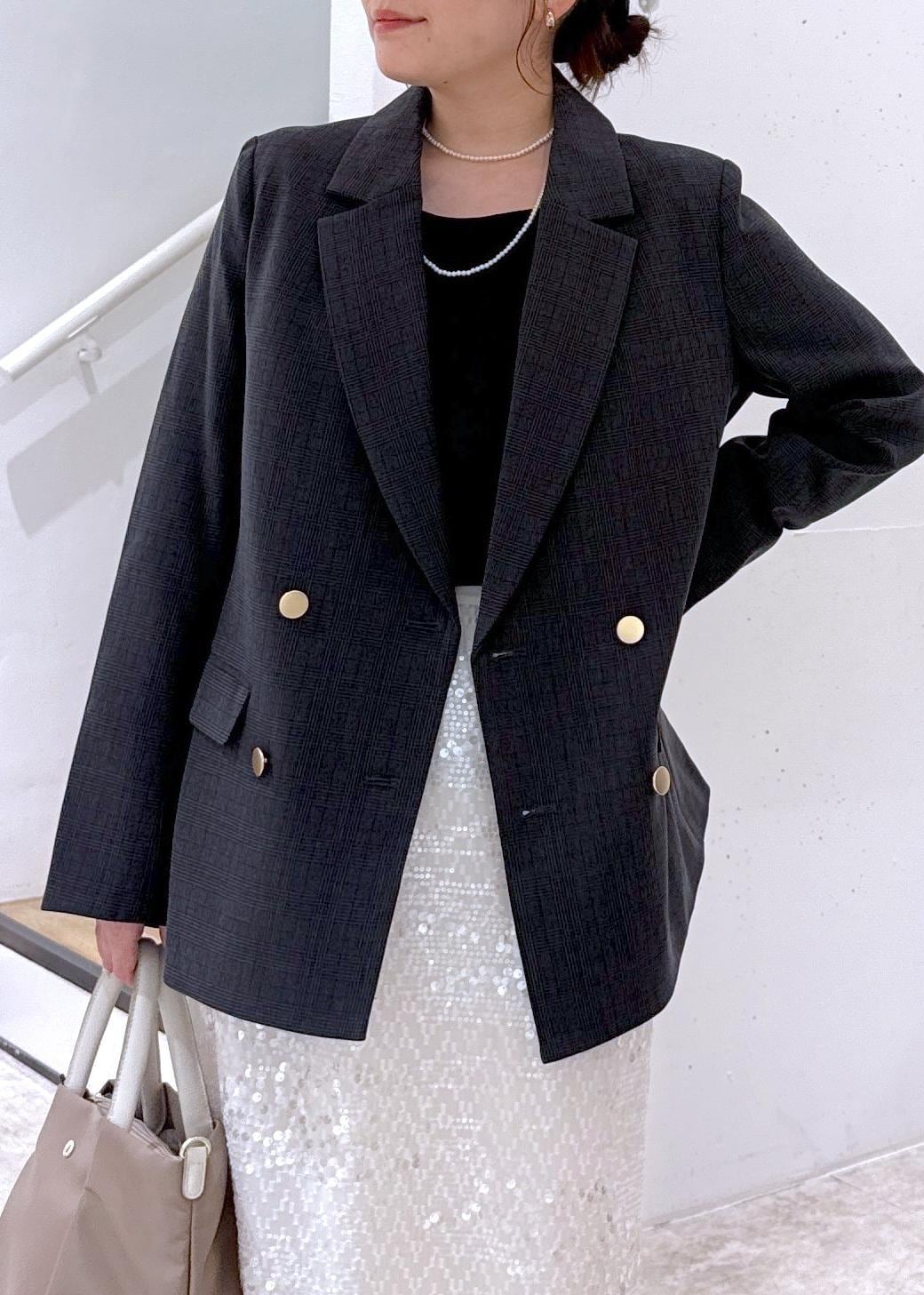 ROPÉ PICNIC【WEB限定・ミドル丈】レディハンサムシリーズ ウールライク金ボタンジャケット(半裏地)/通勤対応ブラック系 / M¥8,998レビュー着丈がヒップが隠れる長さで、GDV55100の通常丈のMよりら着丈が6cm長いです。袖丈などはほぼ変わらないので、着丈が長い方がお好みの方はこちらのデザインがおすすめです◎