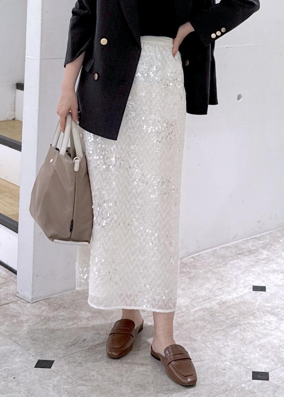 アウトレットROPÉ PICNICスパンコールアイラインスカートオフホワイト / 38¥3,245レビュー着丈が脛が隠れる長さです。