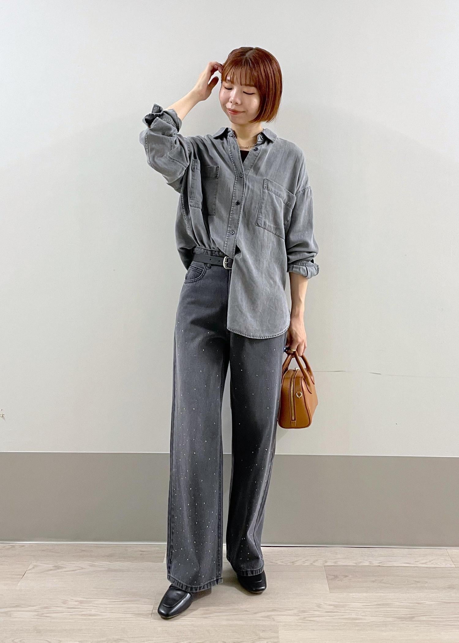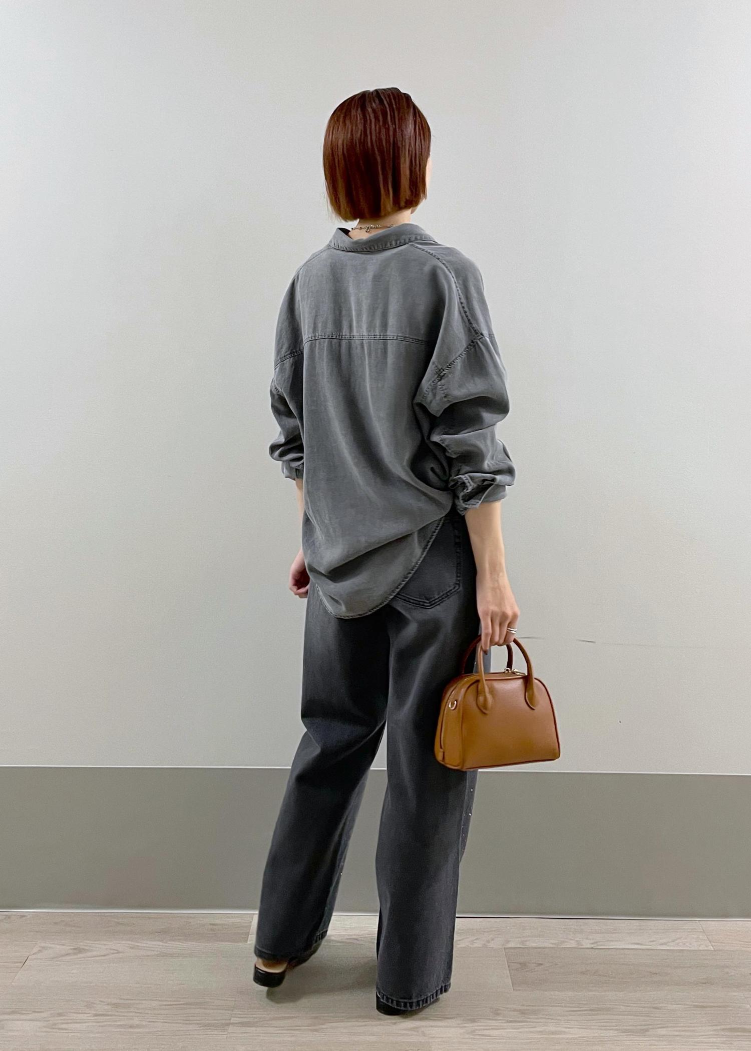 ROPÉ PICNICシャンブレーデニム調シャツチャコール / 38¥4,499レビュー肩まわり、身幅、着丈ともにゆったりとしたオーバーシルエットなので、羽織としてもインナー選ばず合わせて頂きやすいサイズ感です。