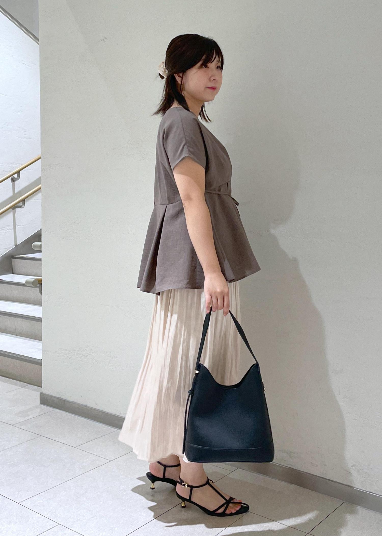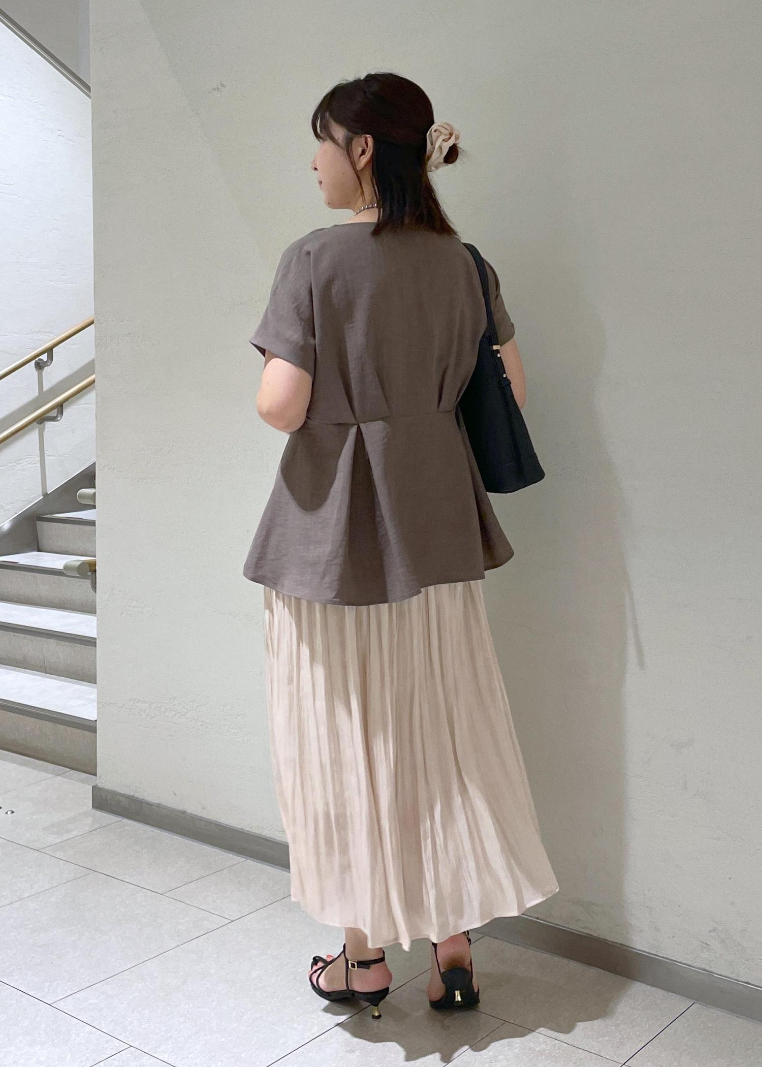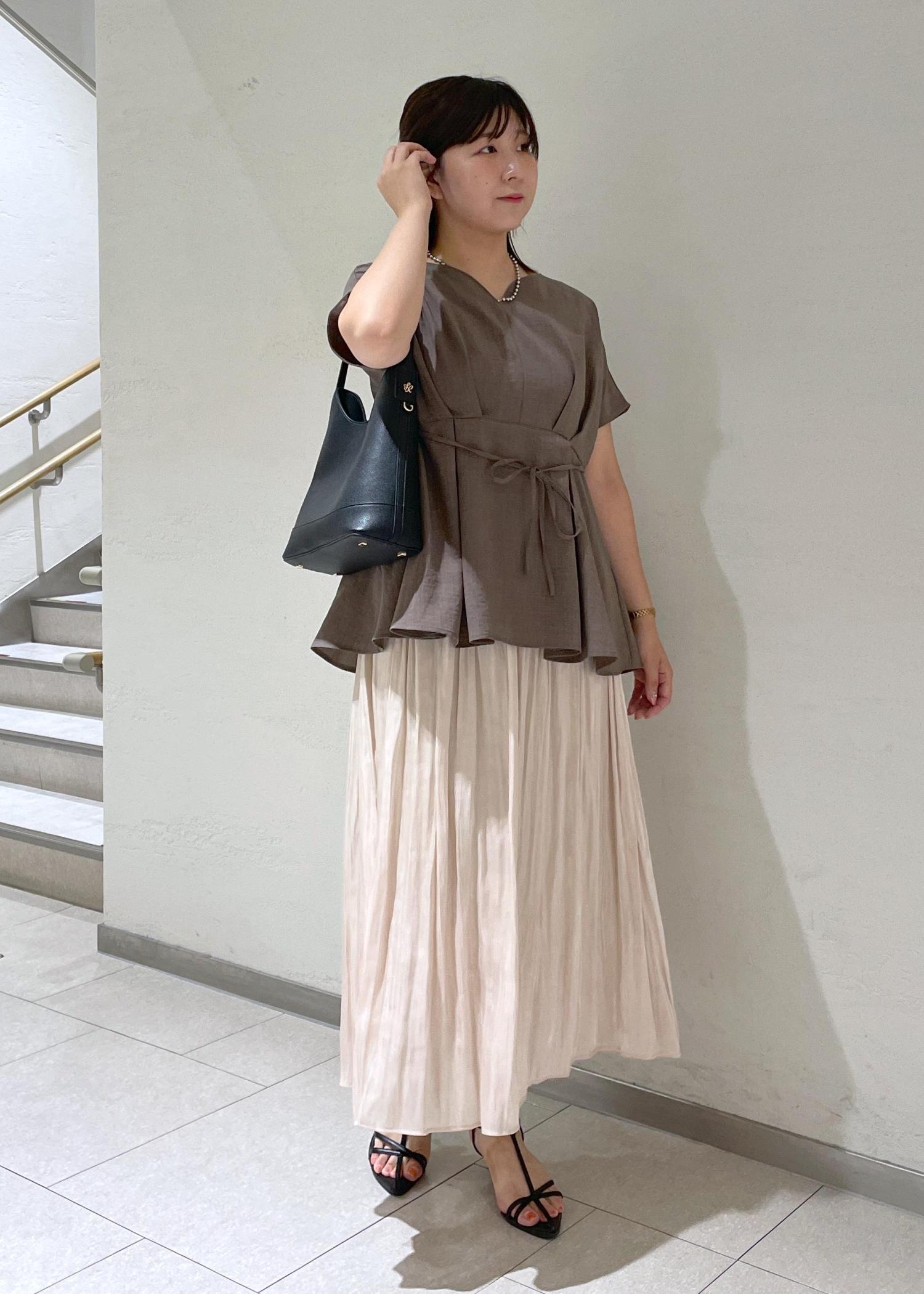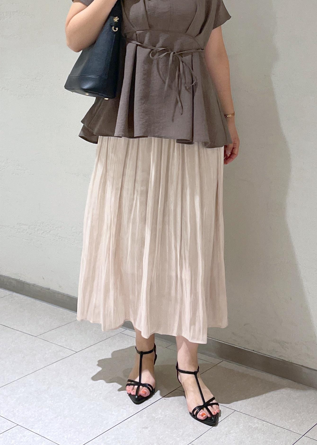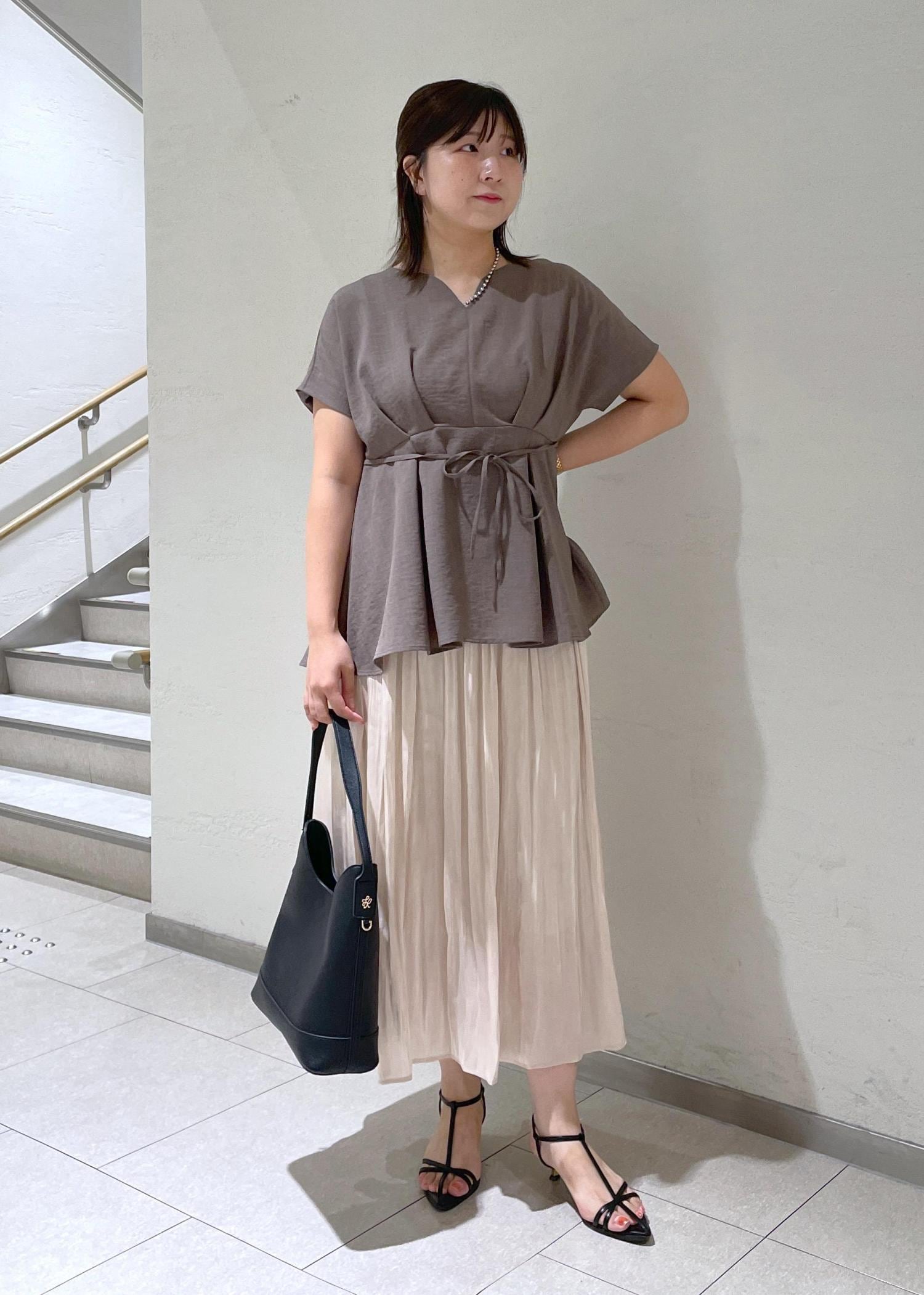 ウエストがキュッと引き締まっているので、プリーツスカート合わせも膨張せずすっきり着ていただけます。