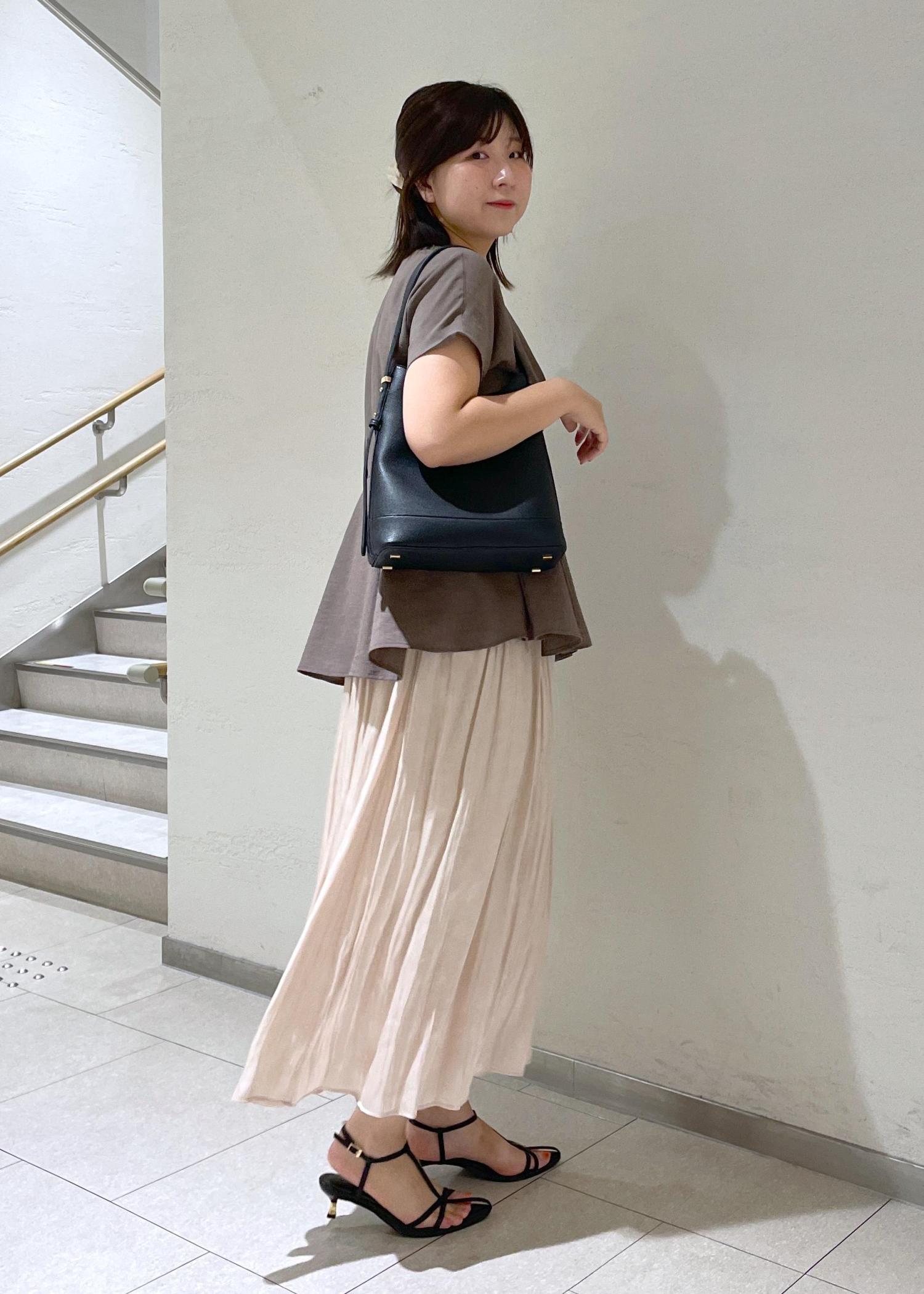 165cmの私は少し着丈が足りないように感じたので、ストラップ付きのサンダルや靴下合わせで丈感が気にならないようにするのがオススメです。 -
