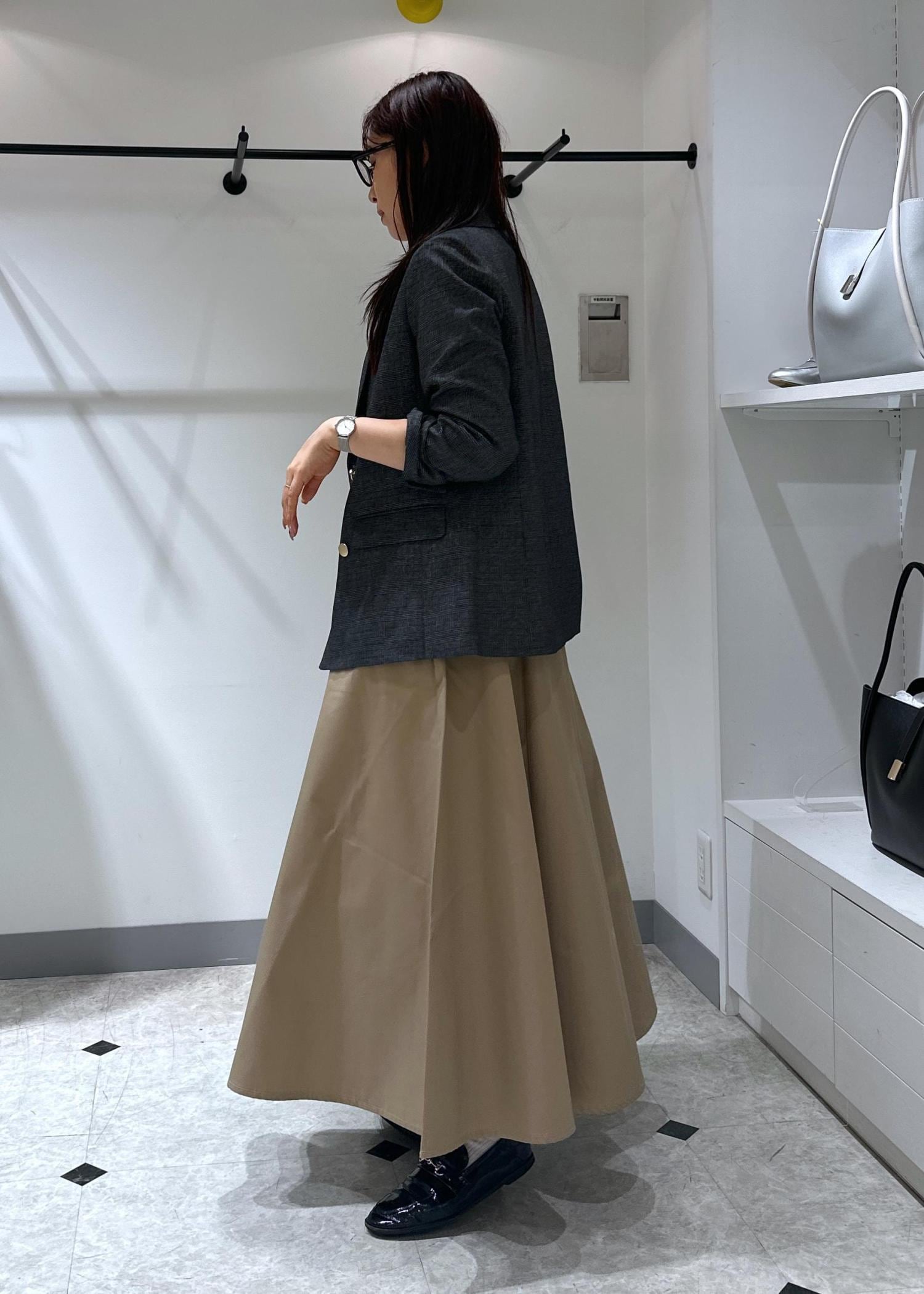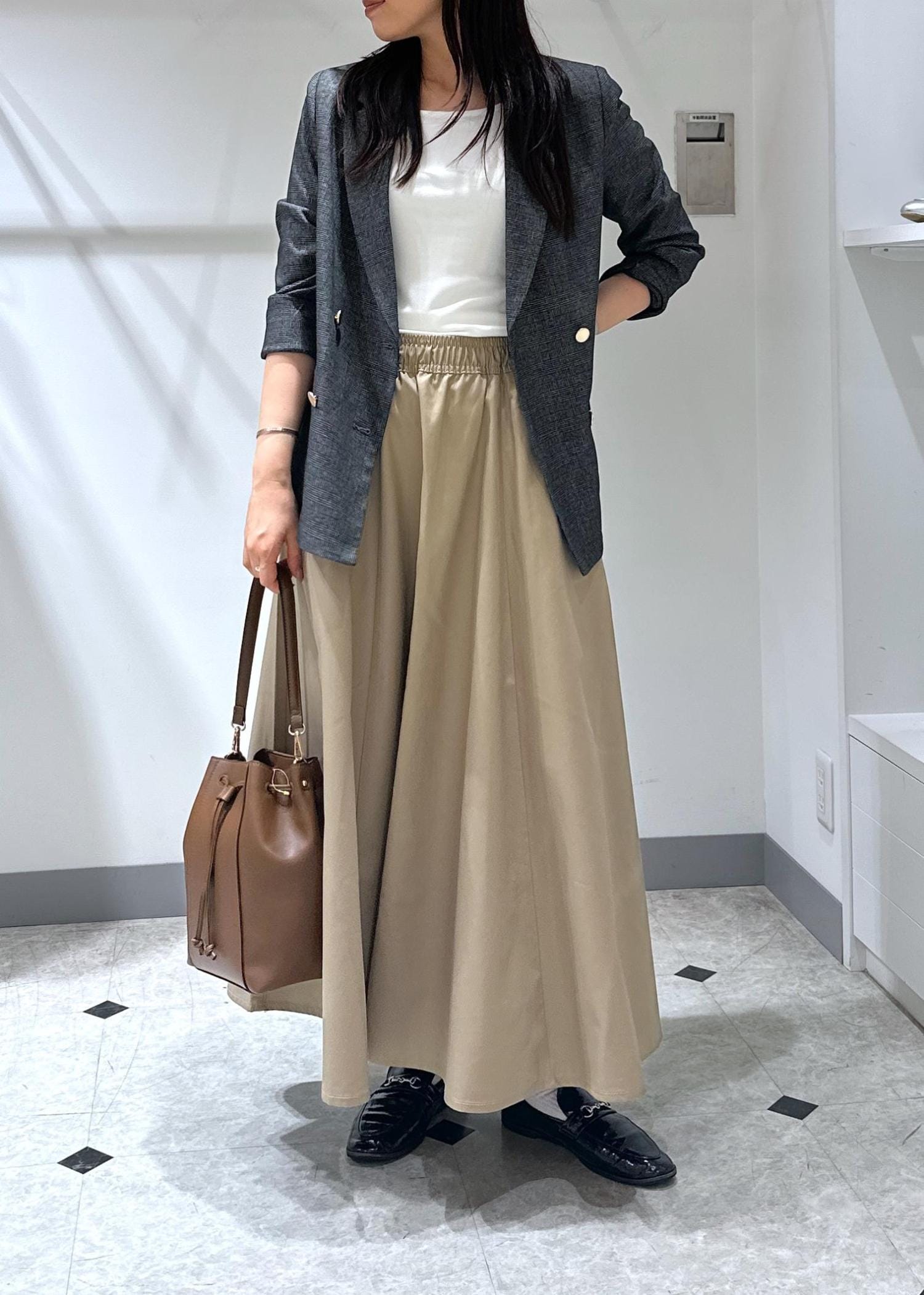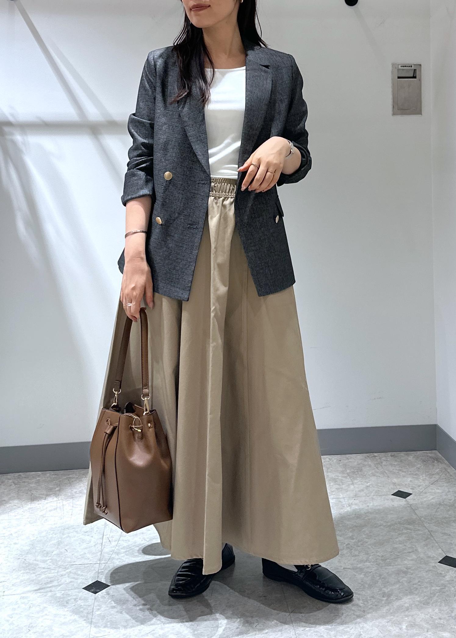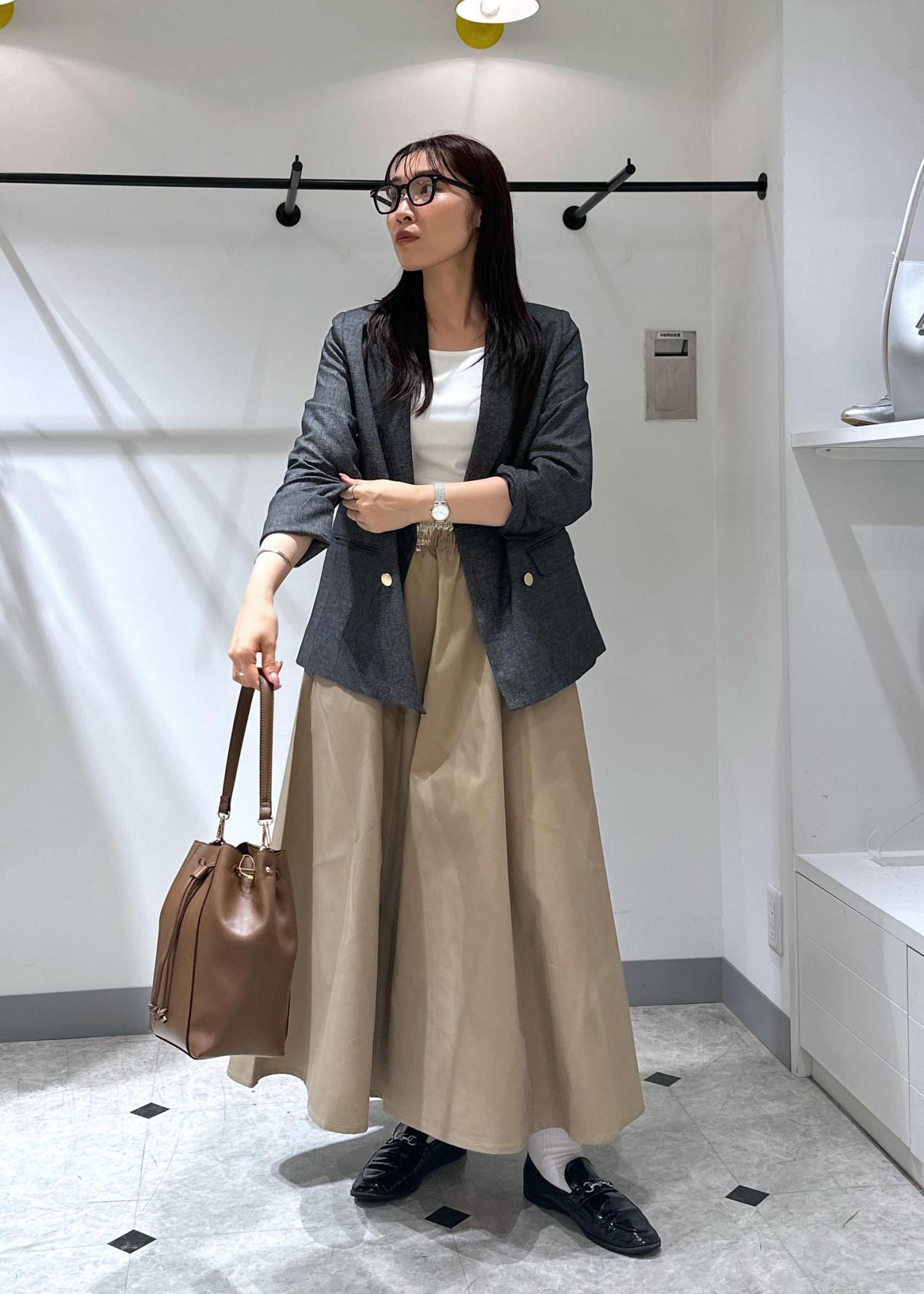 金ボタンジャケット×スカートの大人カジュアルスタイル
