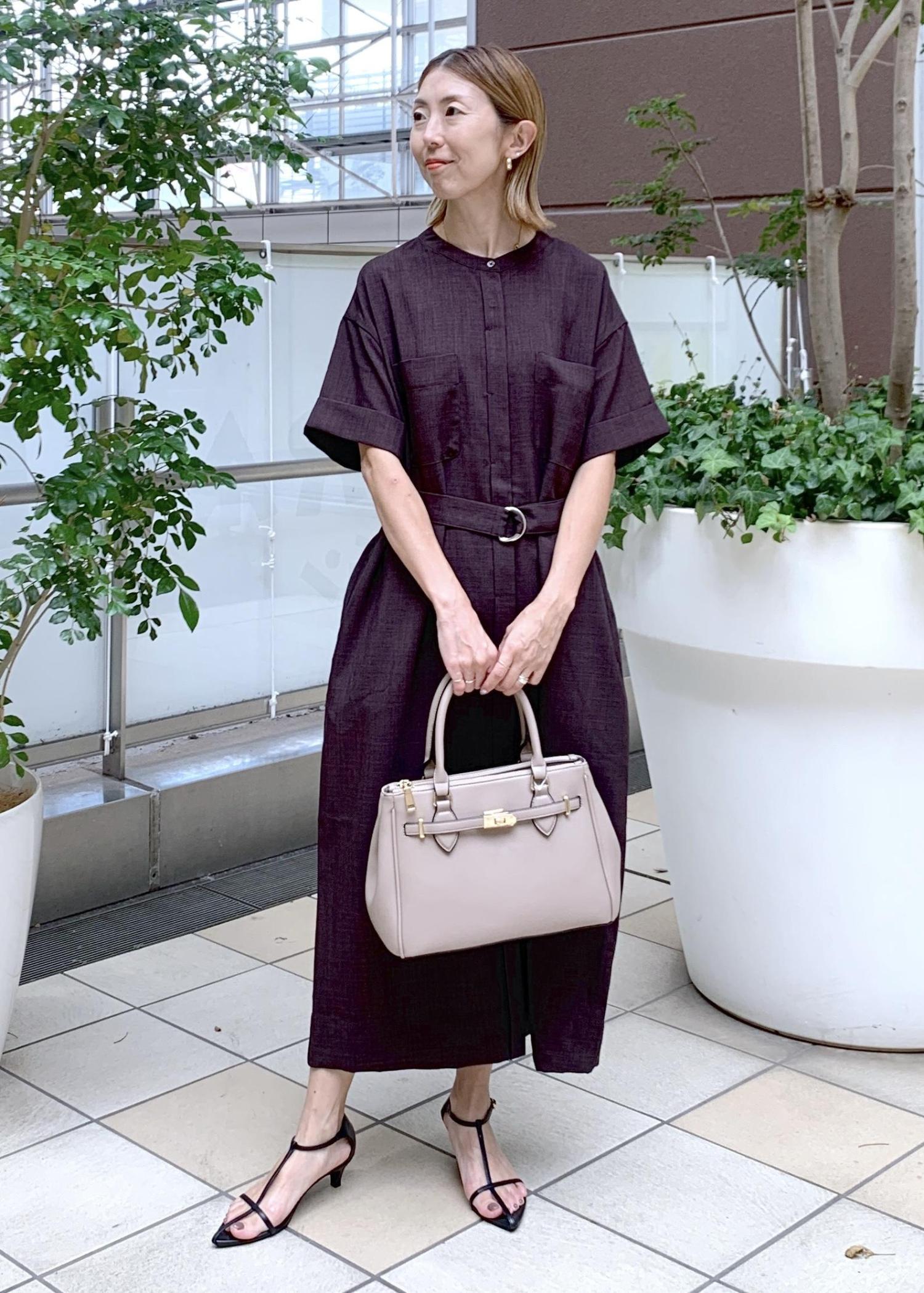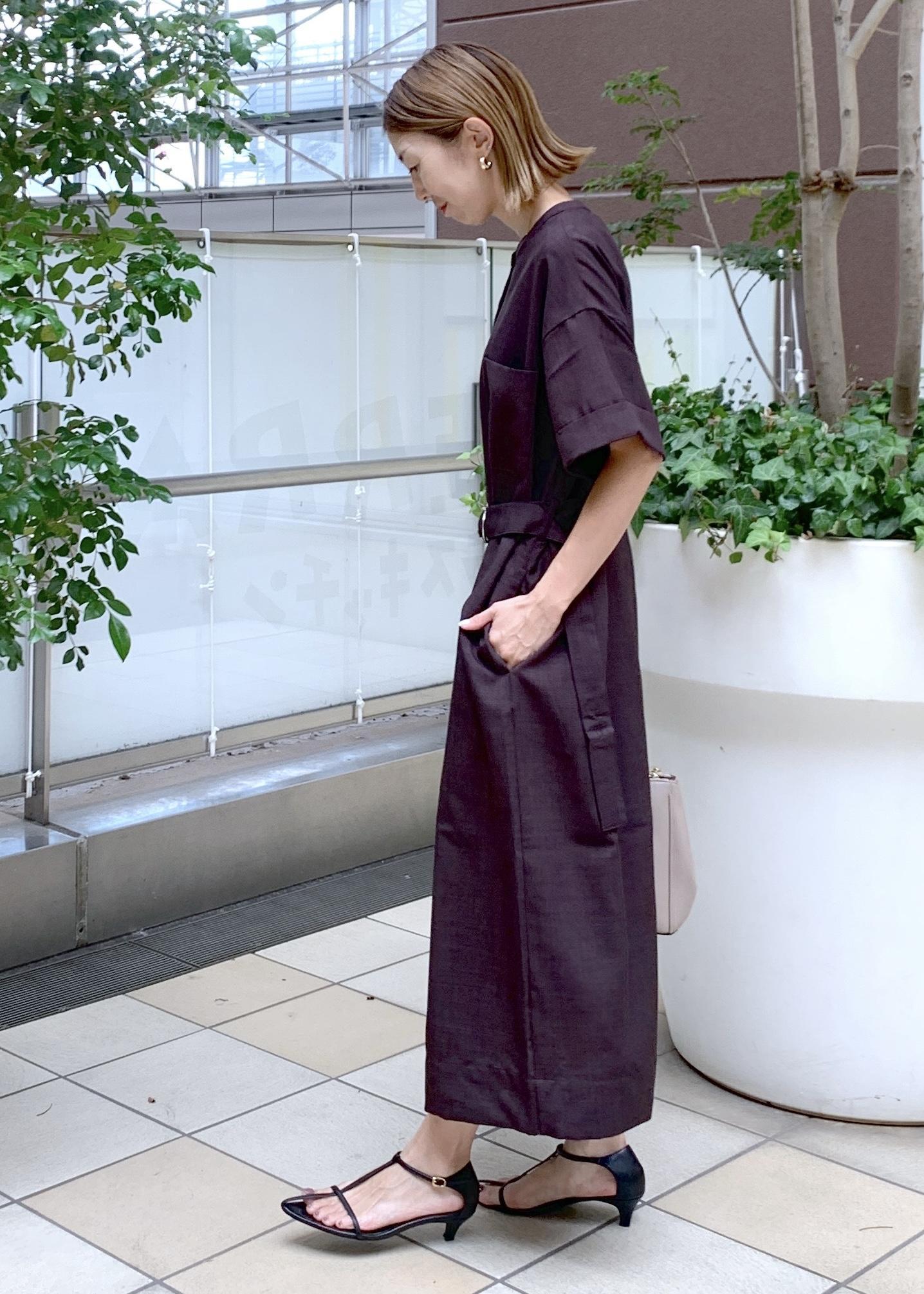 一枚でキチンと感があり、お仕事にもおすすめのワンピーススタイリングです。