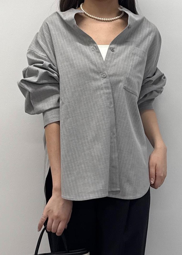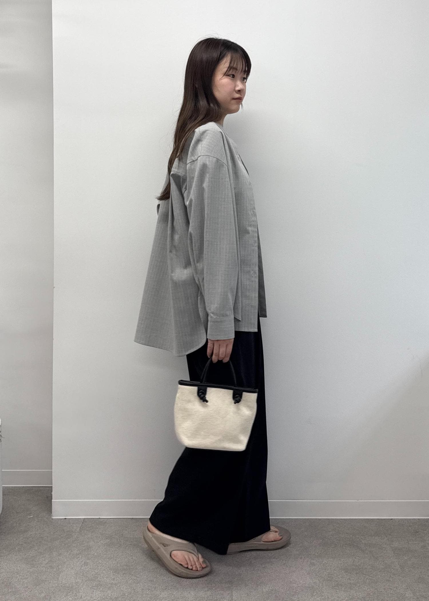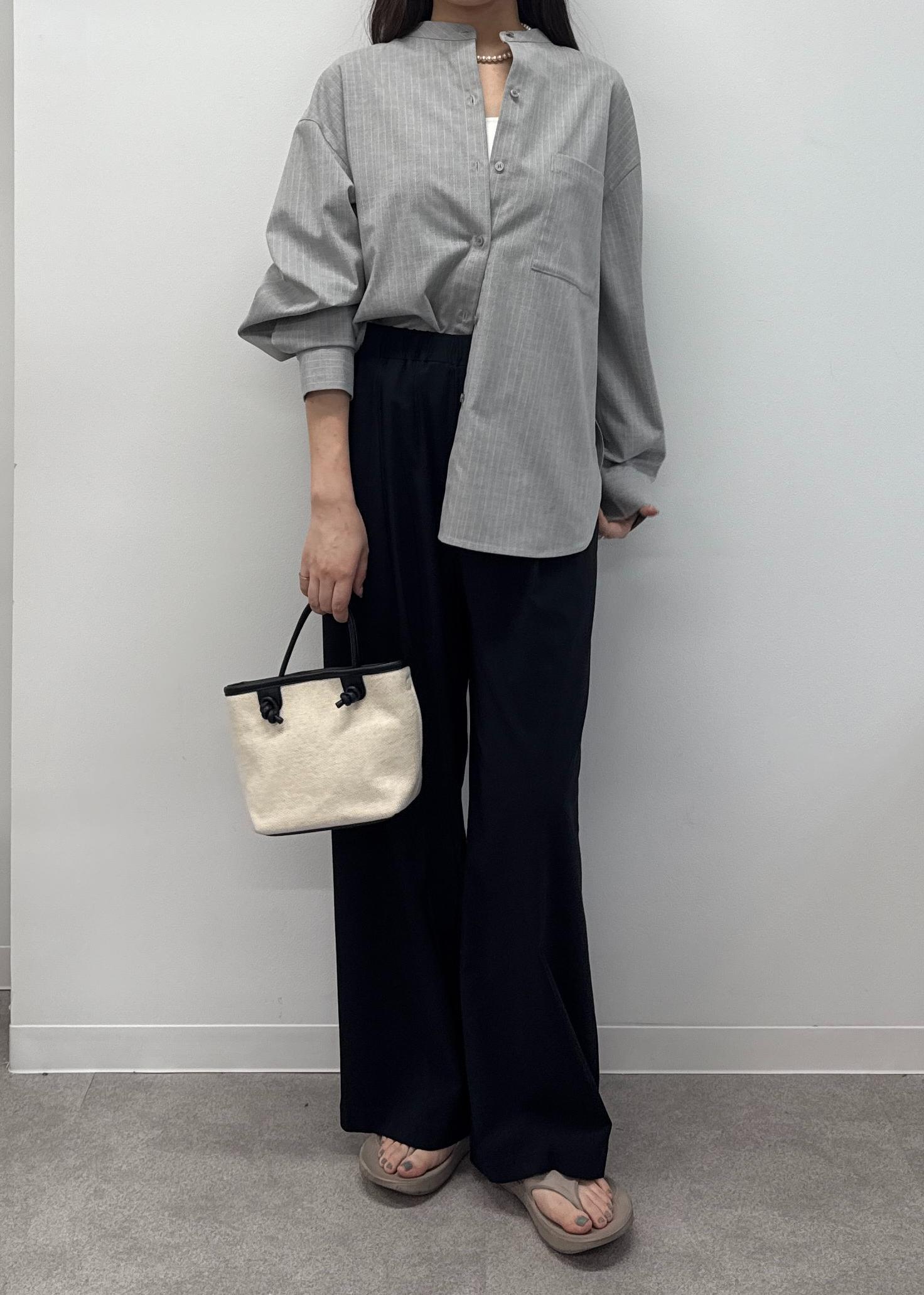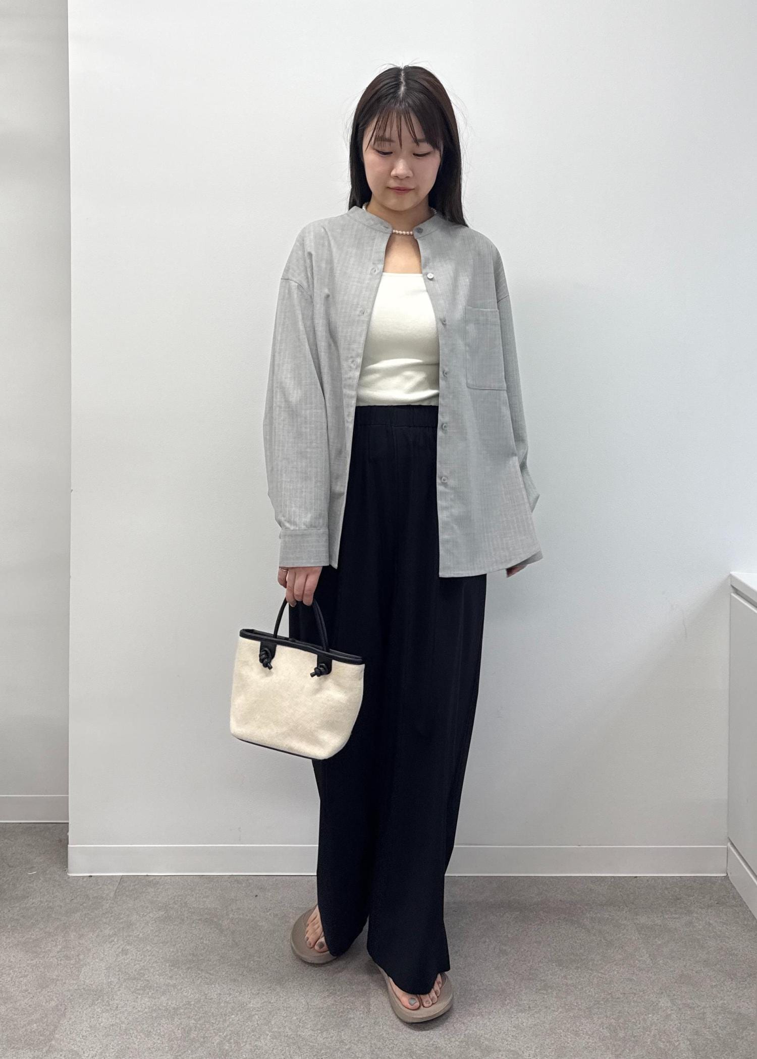 ROPÉ PICNICバンドカラーラウンドヘムストライプシャツ/セットアップ対応ライトグレー / F¥4,499レビューやや重量感のある形がしっかりとしたシャツで、メンズライクな着こなしにも良く合います。