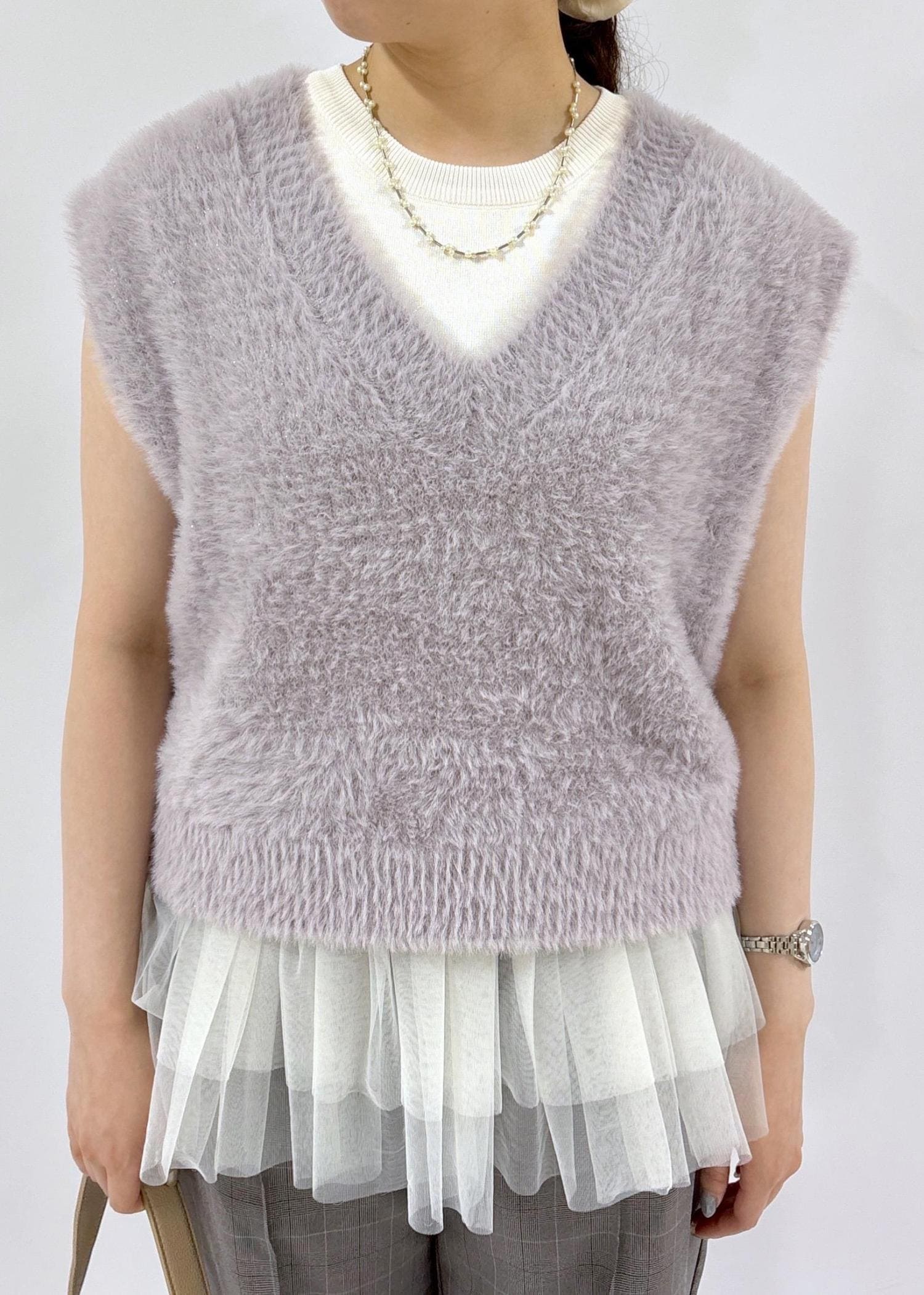ROPÉ PICNICショートフェザーニットベストパープル系 / F¥3,993レビューずっと触っていたくなるようなふわふわで触り心地が良いアイテムです。ショート丈のためバランスが取りやすく、低身長さんにもオススメ◎