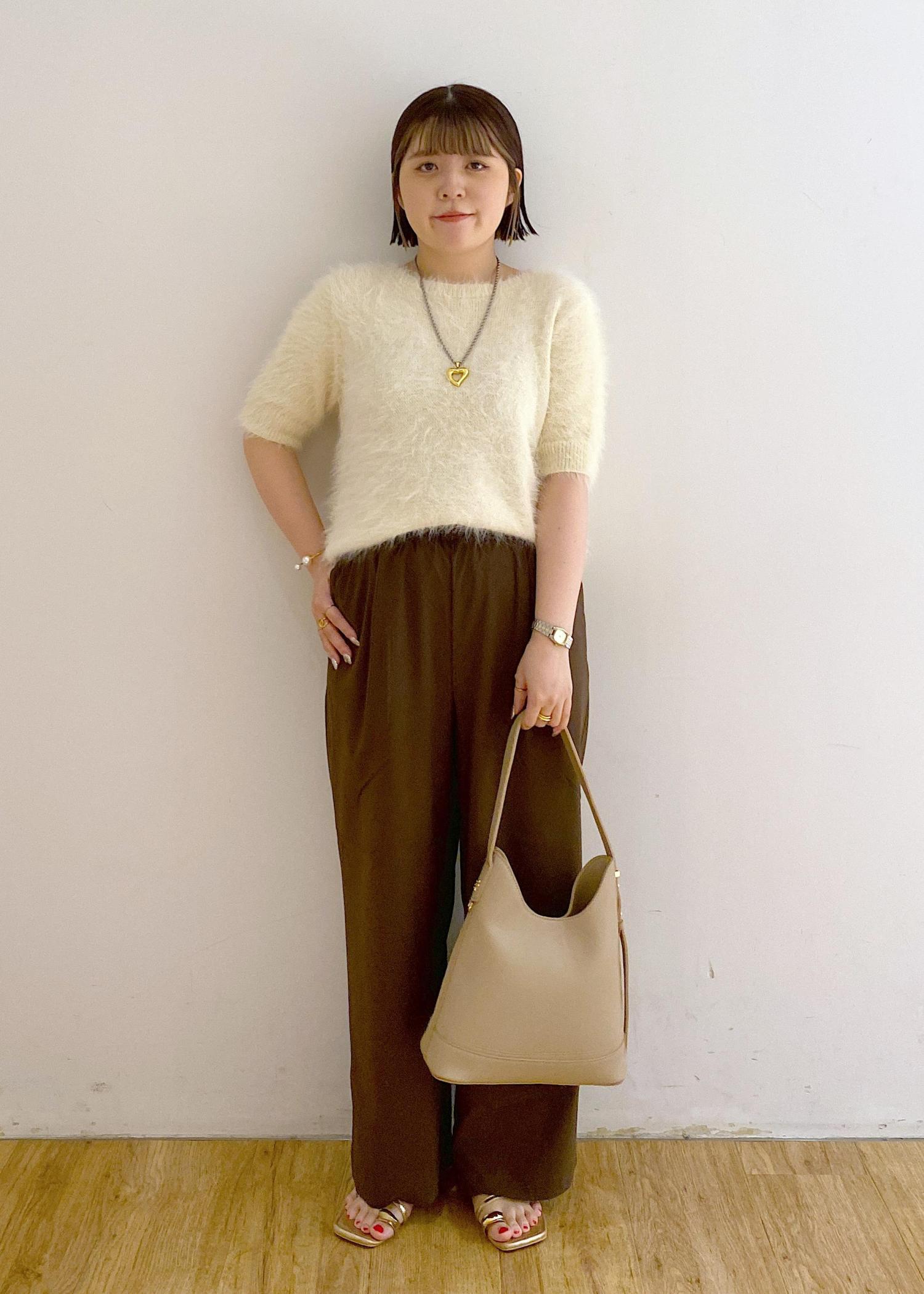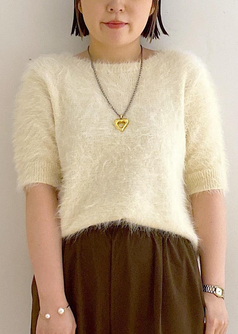 ROPÉ PICNICシャギーニットハーフスリーブプルオーバーキナリ / F¥3,993レビュー156cmでお腹周りにかかる長さ。袖は膝にかかります。ゆったりとしたサイズ感で、チクチク感も全くないです◎キナリを着用しましたが透け感なく着用できました◎
