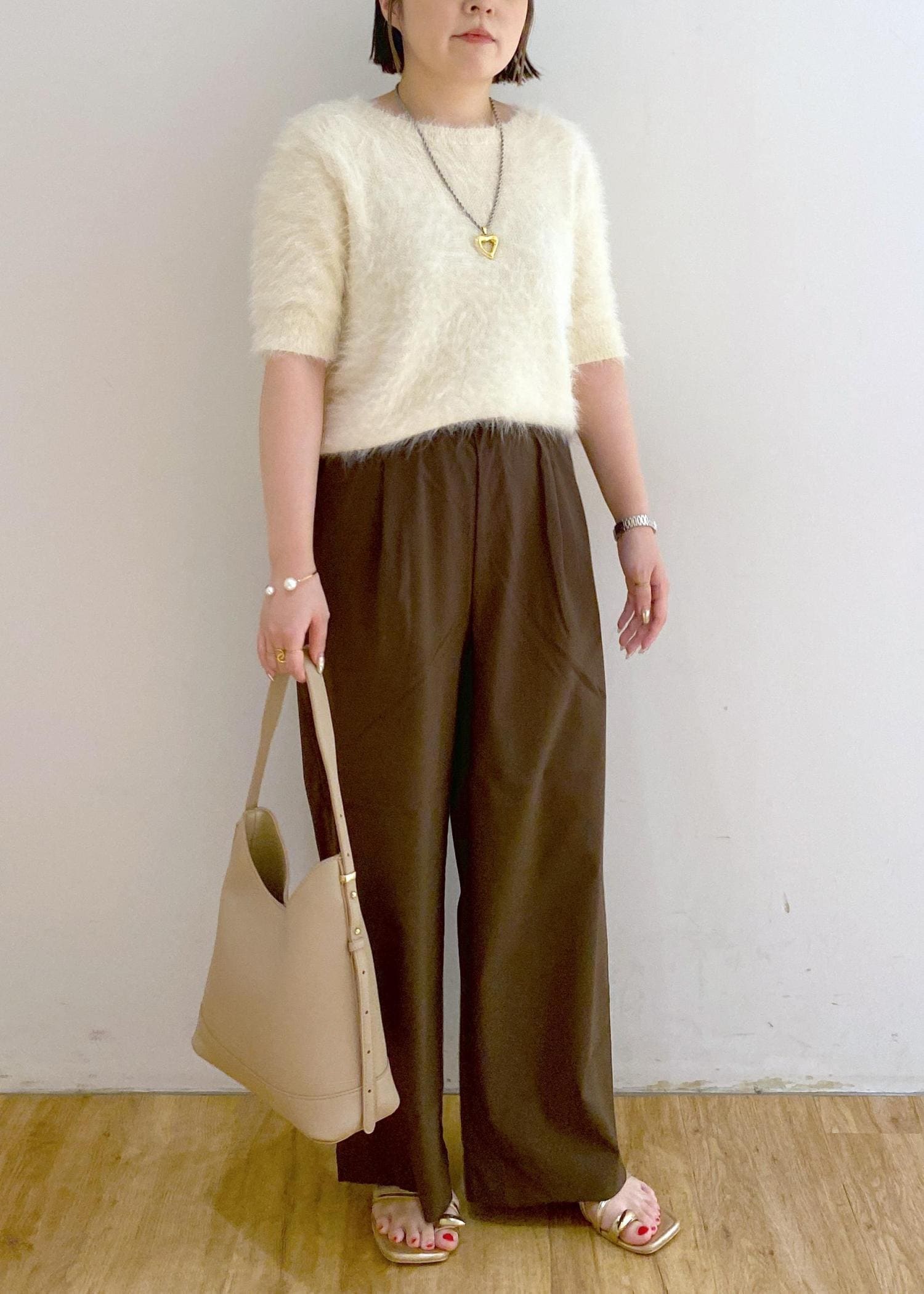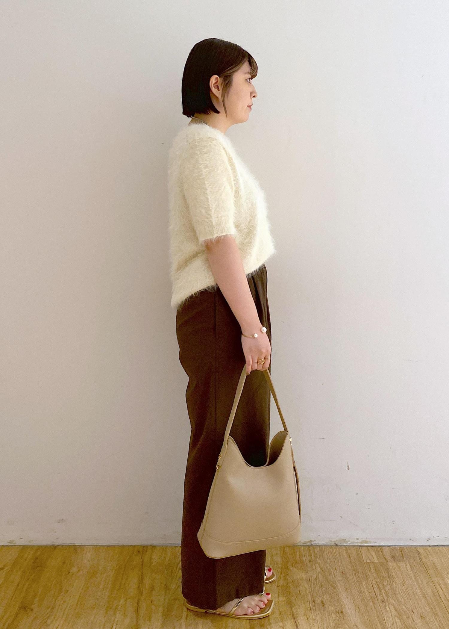 小物はベージュ系でまとめて柔らかい雰囲気に◎