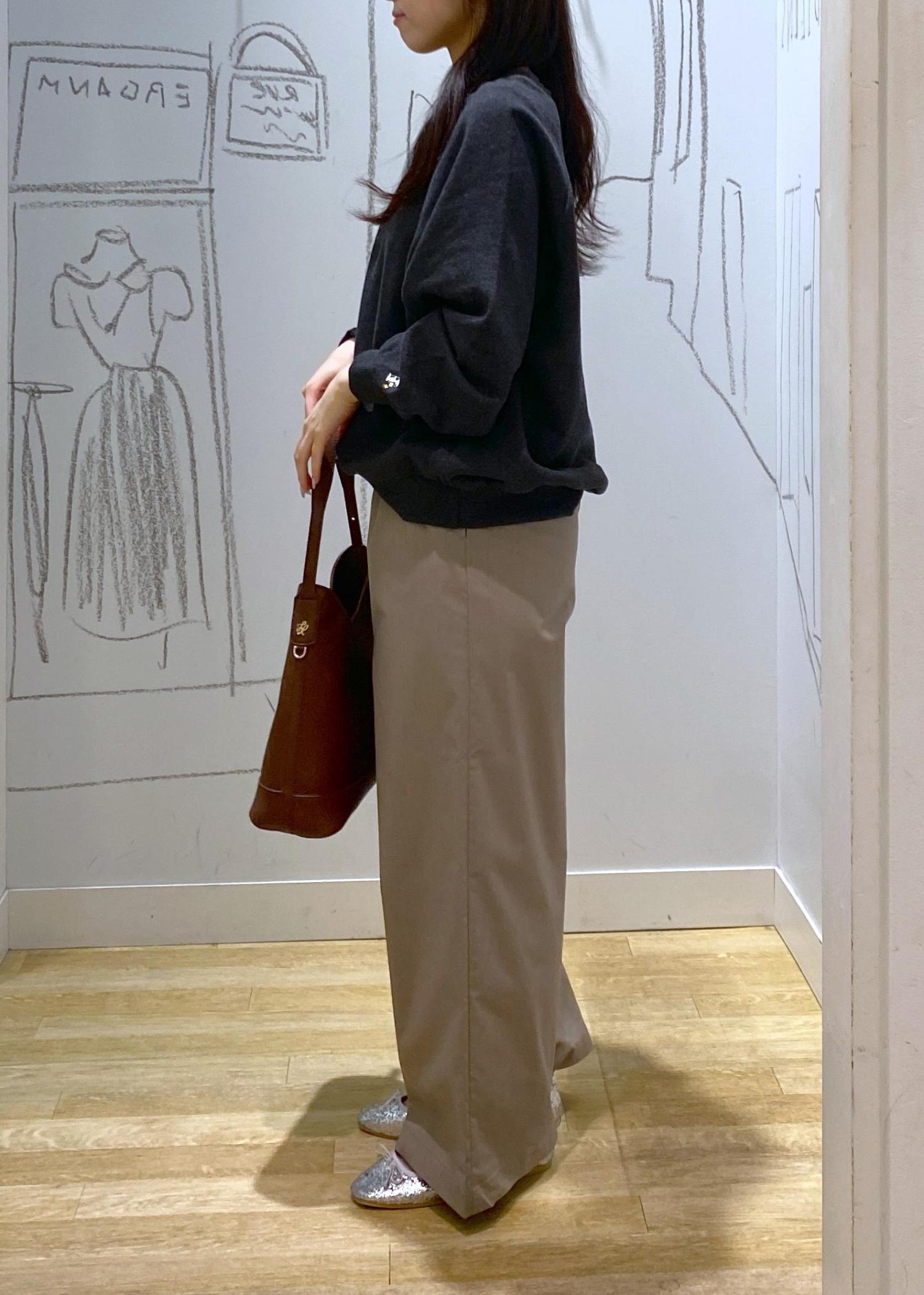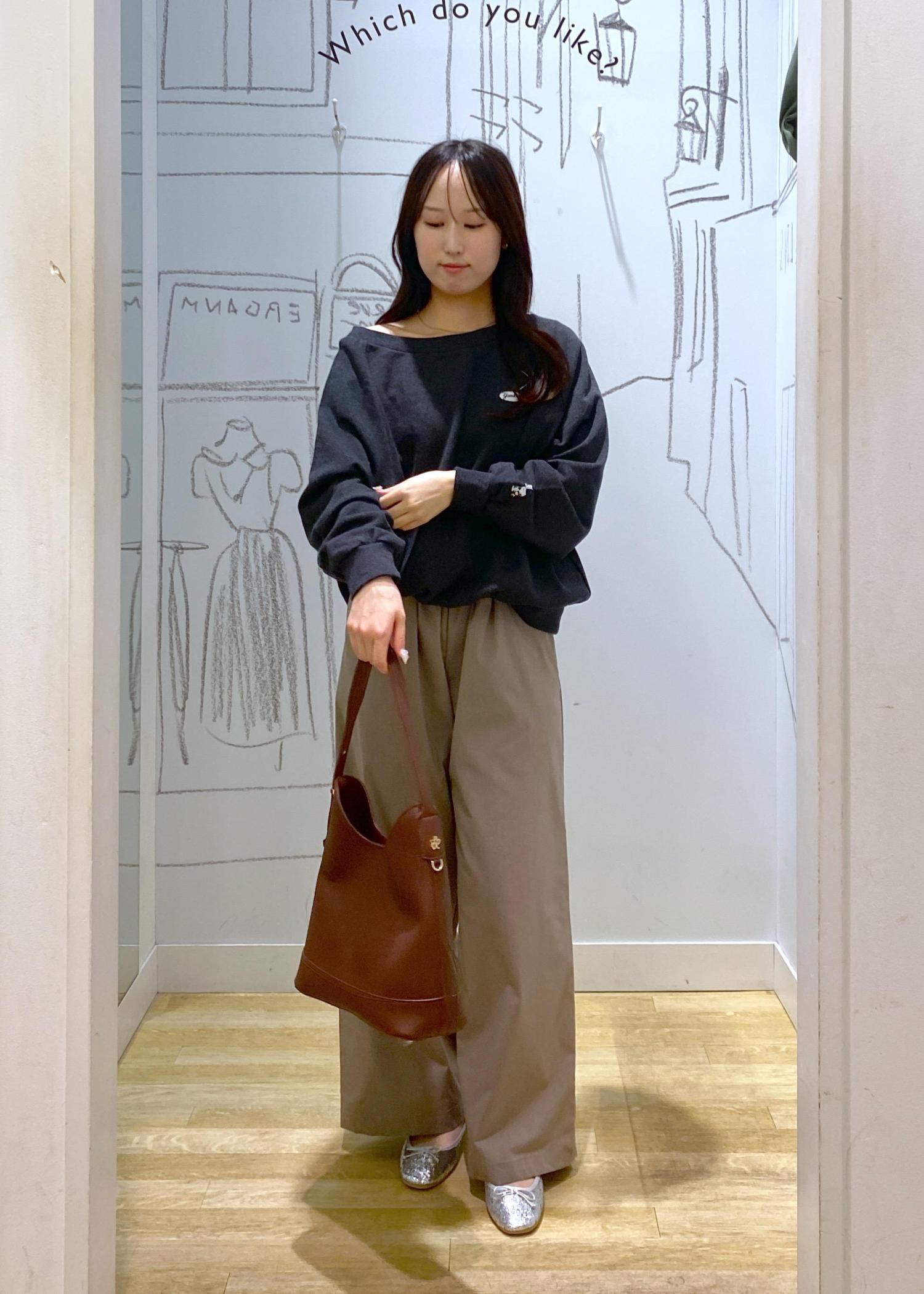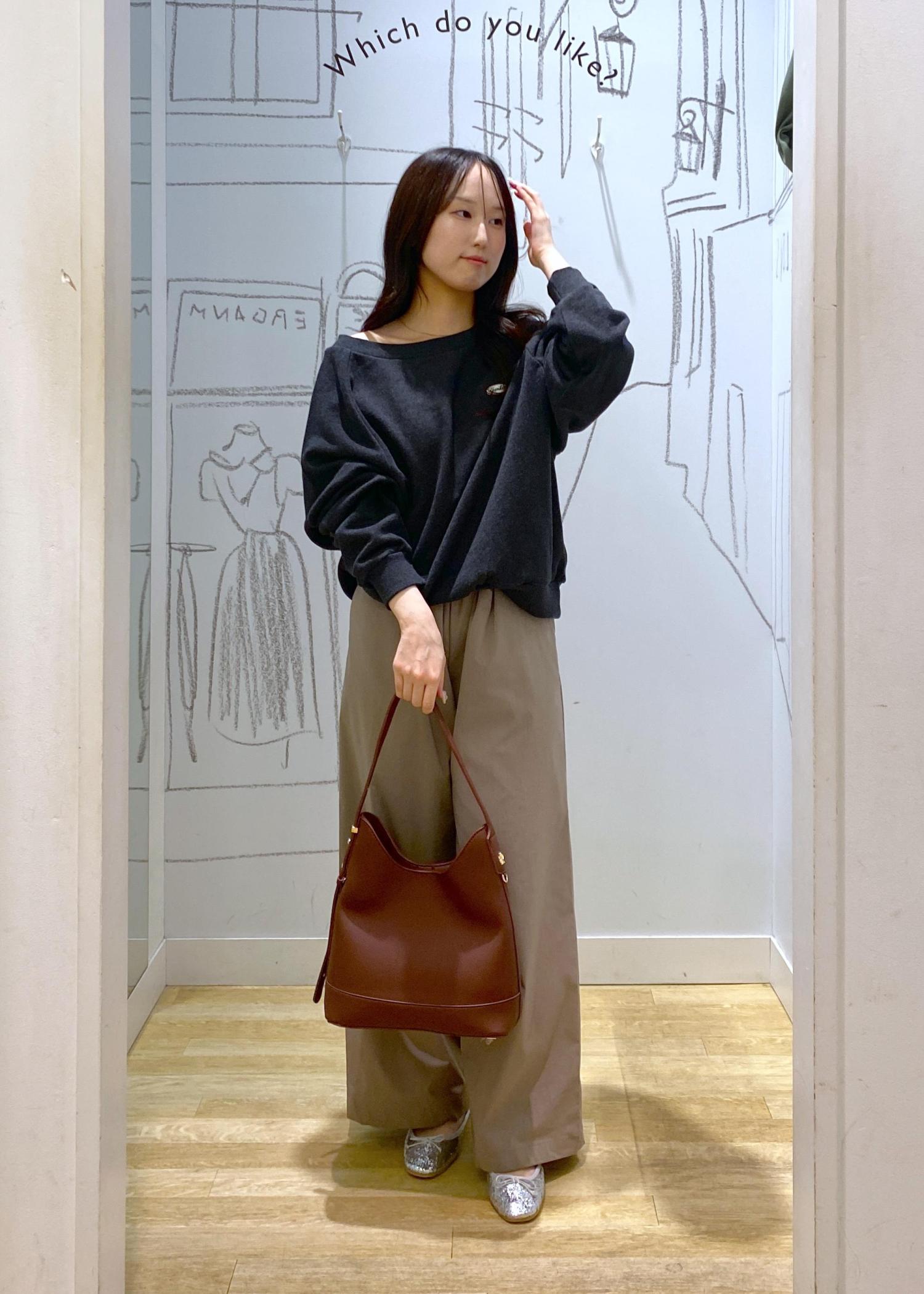 スウェットを着るとカジュアル感が強めになりがちですが、ワンショルにすることで大人っぽさとカジュアルさが出て挑戦しやすくなります◎