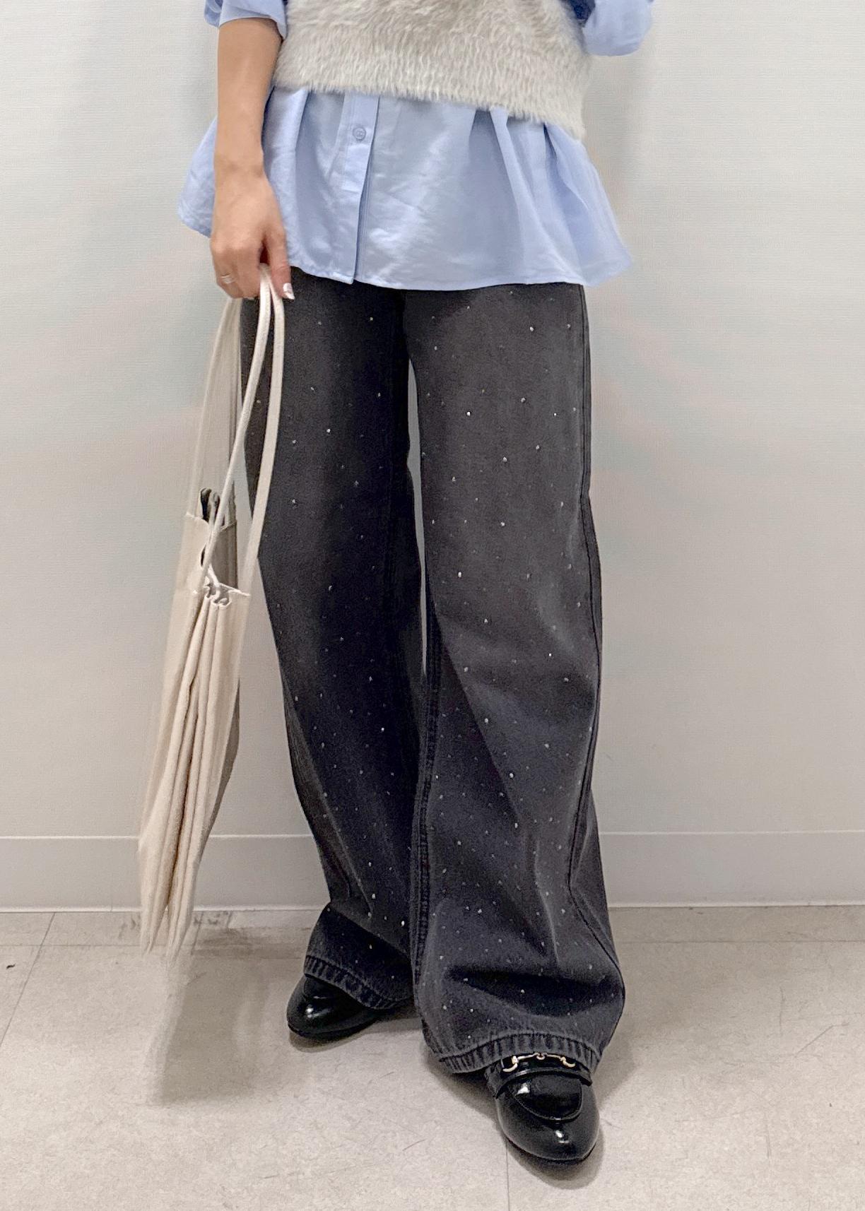 ハイウエストすぎず、ローウエストすぎないのでどんなトップスとも合わせやすいです。