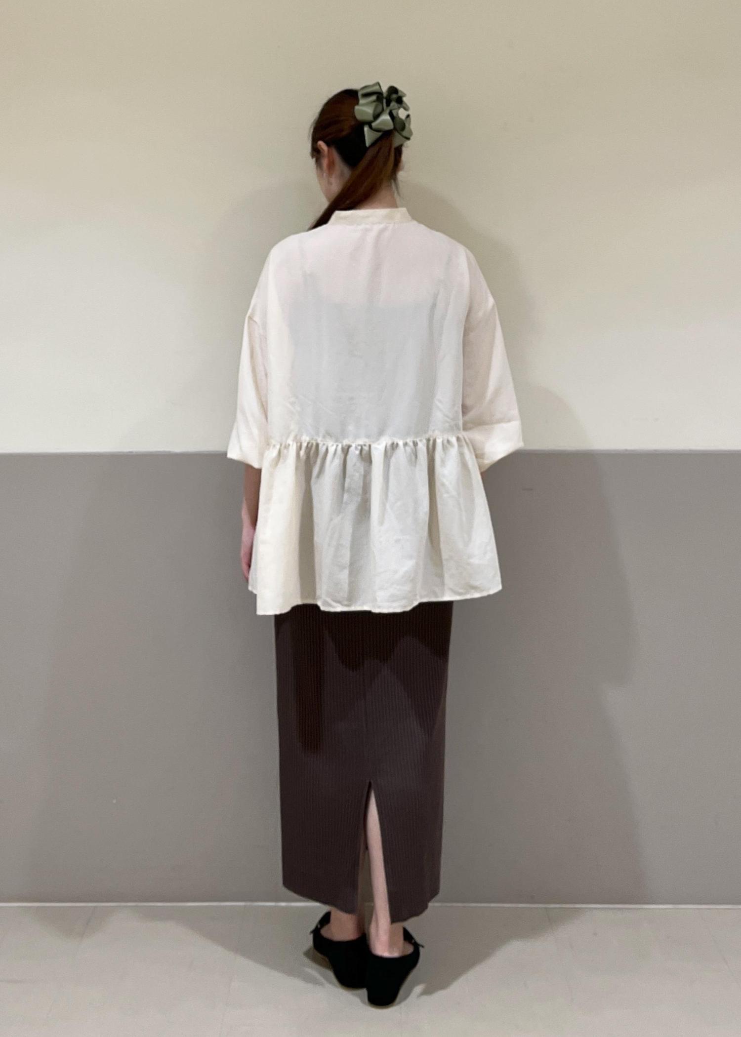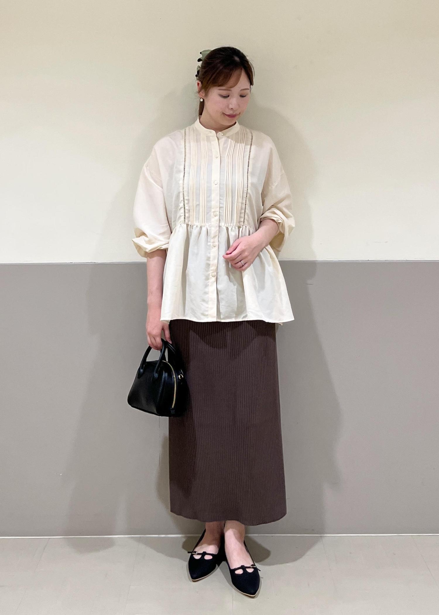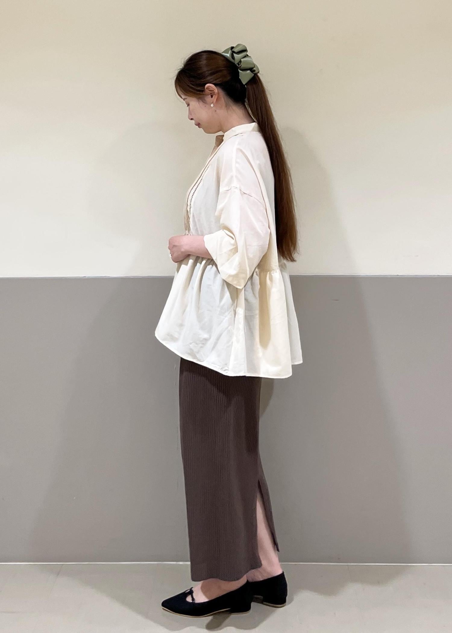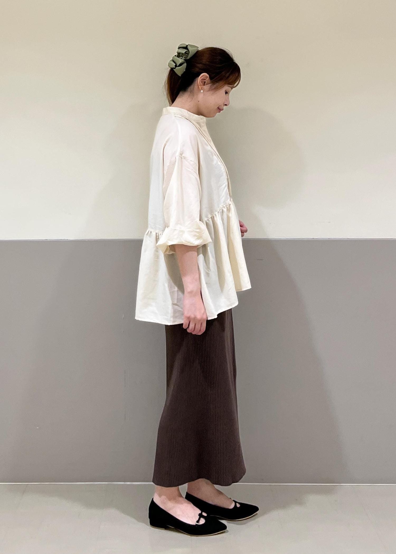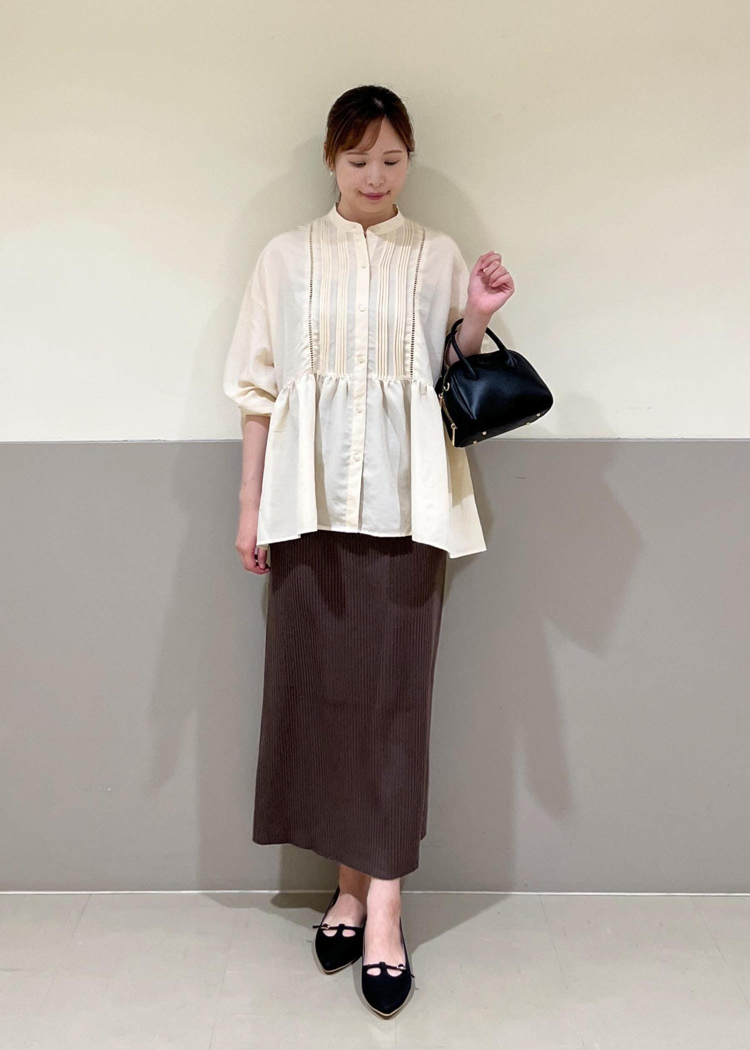 リラックス感のあるペプラムシャツと細見えするトタンテレコスカートを使ってコーディネートしてみました!