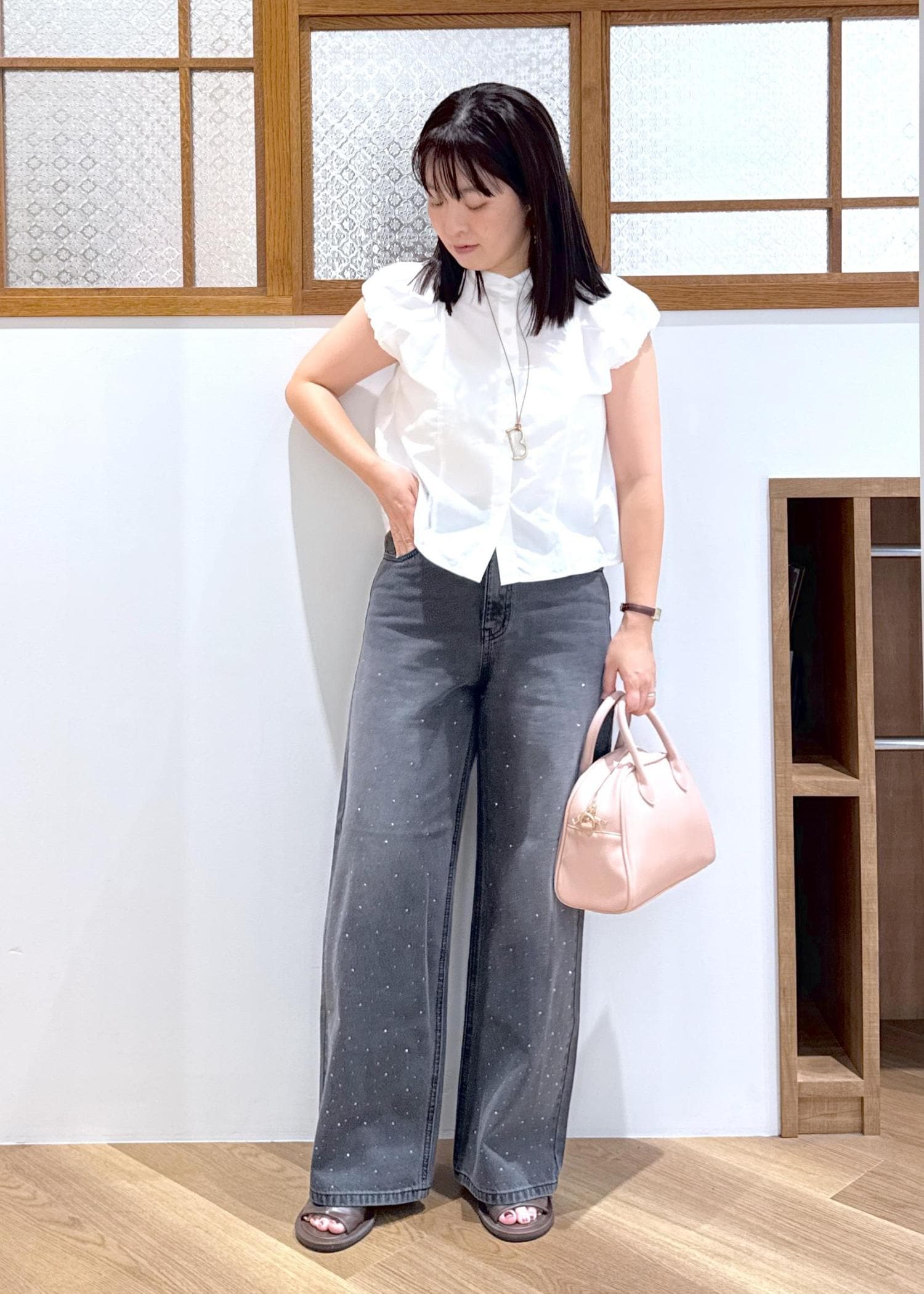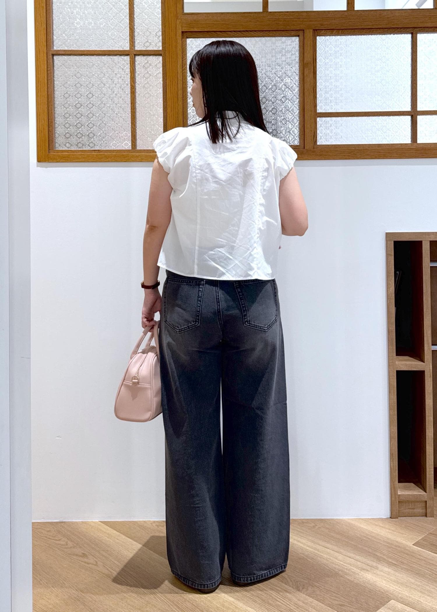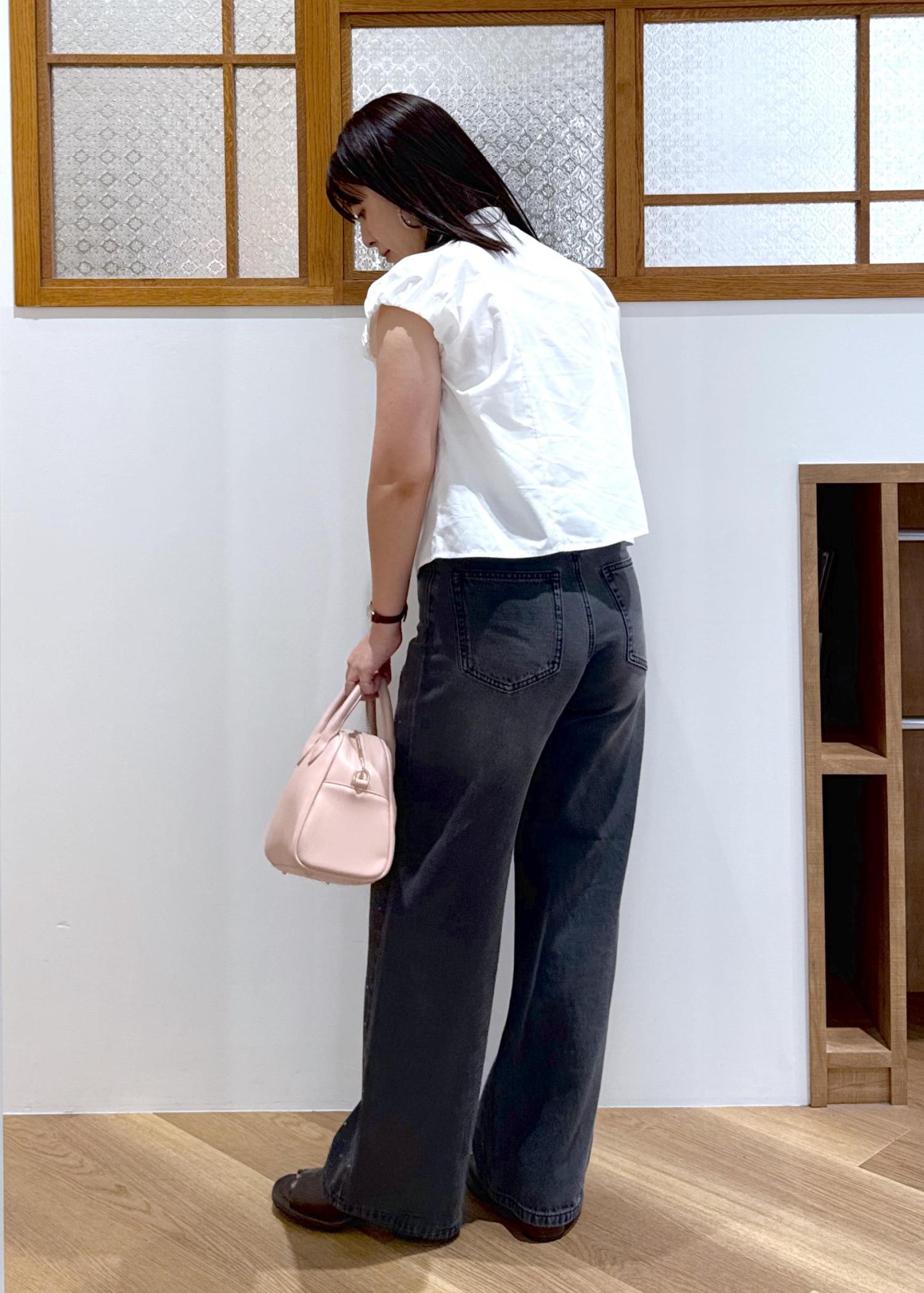 グレーに近いブラックデニムでハードすぎず、カジュアル感控えめや、キレイめに合わせたい方にもおすすめです。