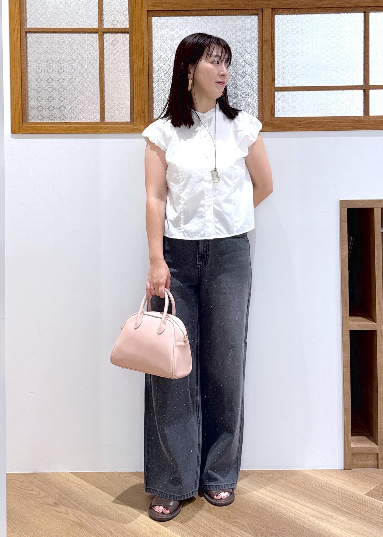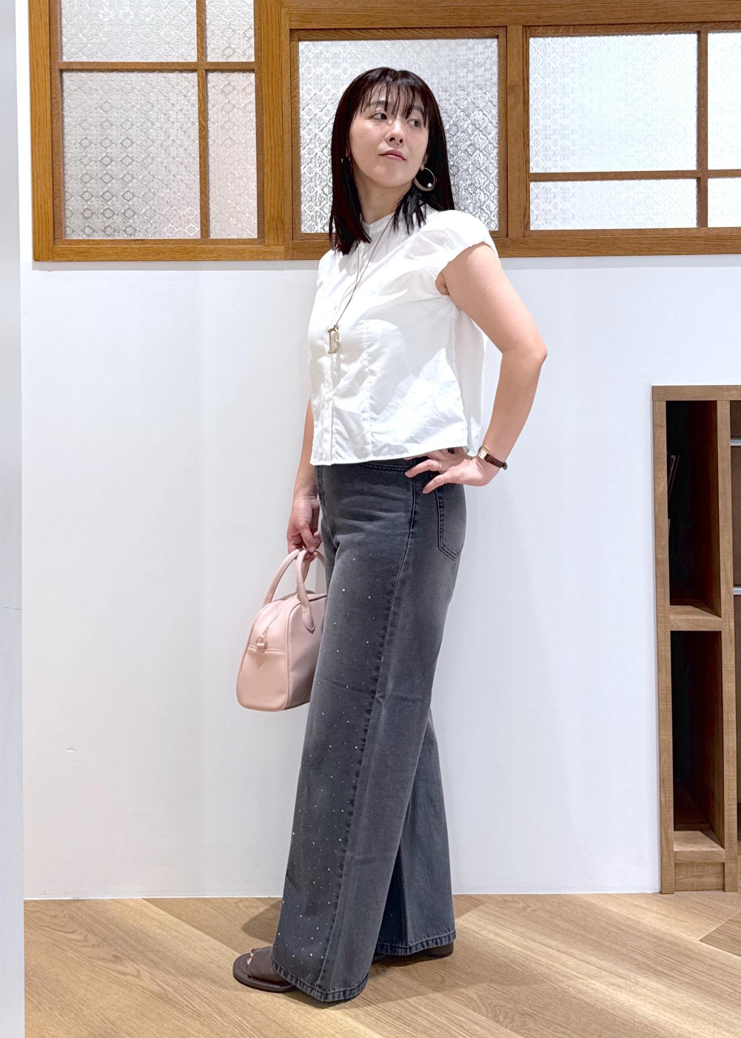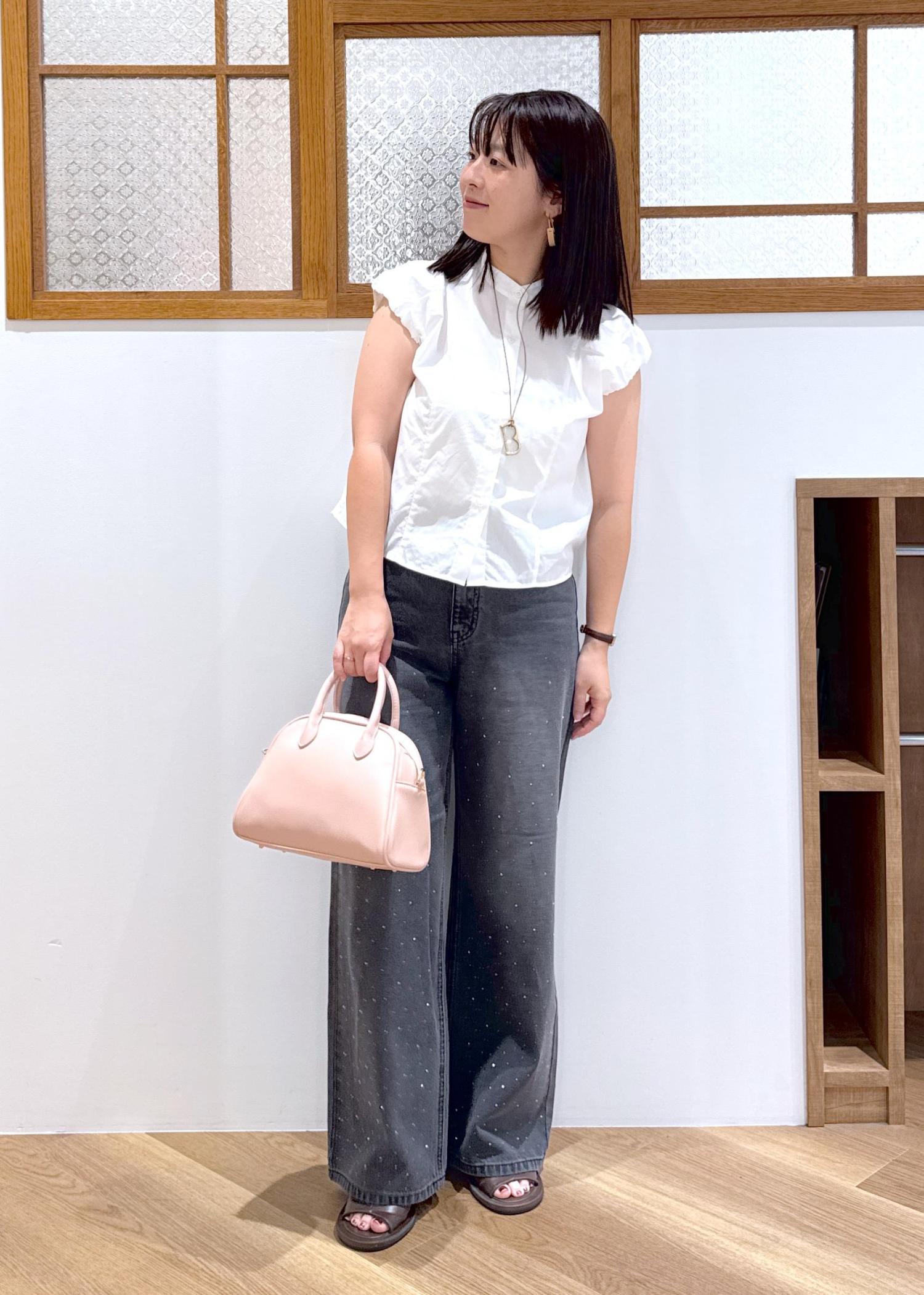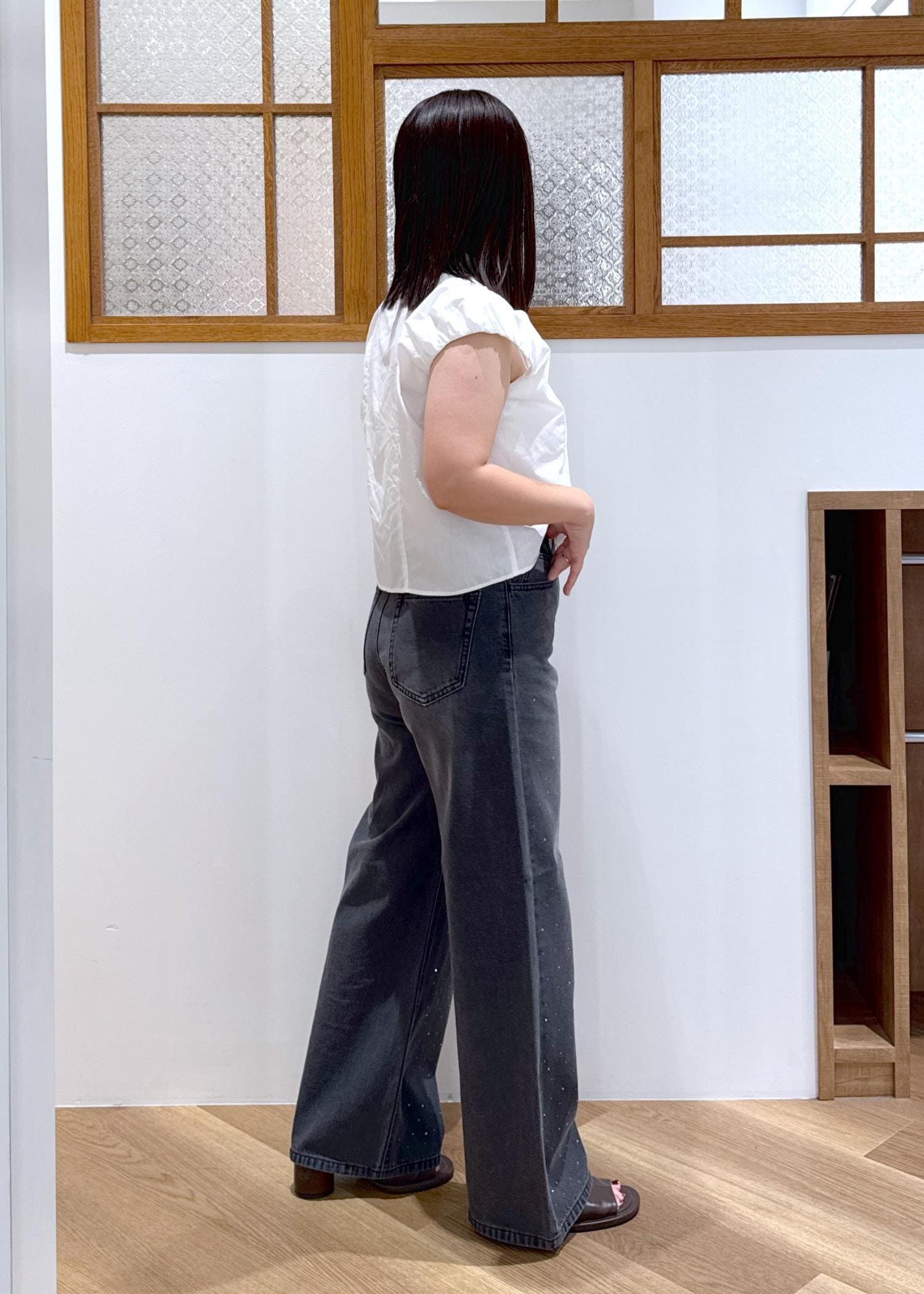 グレーに近いブラックデニムでハードすぎず、カジュアル感控えめや、キレイめに合わせたい方にもおすすめです。