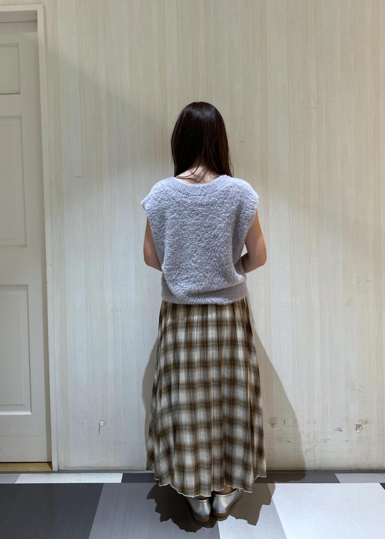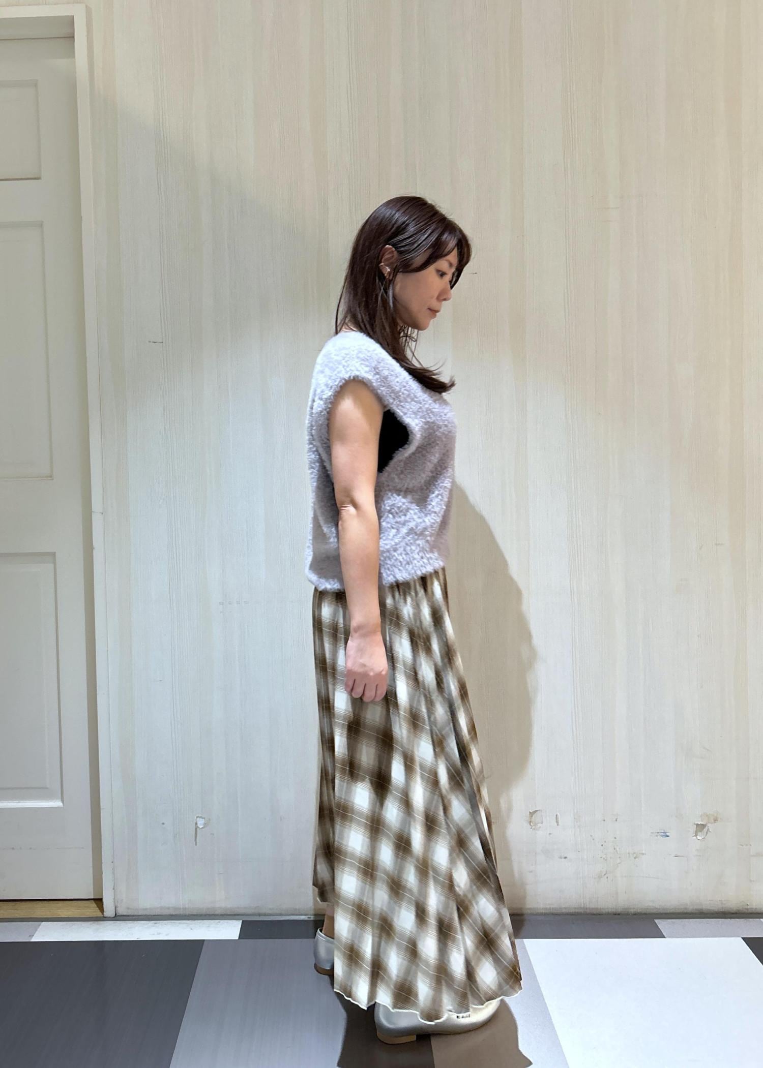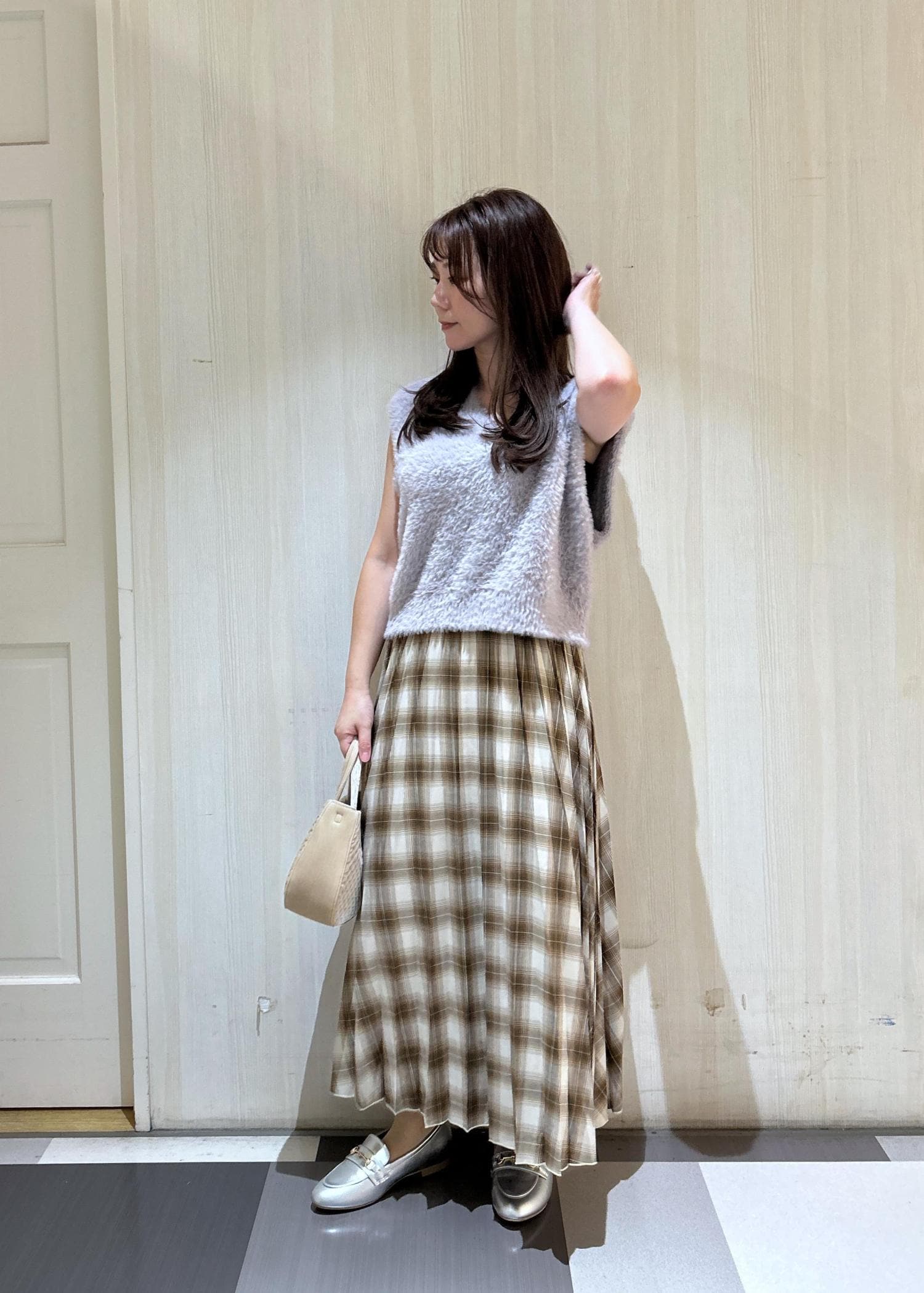 フェザーベスト✖️チェック柄スカートで初秋コーデ。