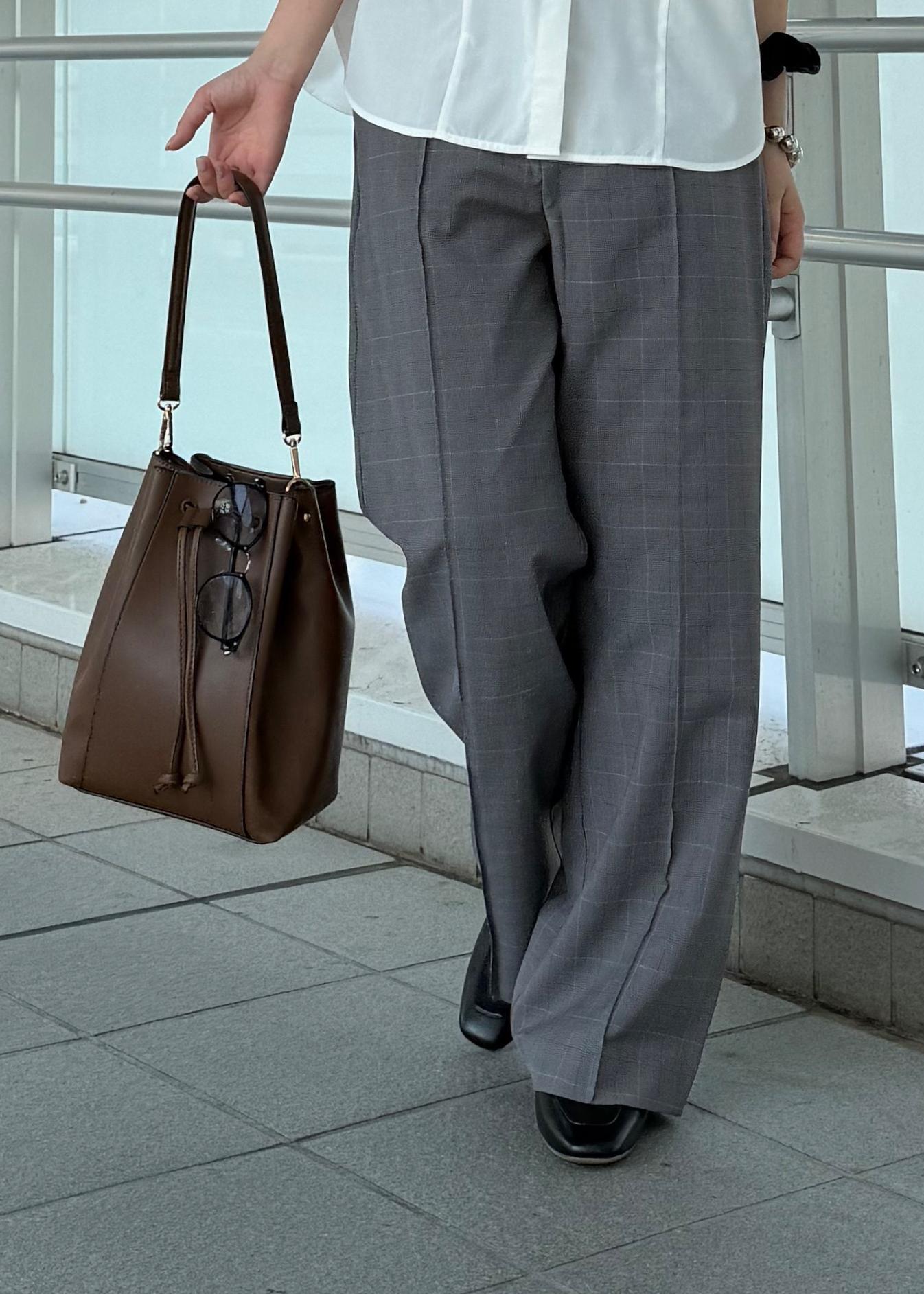 ワイドなシルエットですが、裾が広がりすぎないので綺麗めなコーディネートにも合わせやすいです。