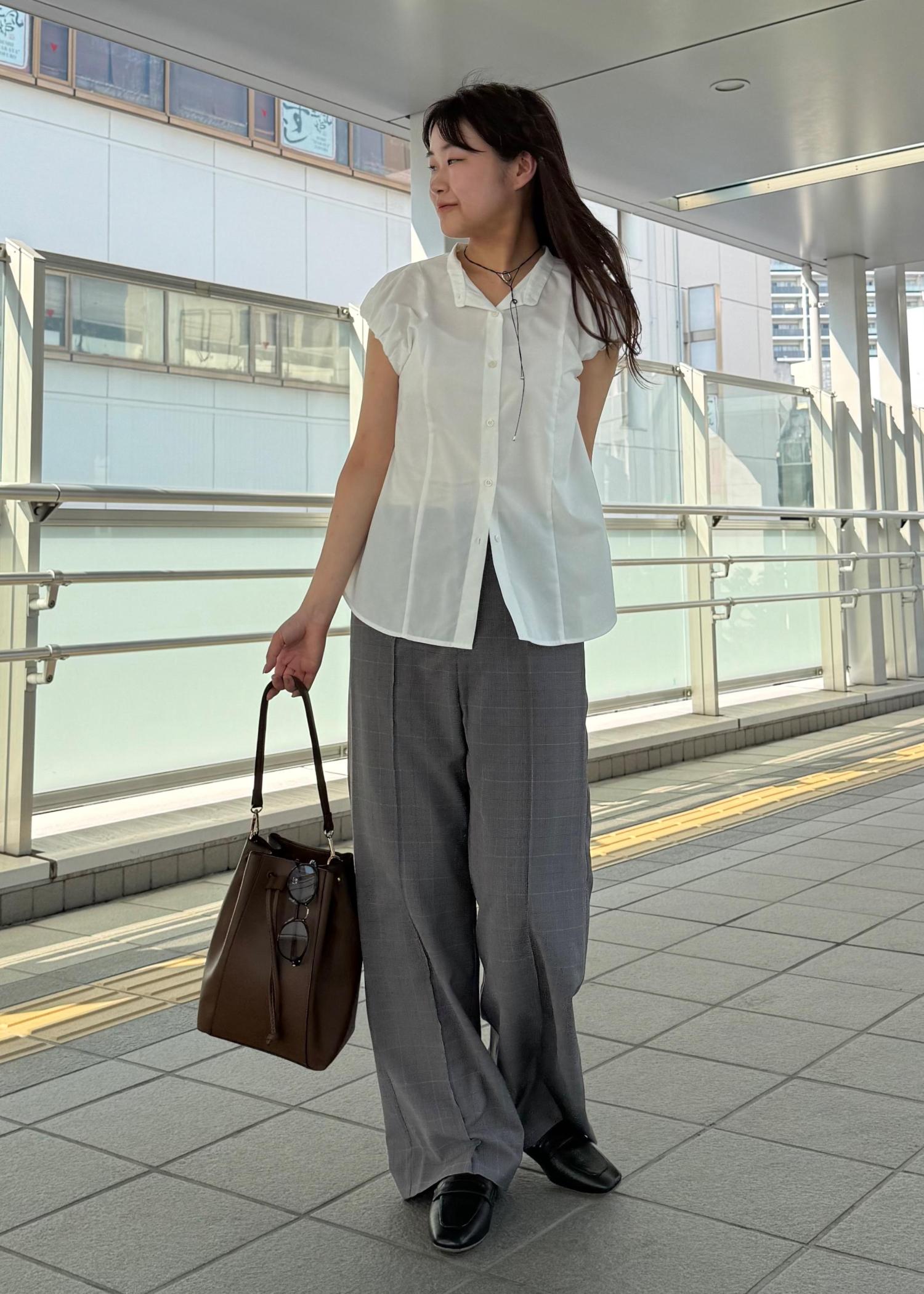 カジュアルにもきれいめにも合わせやすいブラウスです。