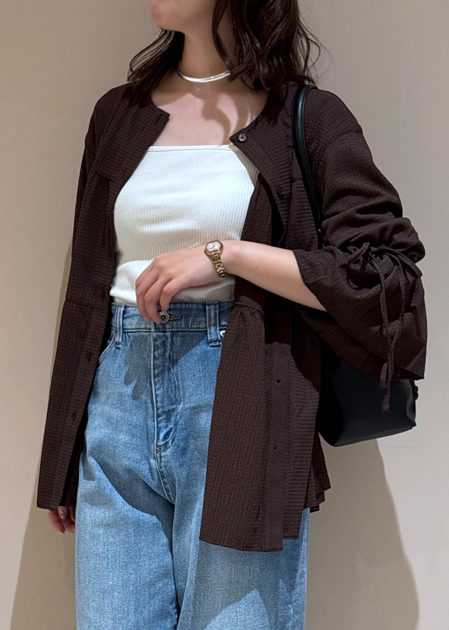 インナーを着てサラッと羽織りスタイルにカジュアルにデニムを合わせてみました。