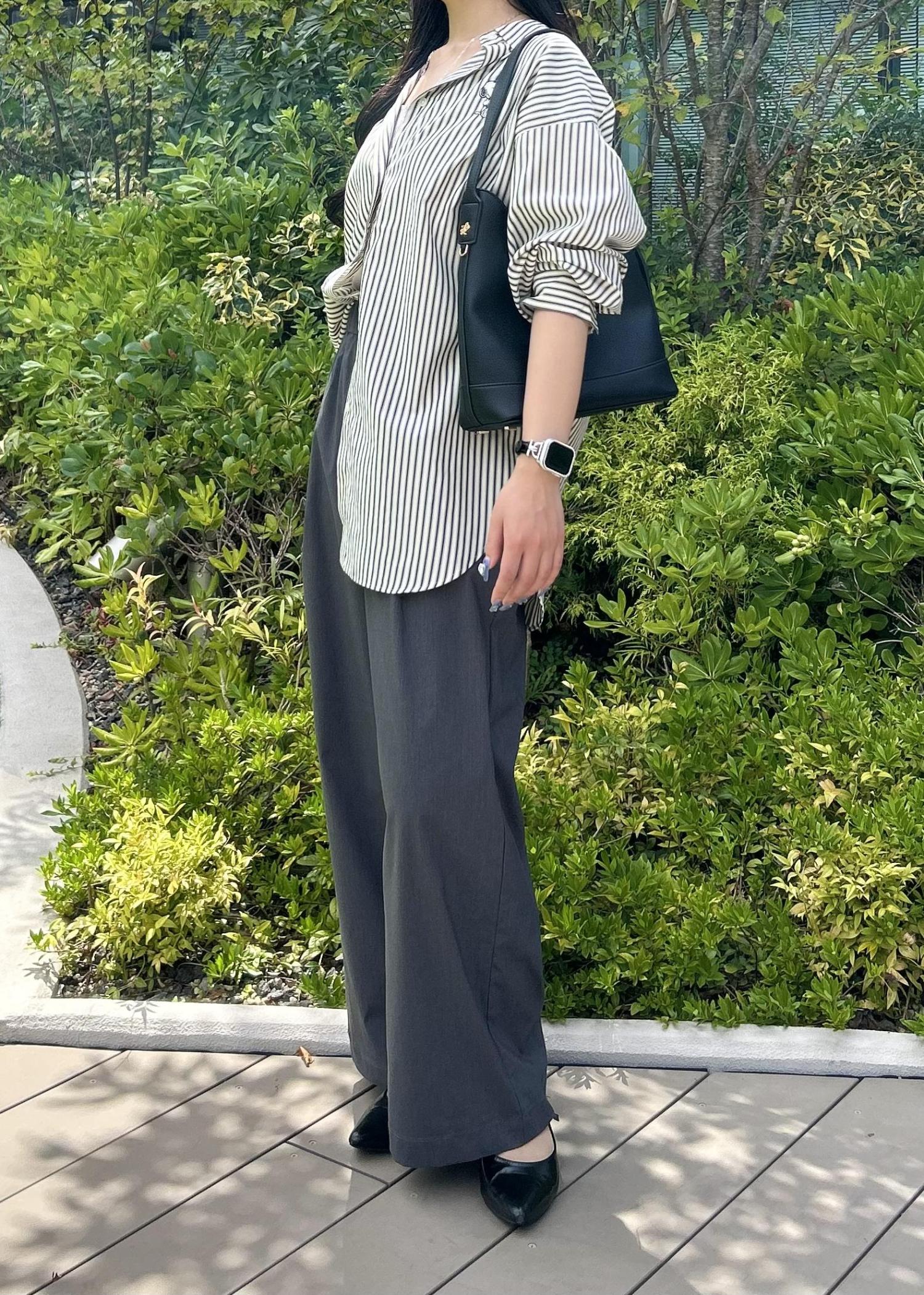 ワイドなので、ヒップや脚のラインを拾いにくく、安心してお召しいただけます。 -