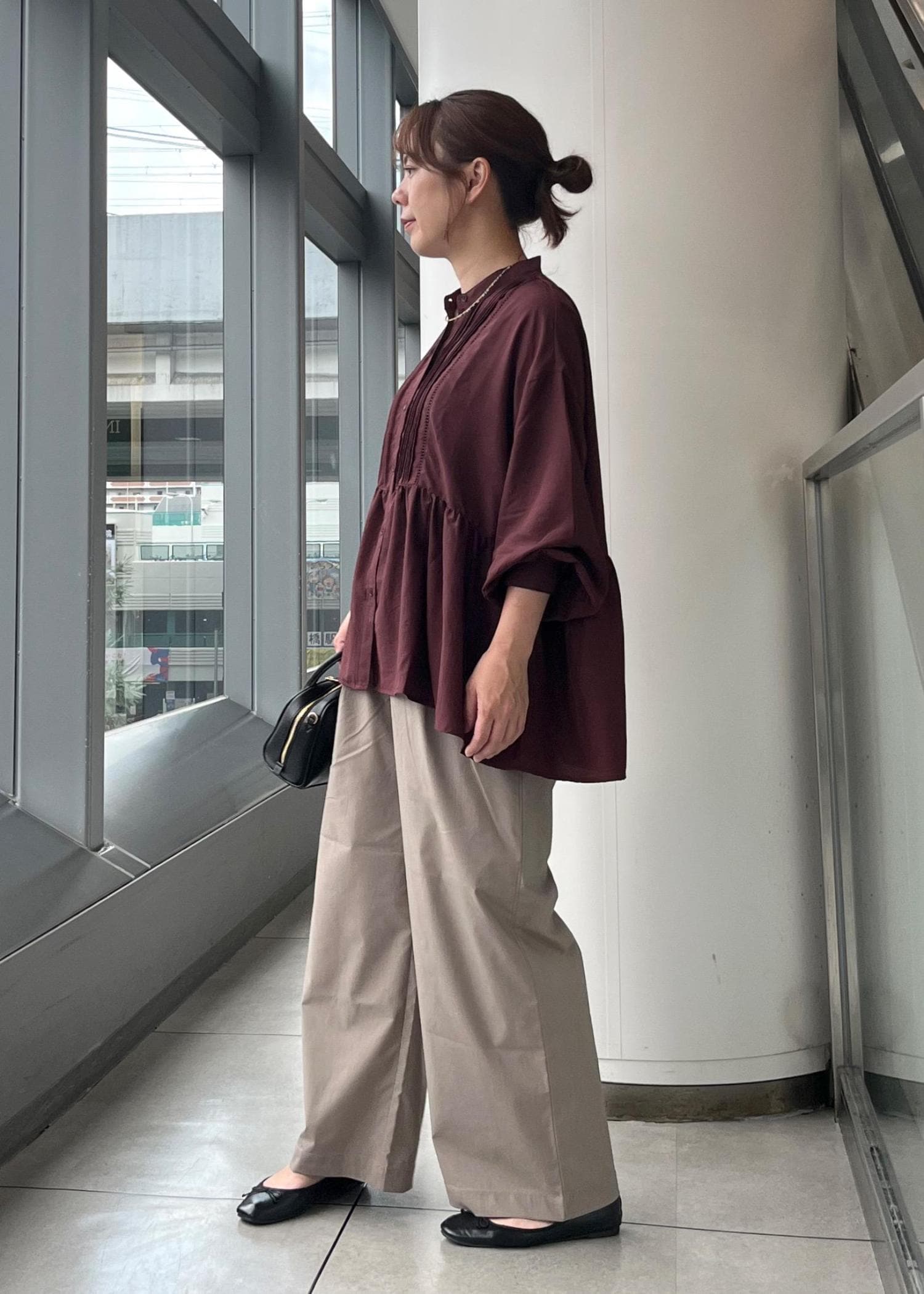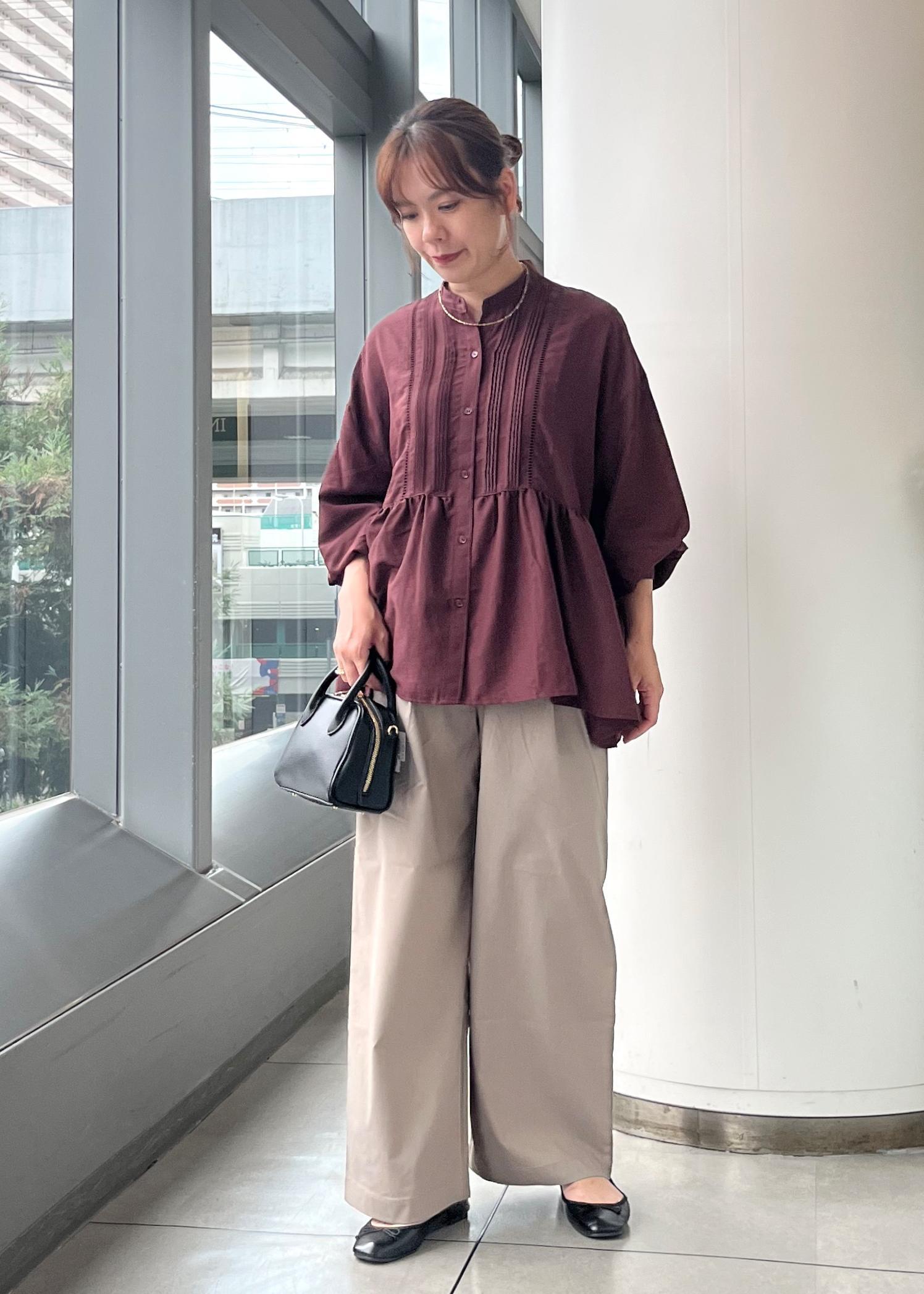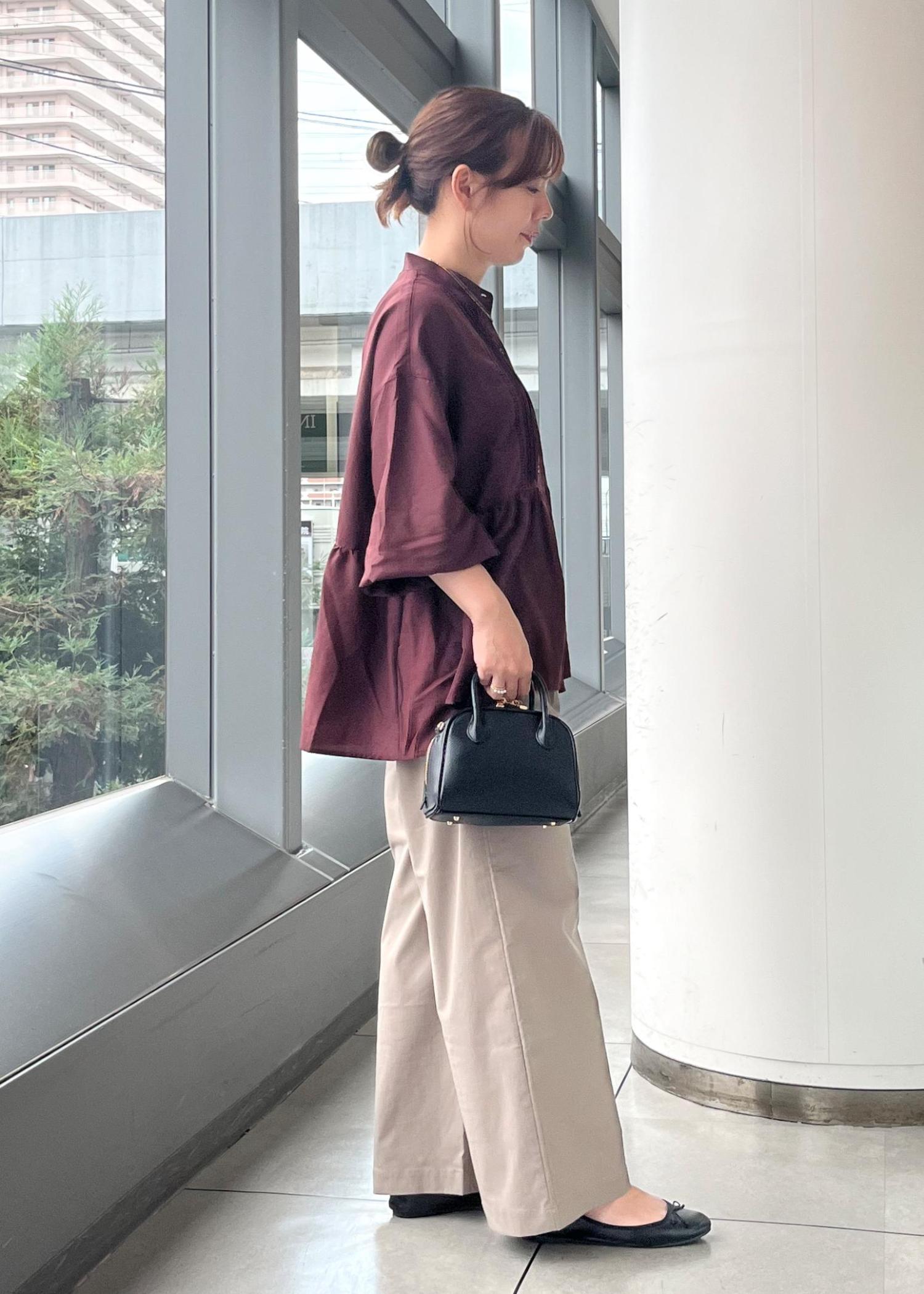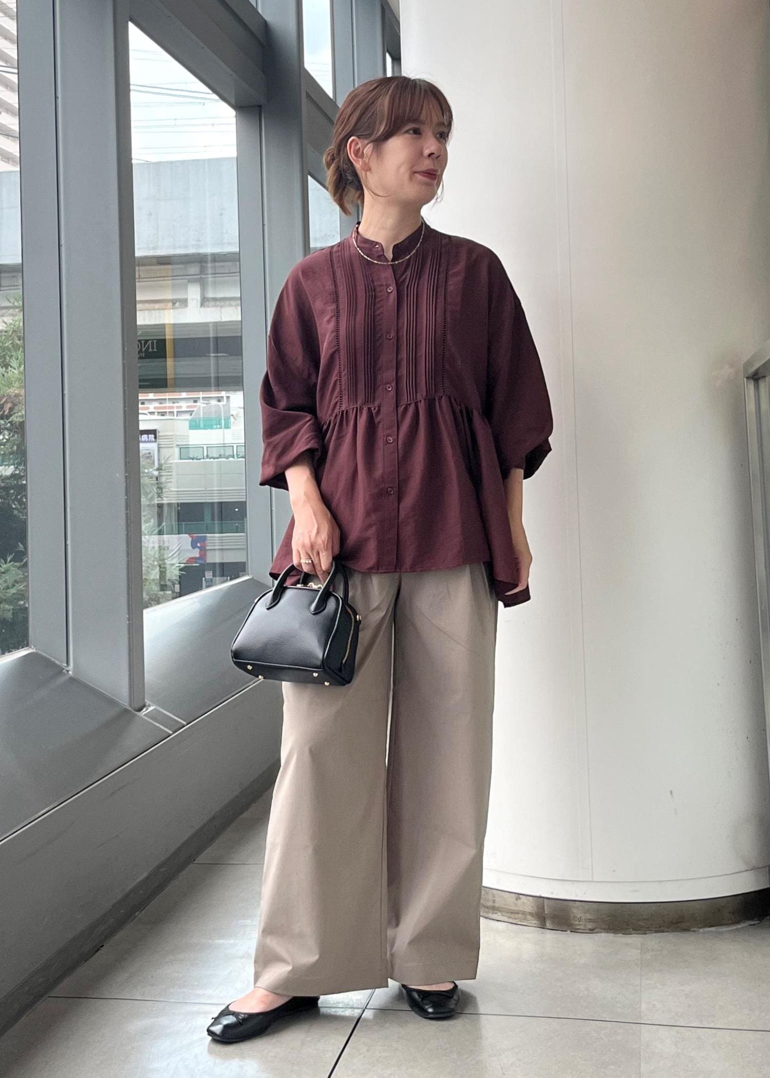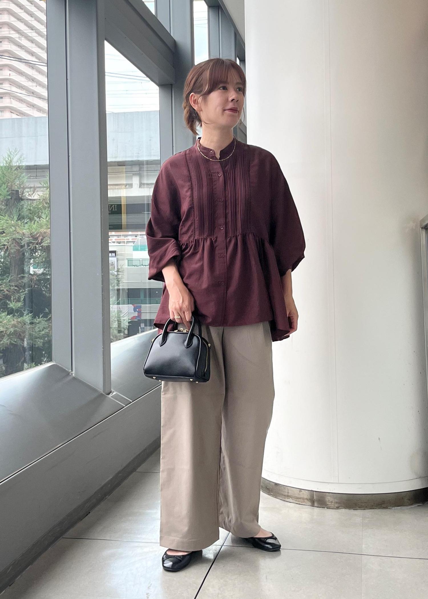 ブラウスもパンツもサラサラした涼しい素材なのでまだ暑いけど秋服が着たい!という方にピッタリです♪