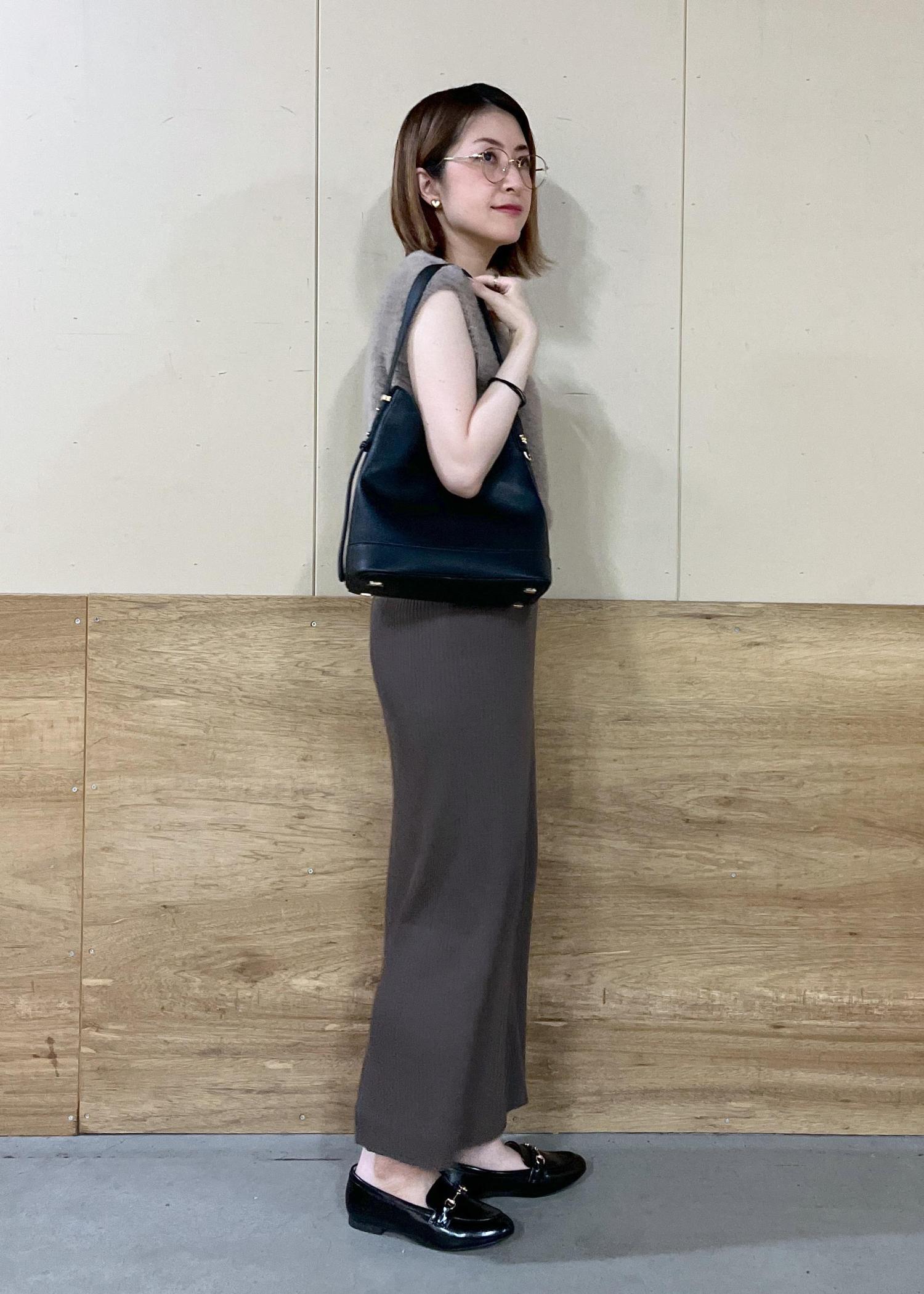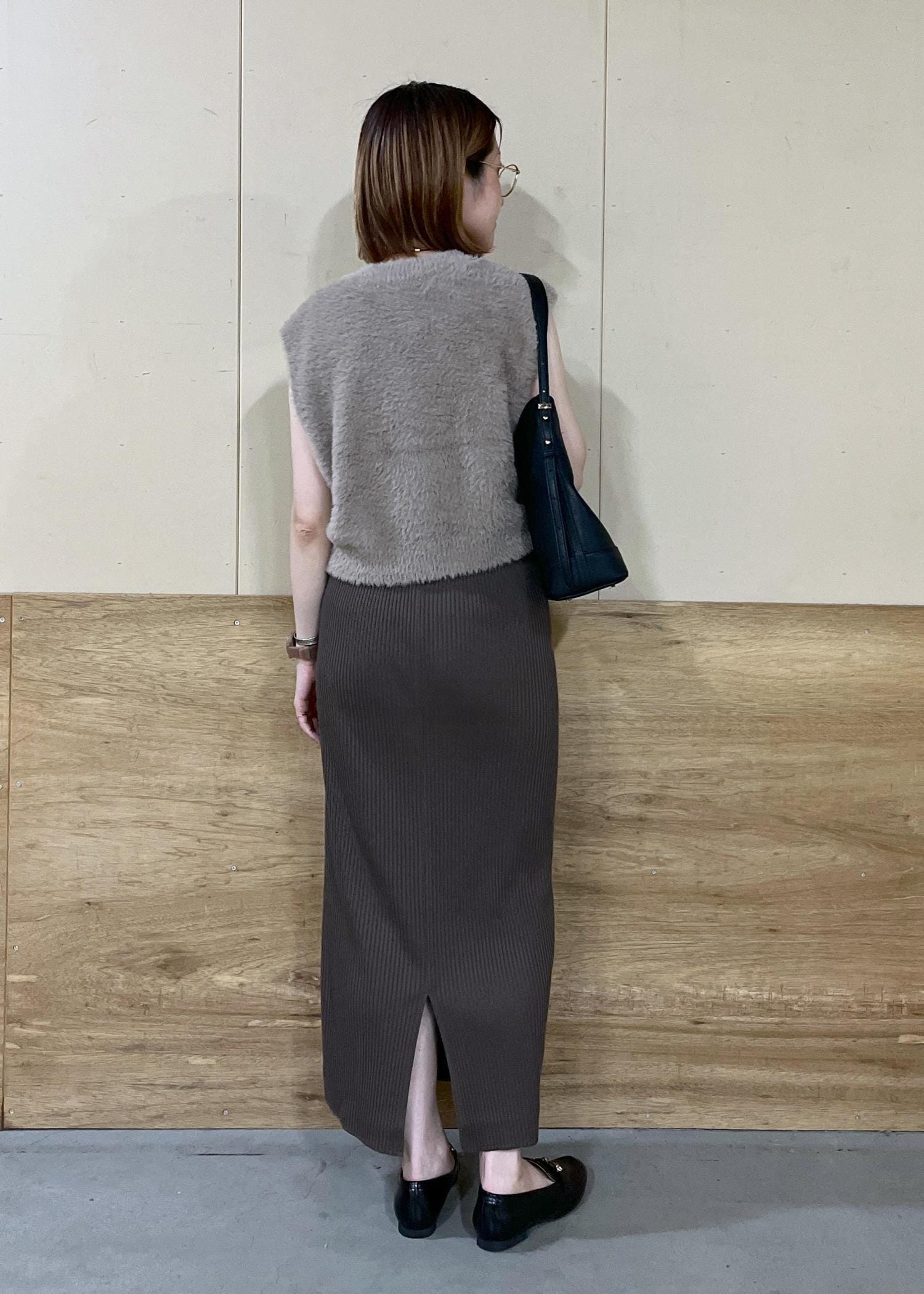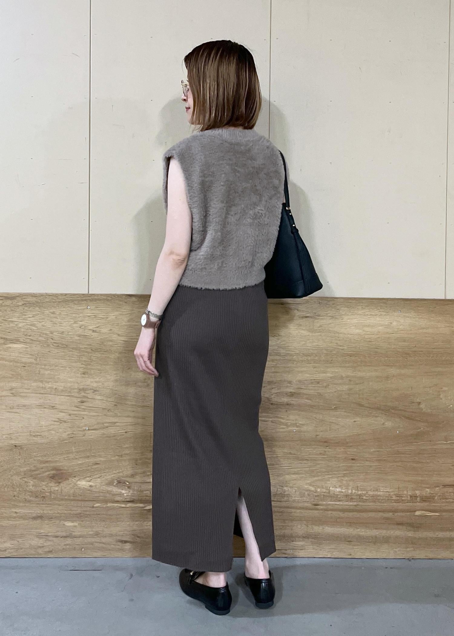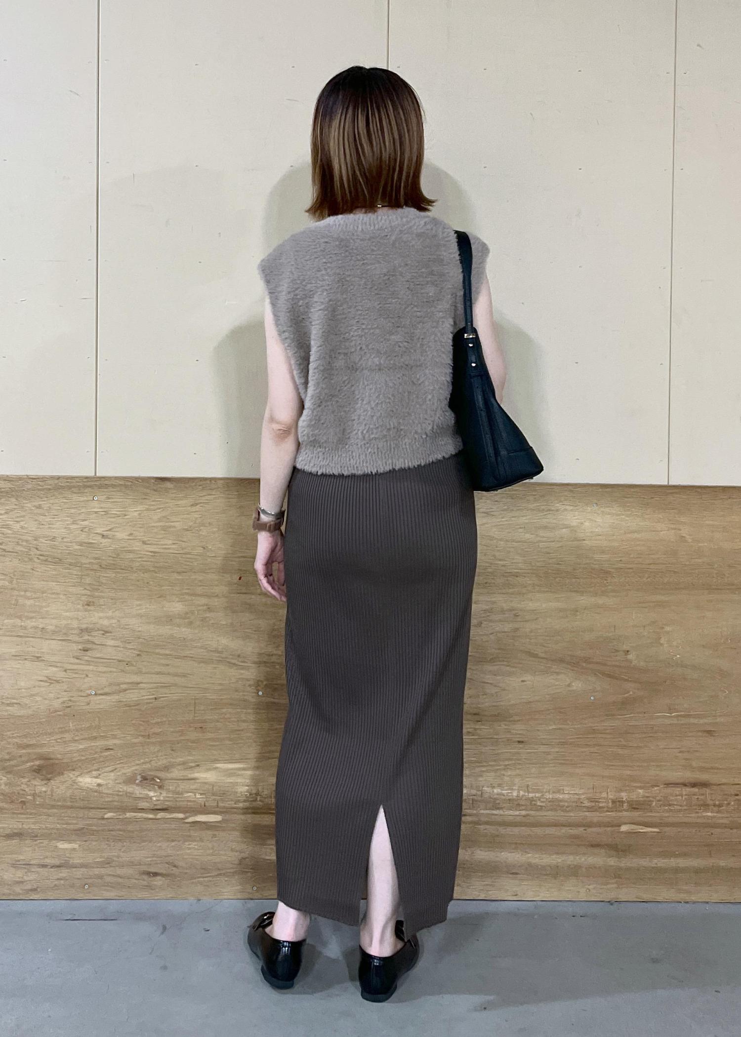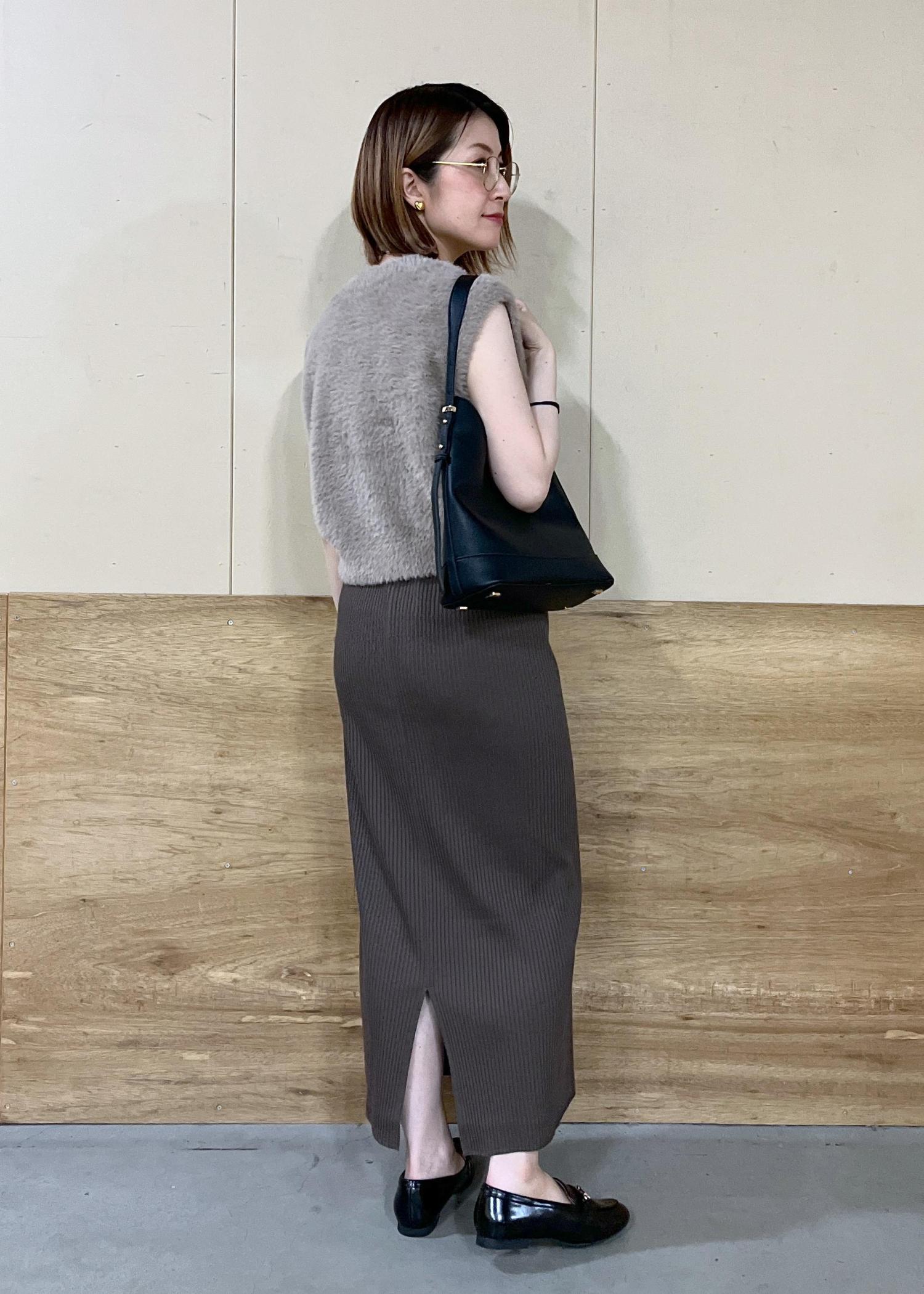 Iラインスカートと合わせて、すっきりとしたスタイルアップ効果のあるシルエットに。