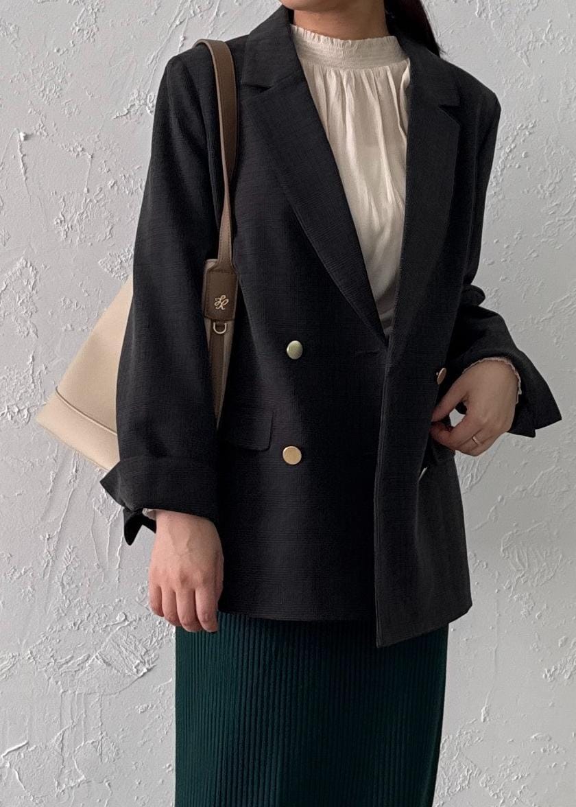 【WEB限定・ミドル丈】レディハンサムシリーズ ウールライク金ボタンジャケット(半裏地)/通勤対応