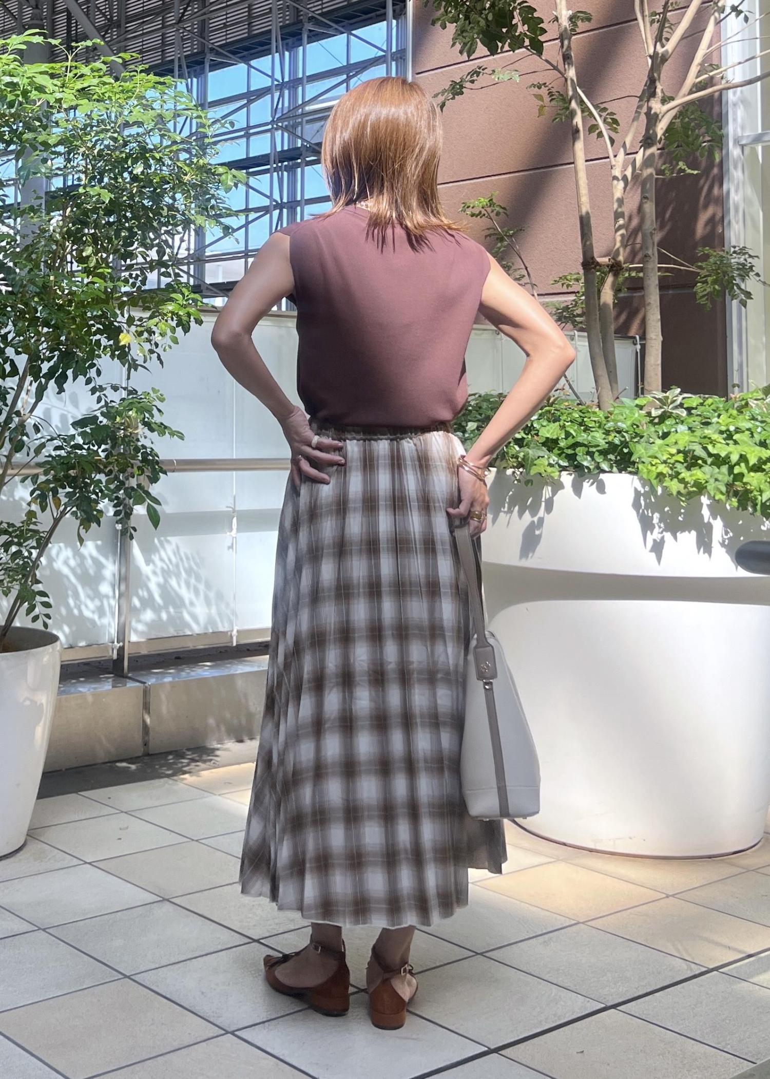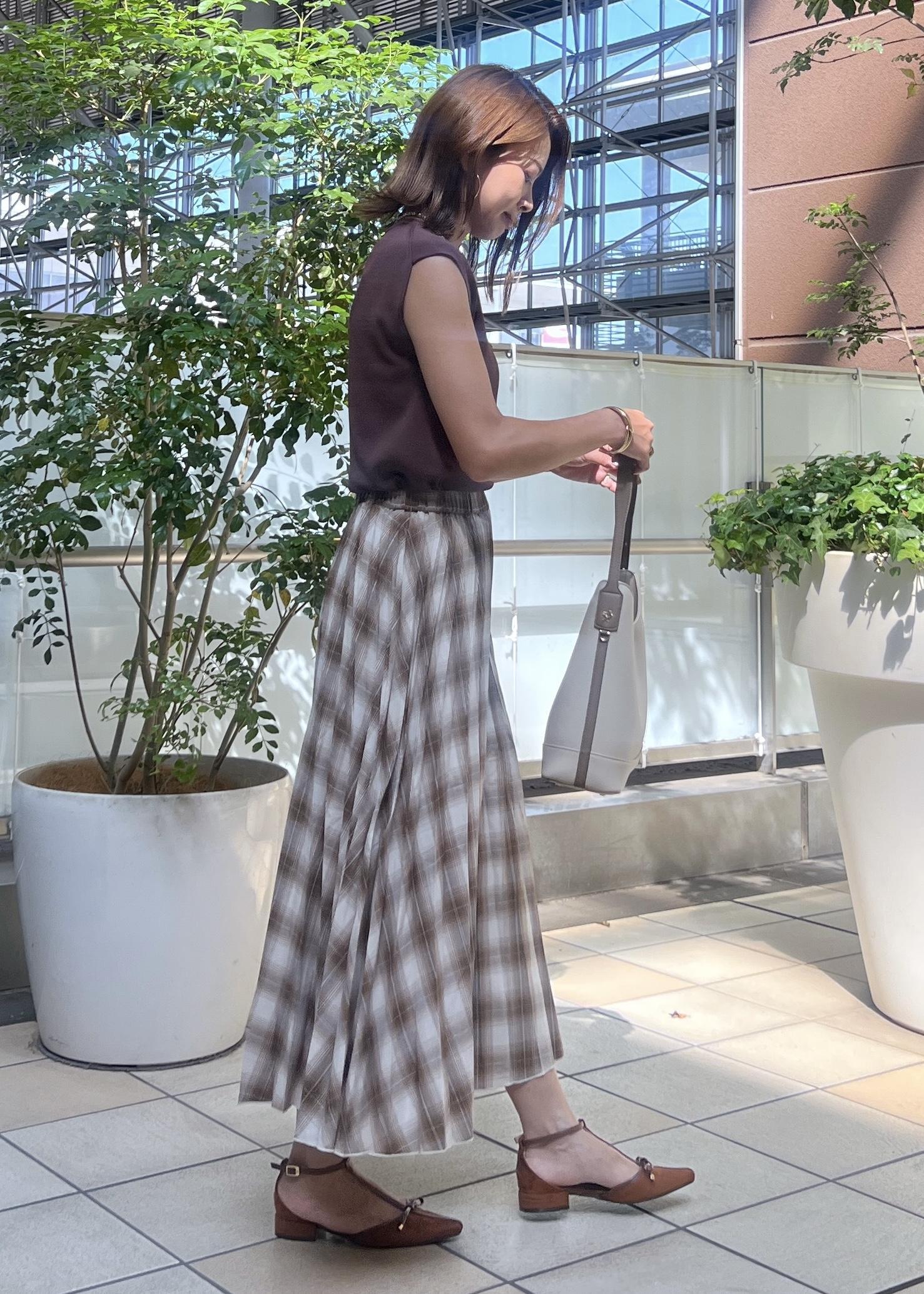 サラッと着やすいノースリーブニットは、接触冷感で残暑の残る秋時期にも着回しできておすすめです。