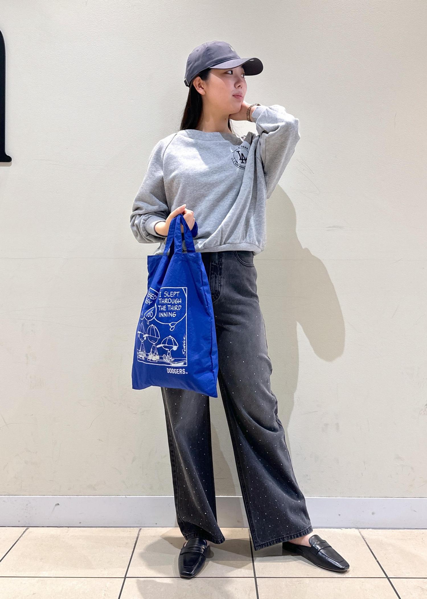【PEANUTS × MLB COLLECTION BY ROPÉ PICNIC】オフショルスウェットを使ったスタイリングです。
