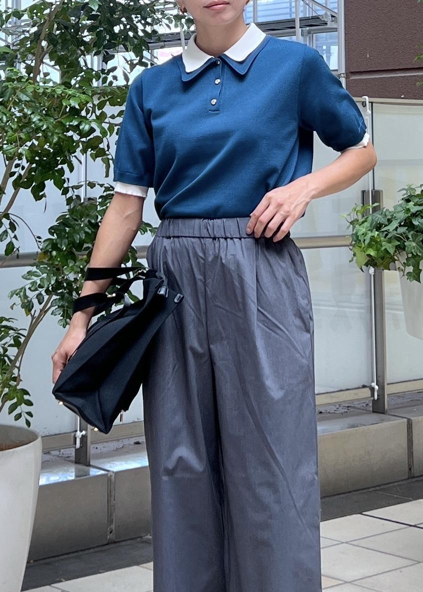 レイヤード風デザインのポロニットは、1枚着るだけサマ見えしてくれるおすすめトップス。