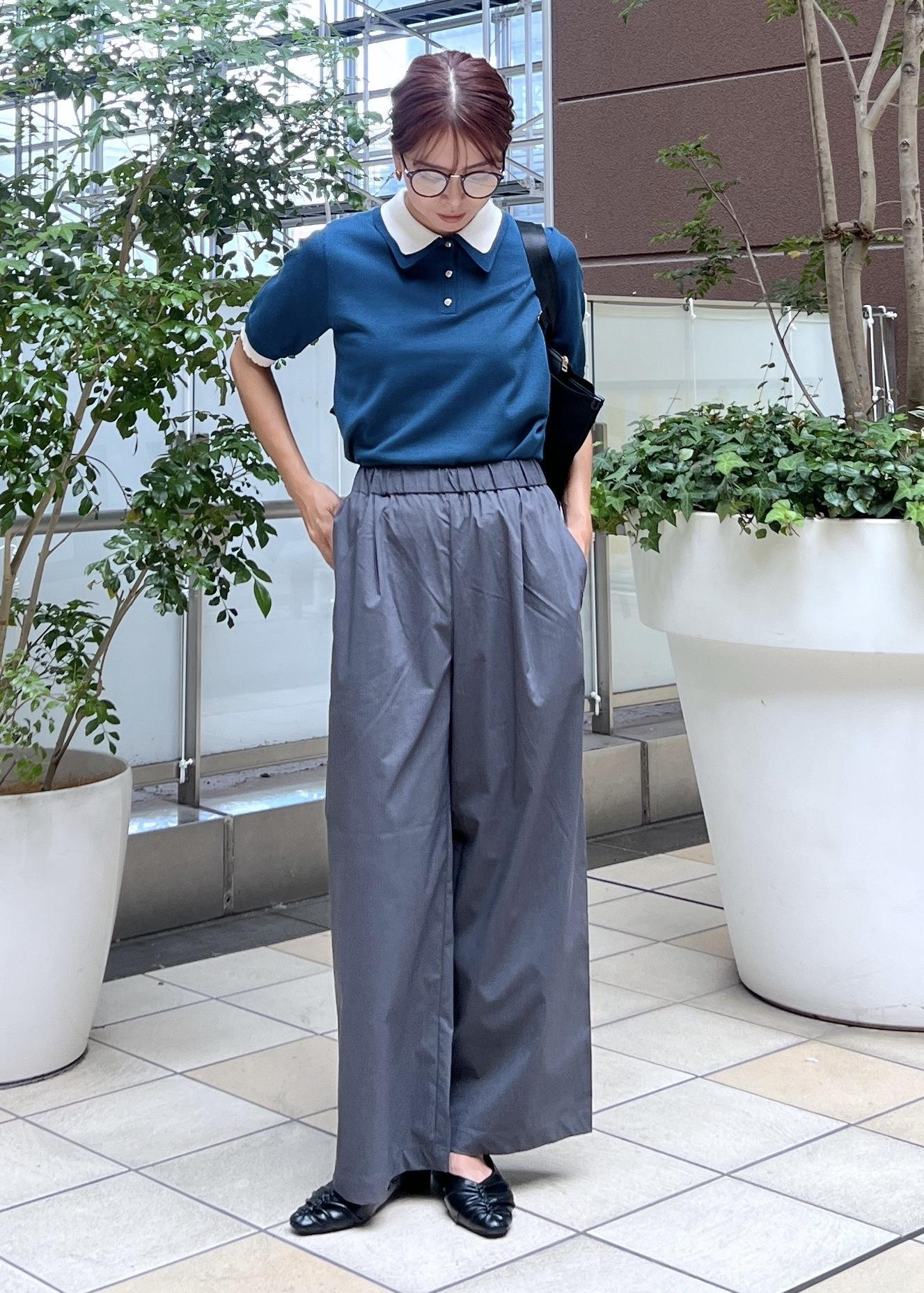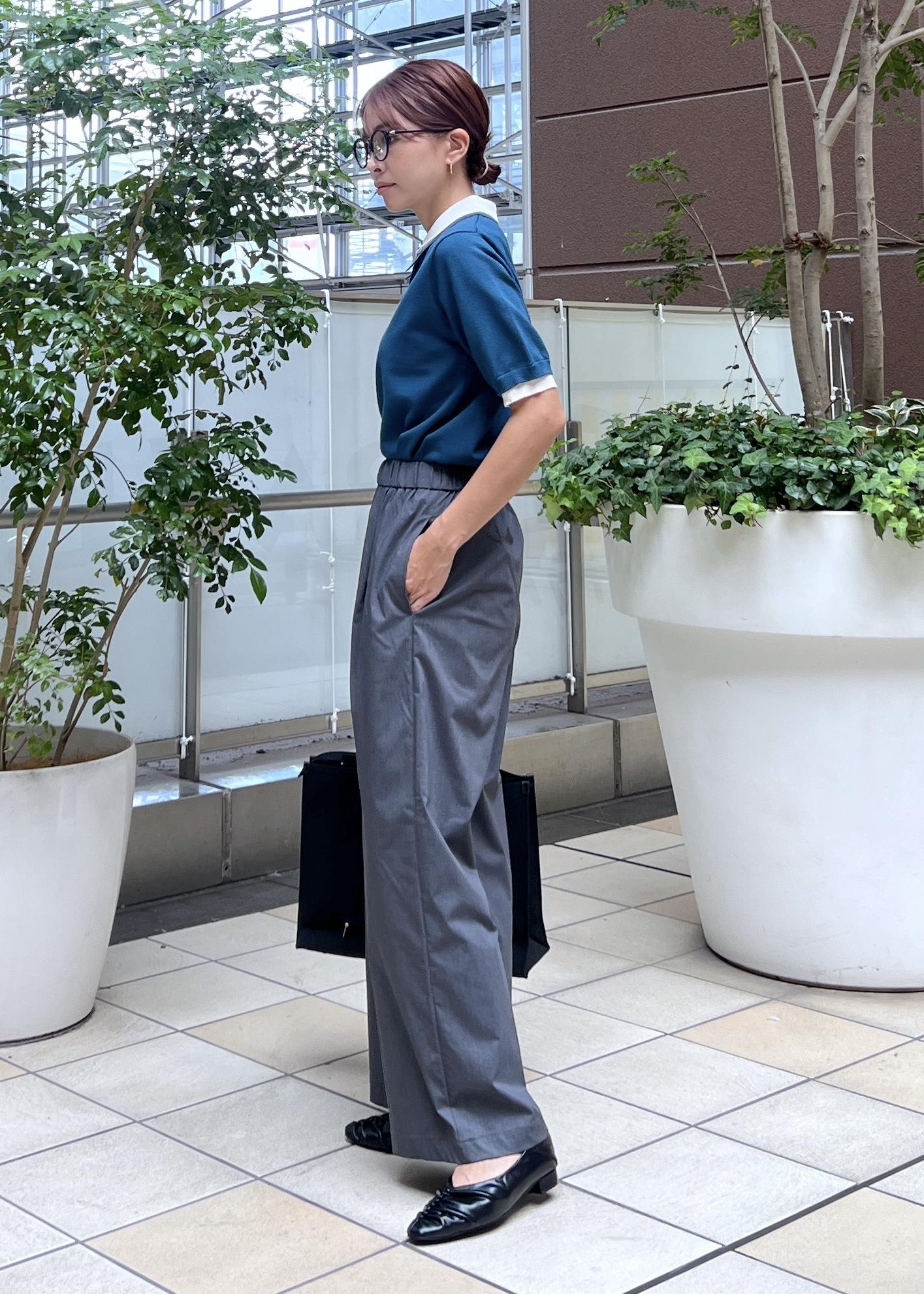 サラッと履きやすいワイドパンツで、シンプルなきれいめカジュアルスタイルにしました。
