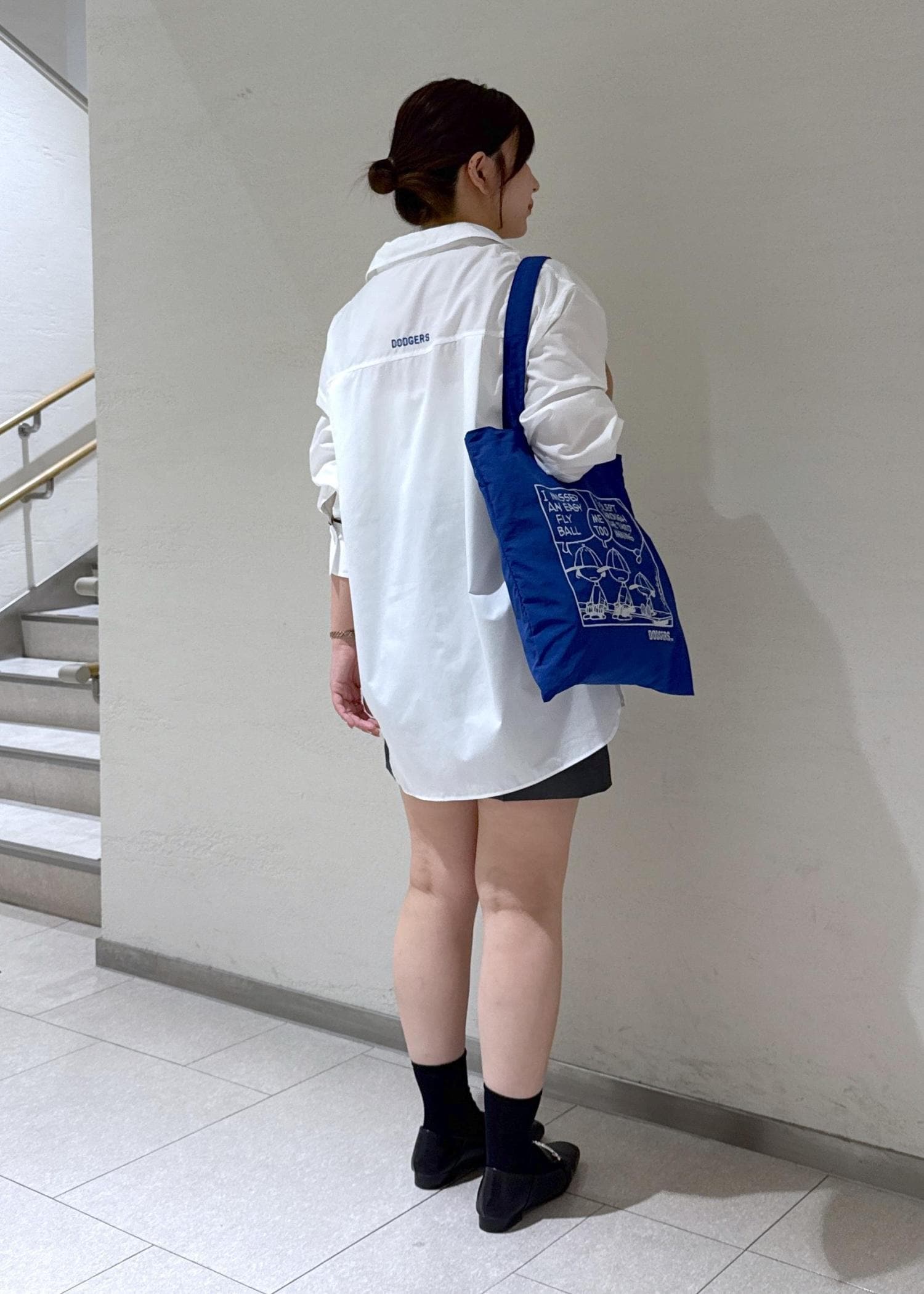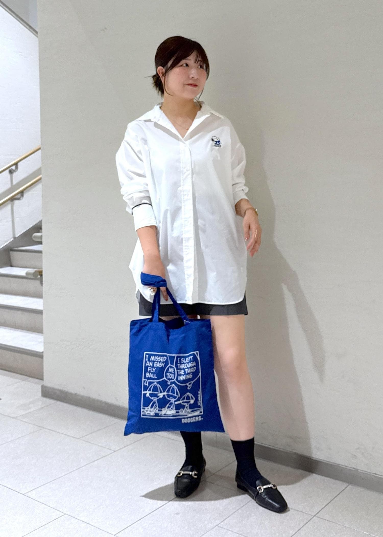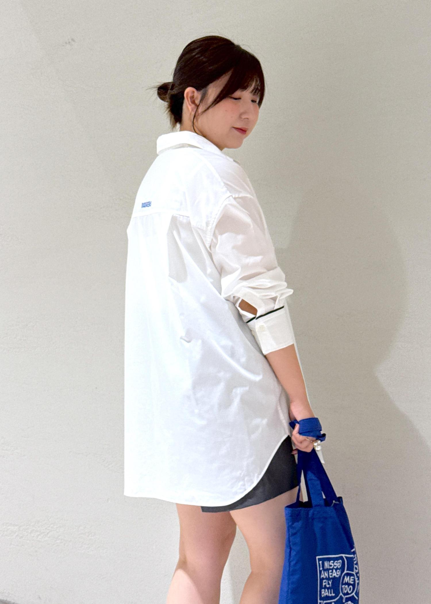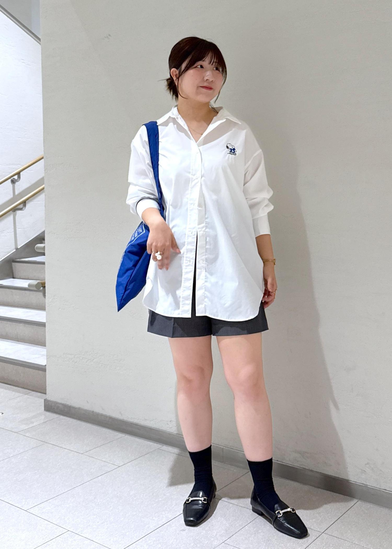 ハーフパンツはスタイリング例として合わせていますが、お恥ずかしながらサイズが合わずボタン開けてはいてます、、