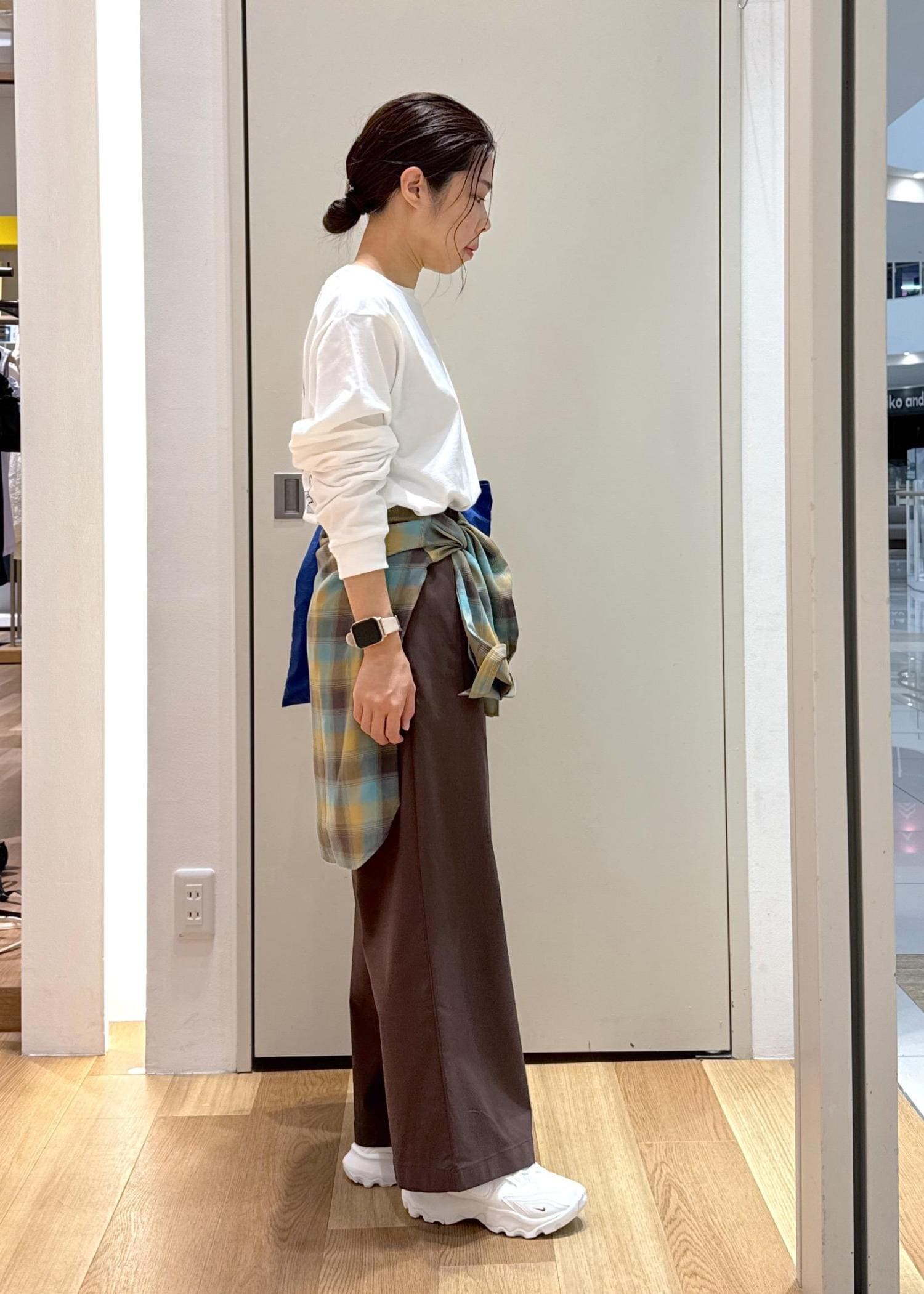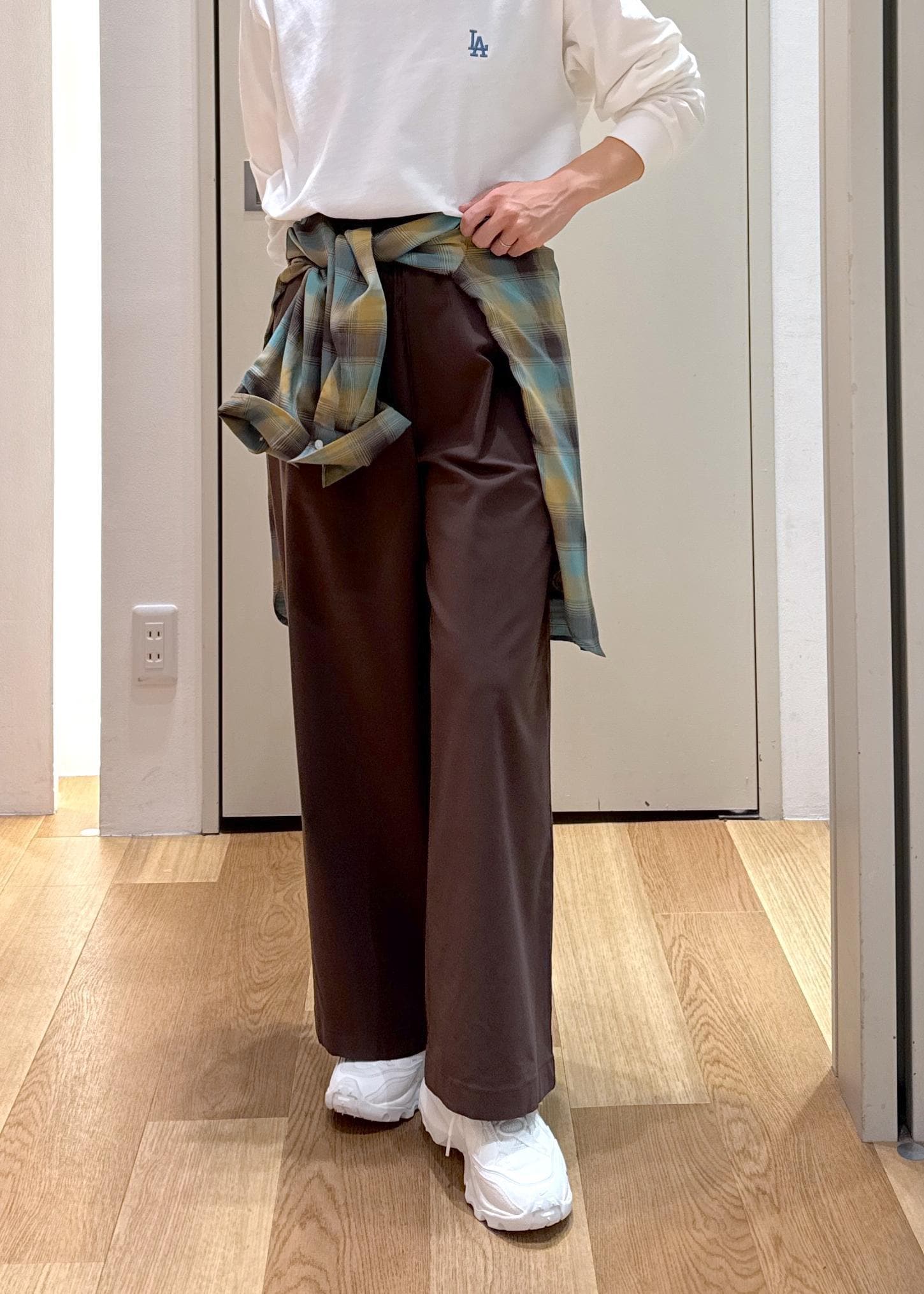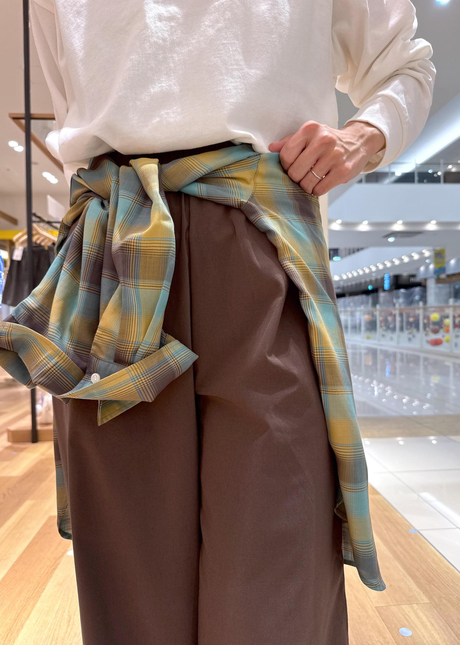 チェック柄のシャツとブラウンのワイドパンツで秋らしい雰囲気にしてみました♪