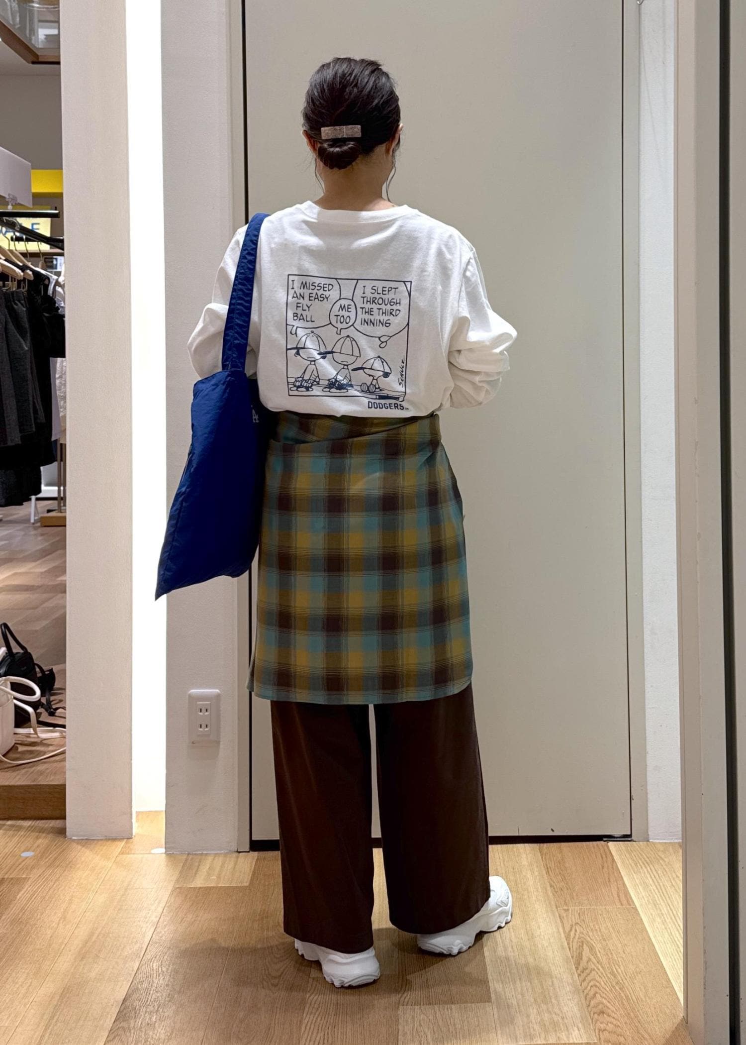 バッグプリントが可愛いロンTで、後ろ姿も映えるスタイルに!