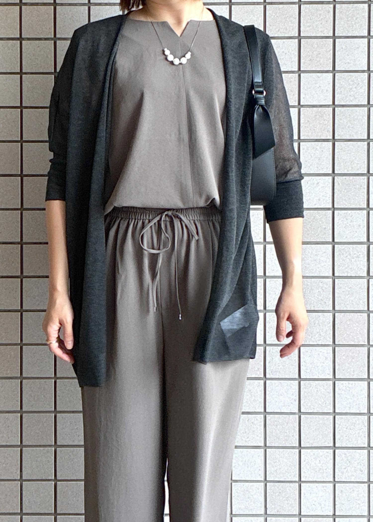 アウトレットROPÉ PICNIC【新色追加】LEVITAシアーニットリラックスカーディガンチャコール / 38T¥3,498レビューシアー素材なので、真夏も涼しく着れます。