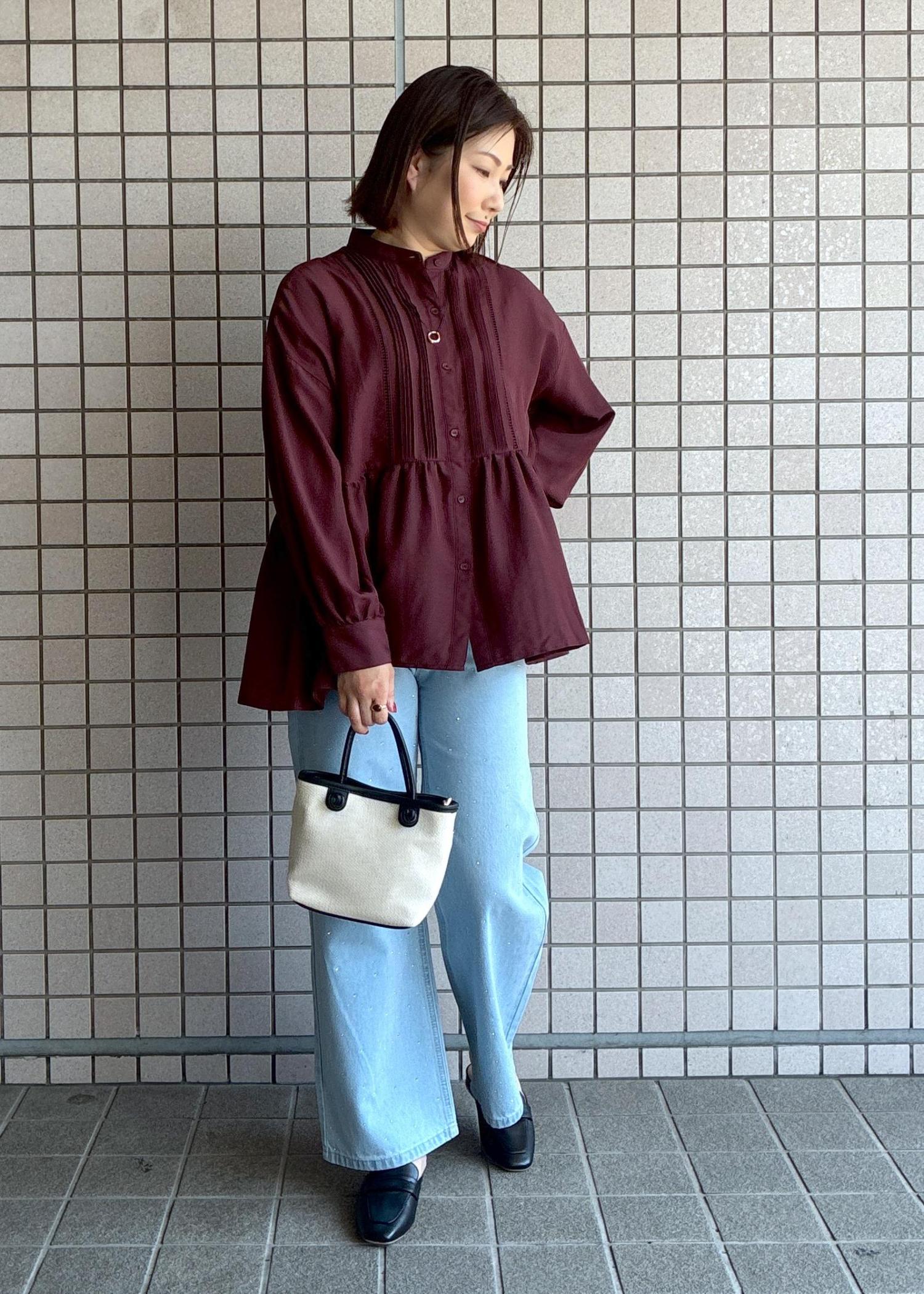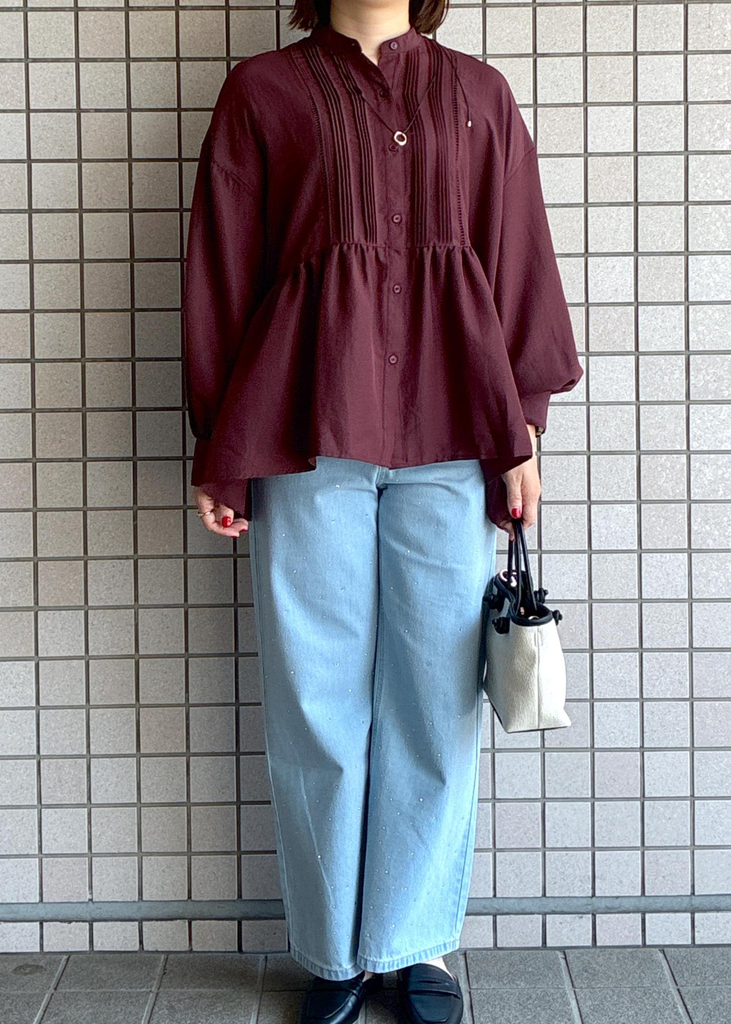 【UVケア・防シワ】羽織れるピンタックデザインペプラムシャツ