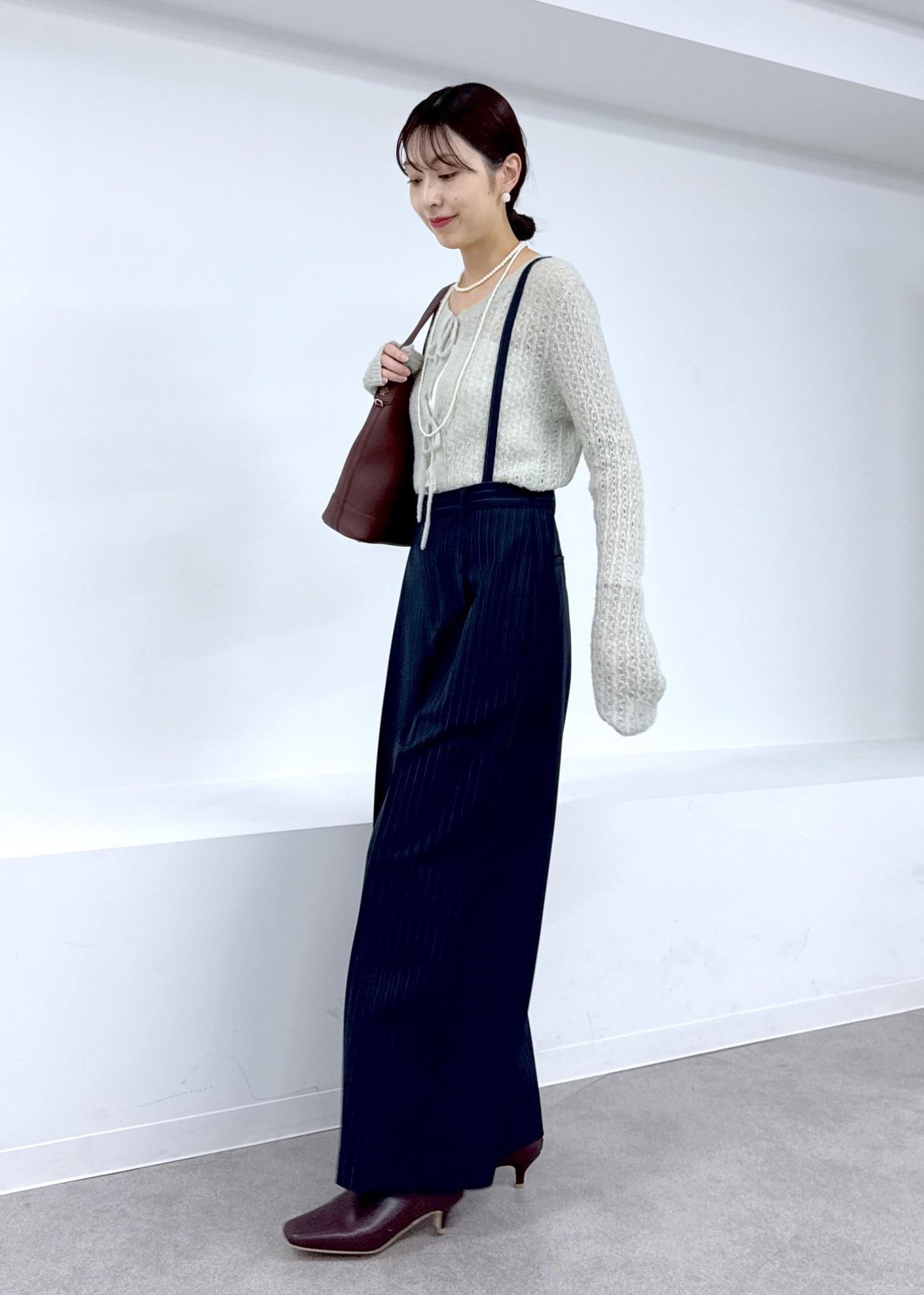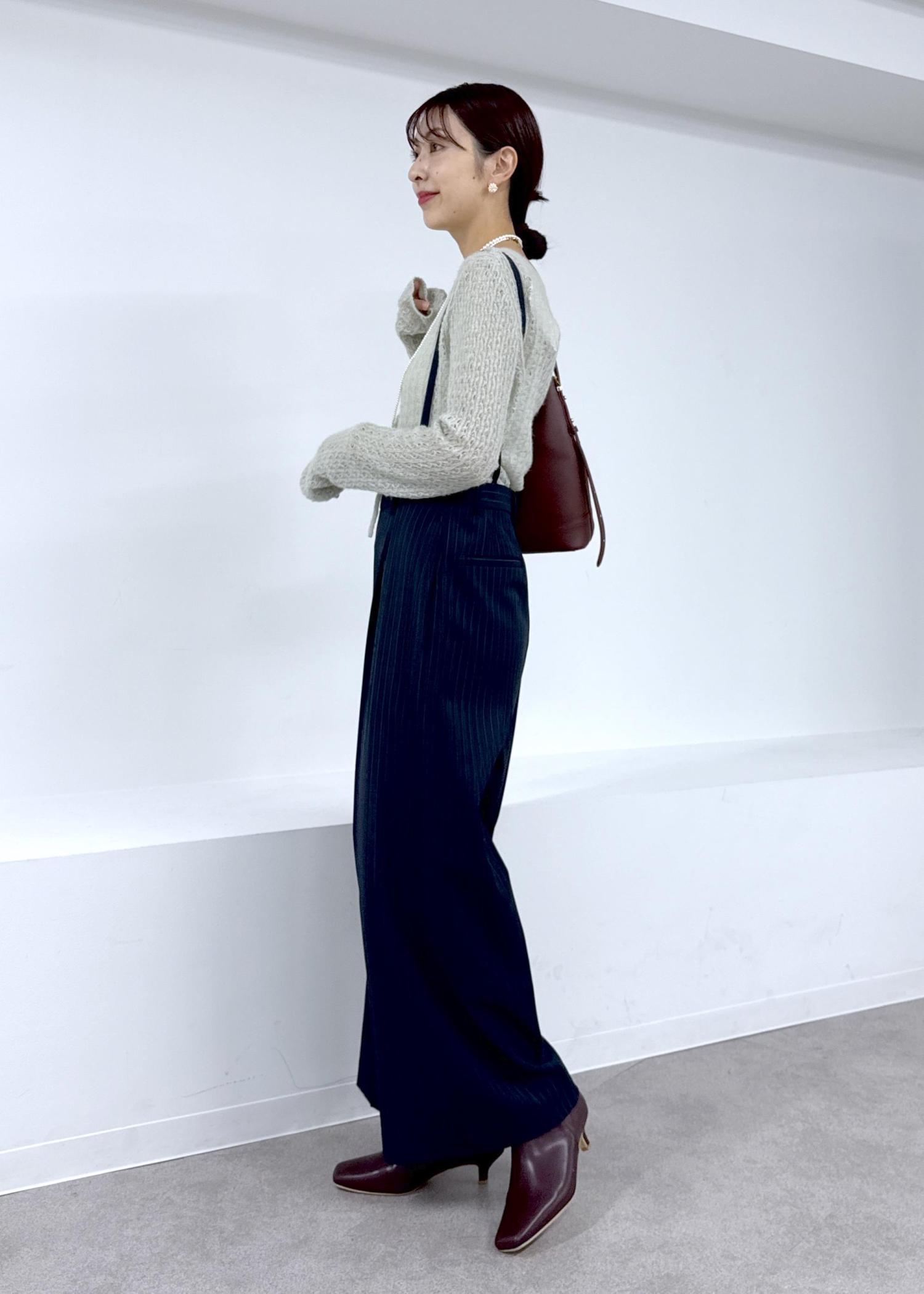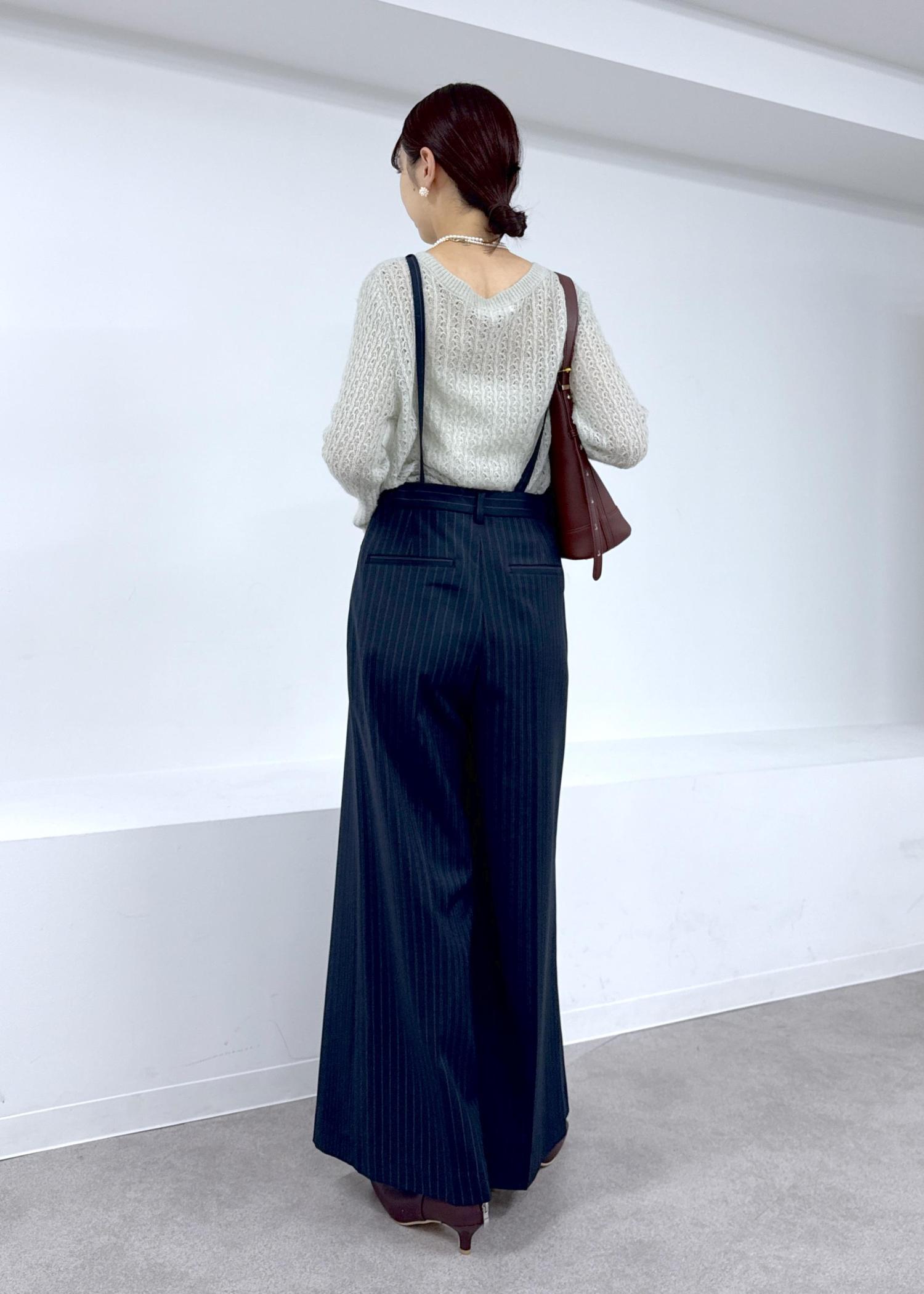 ROPÉ PICNICフレアシルエットサスペンダー付きパンツネイビー / 38¥4,499レビューワイドシルエットですがセンターラインが入っているのでスマートな印象。裏なしなのでサラッと軽い履き心地。38サイズは少しヒールのある靴と合わせるとちょうどいいバランスで履けました。