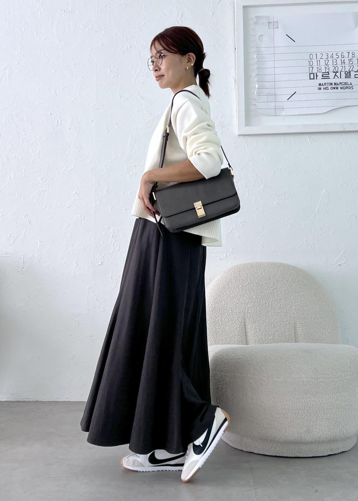 足元はNIKEのスニーカーで軽やかにお出かけに着やすいスタイリングにしました。