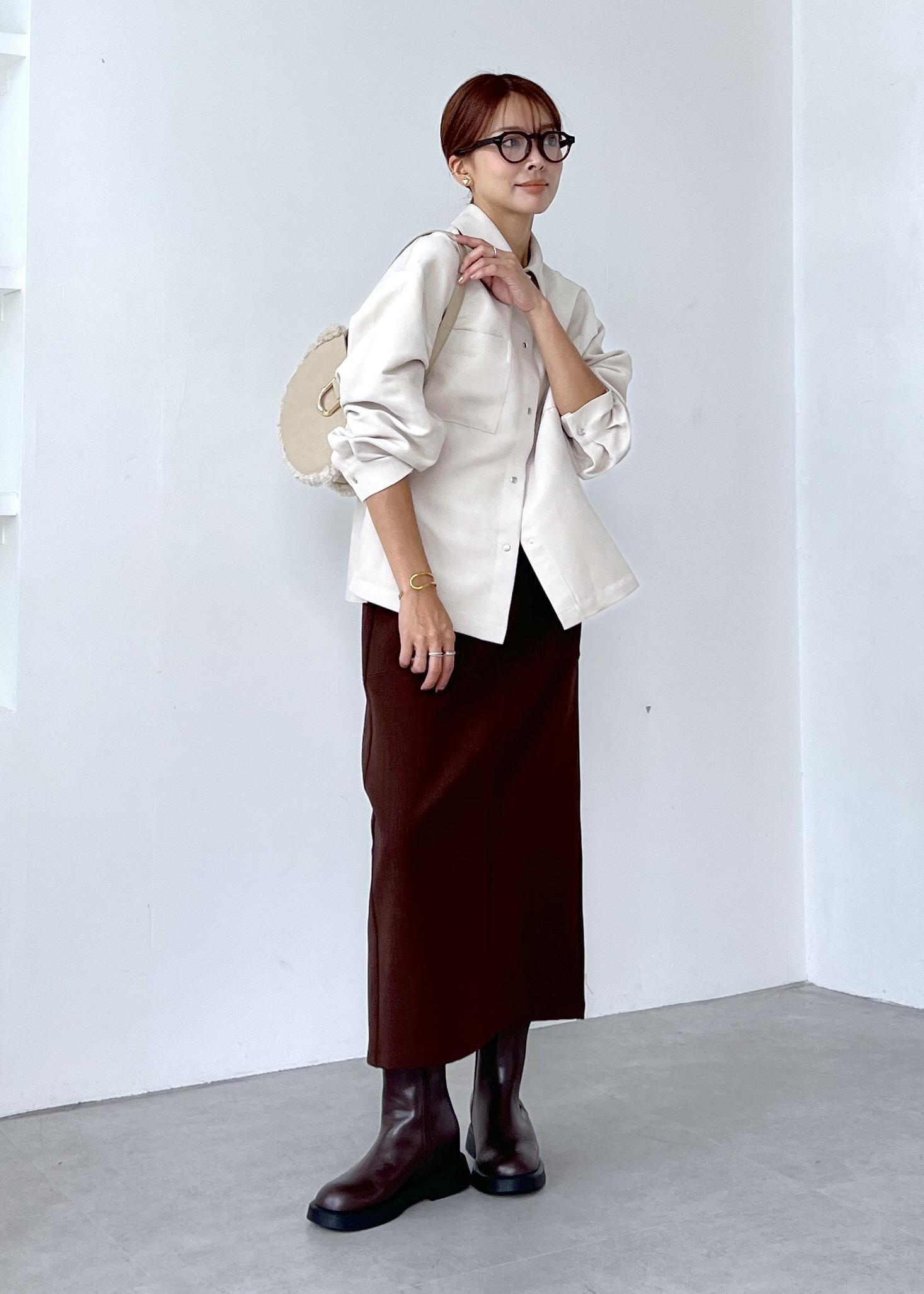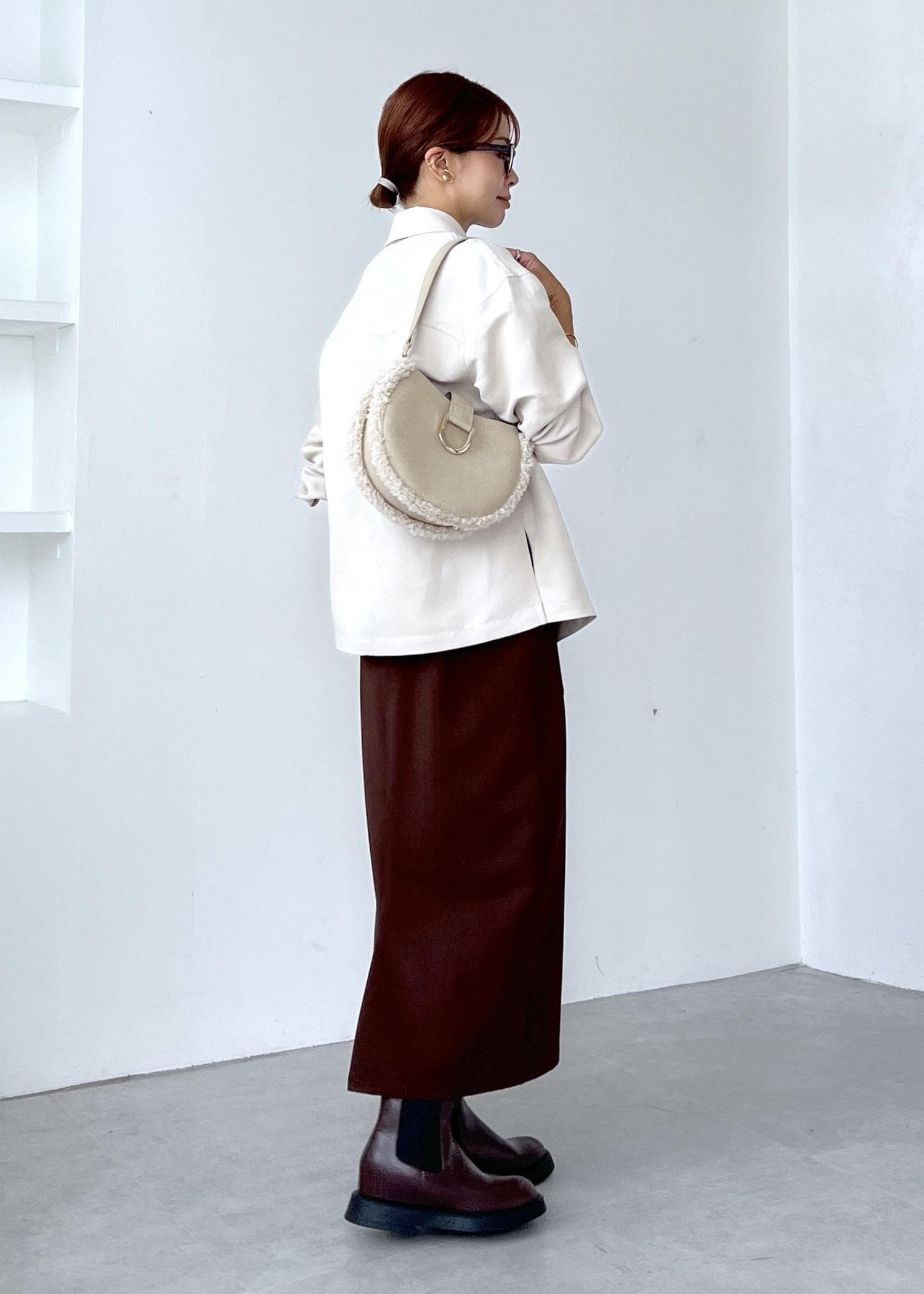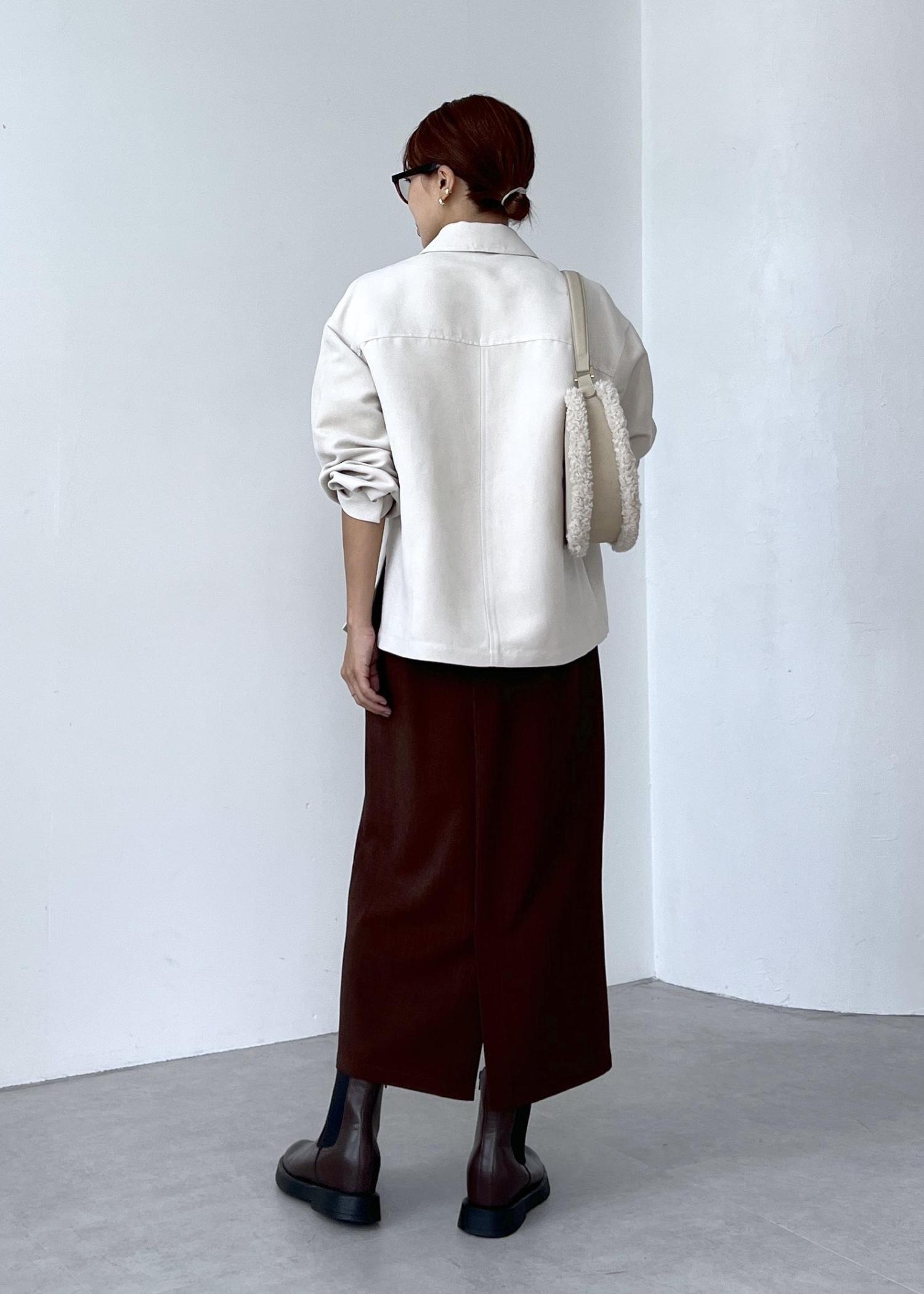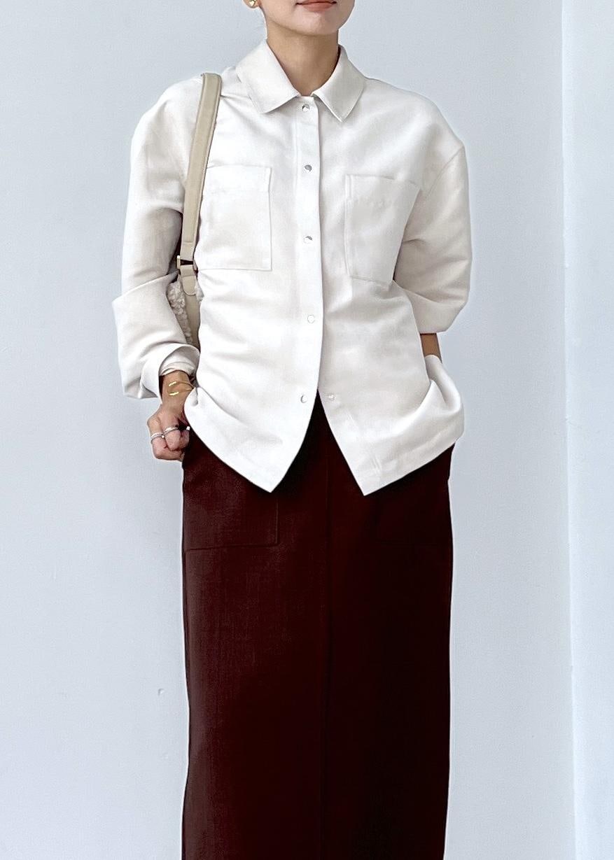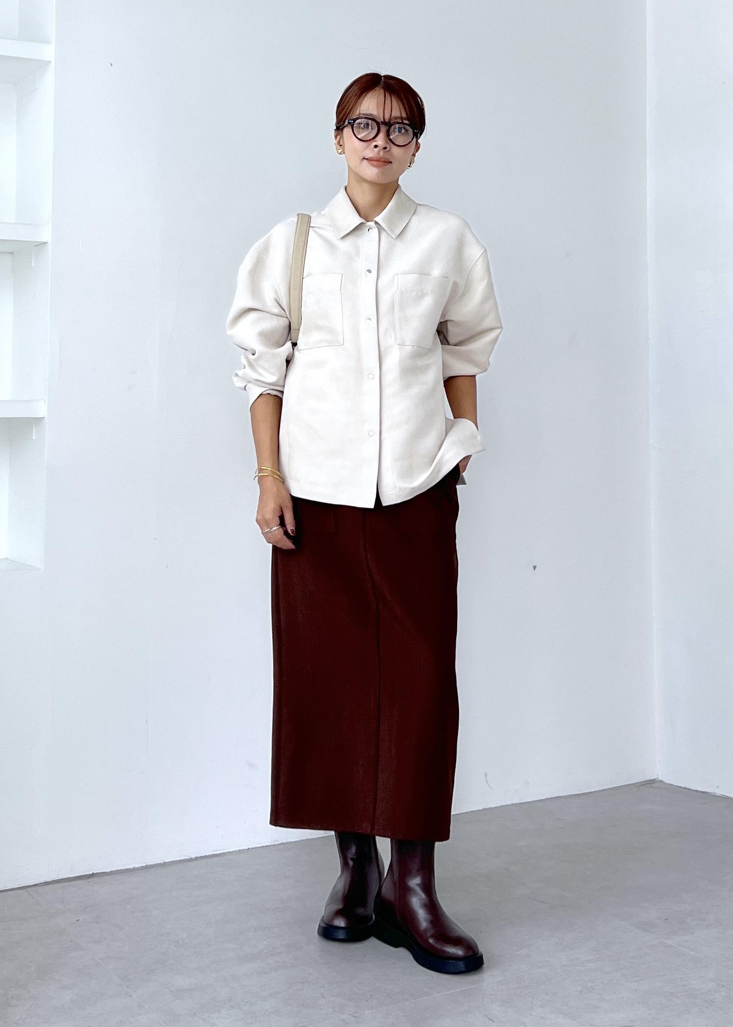 柔らかくしなやかなスエード生地のシャツは、1枚着るだけで秋冬感のある生地がポイント。