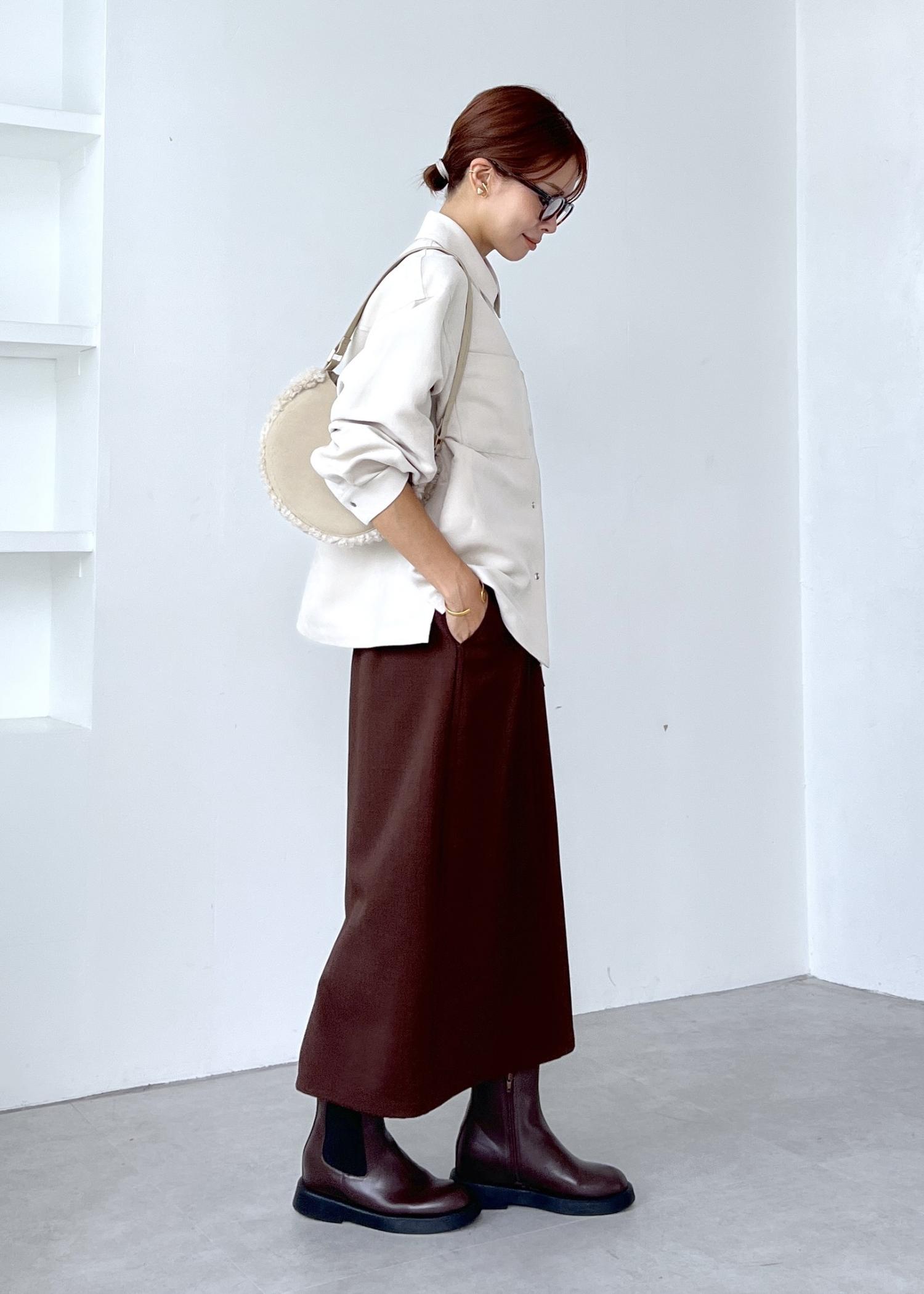 ベージュ×ブラウンで大人カジュアルなスタイリングにしました。