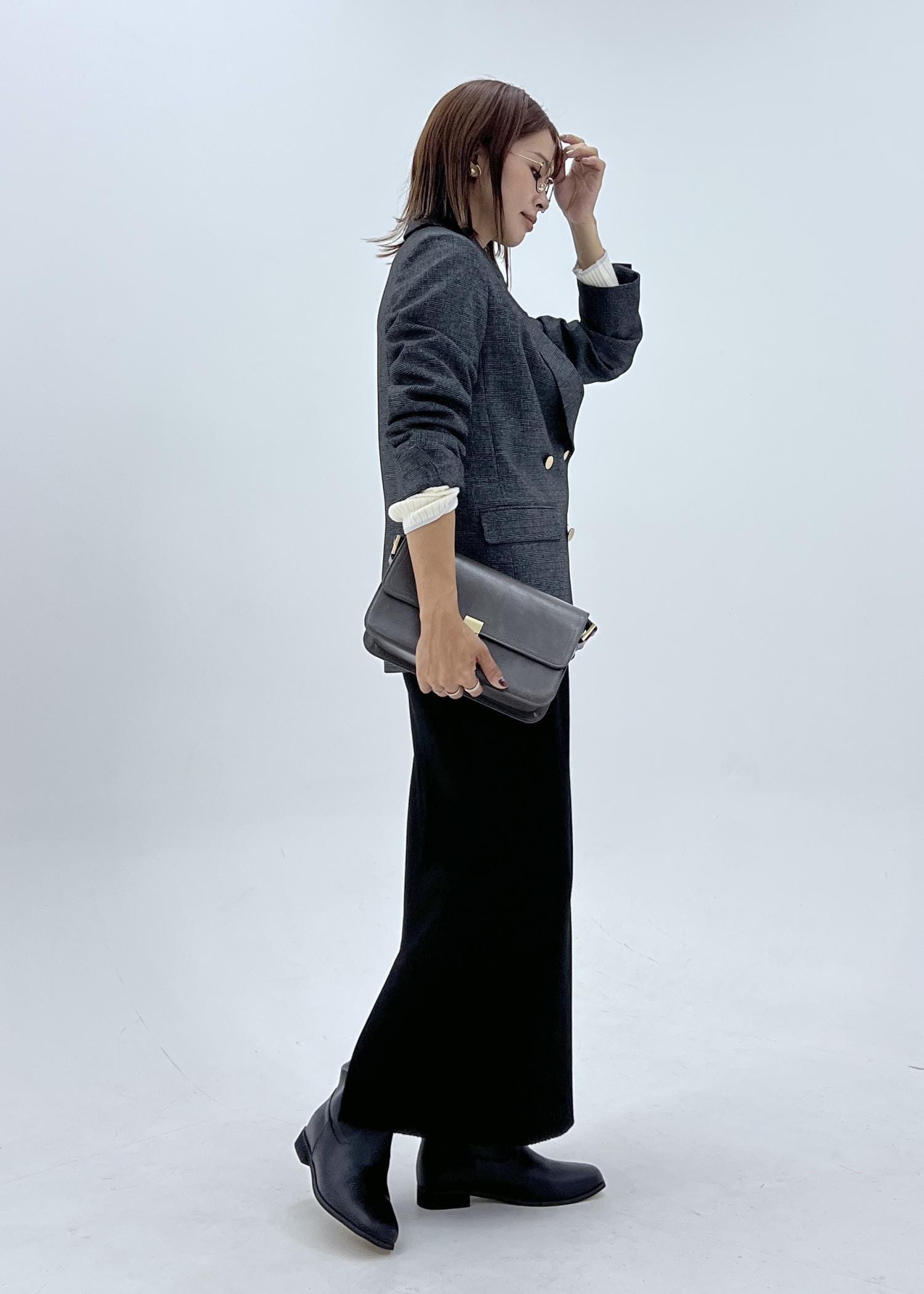 モノトーンでまとめてきちんと感のあるクラシカルなコーデで、秋冬のお出かけに◎。