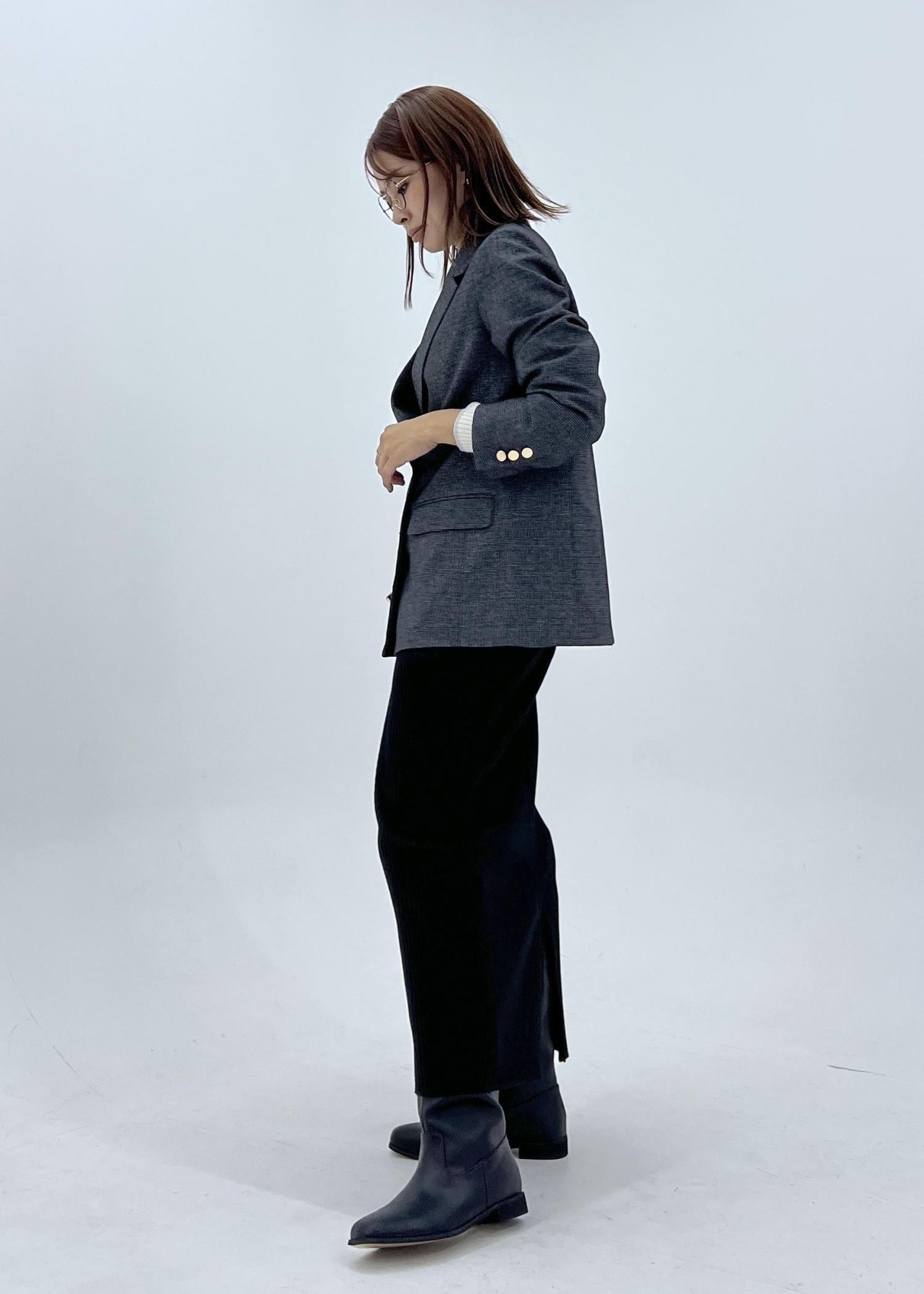 長すぎない着丈なので、オンオフ両方で合わせやすい丈感。 -