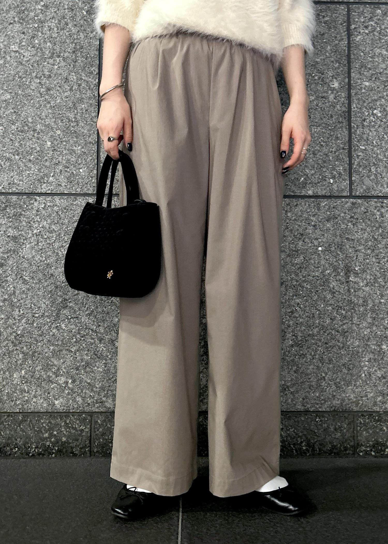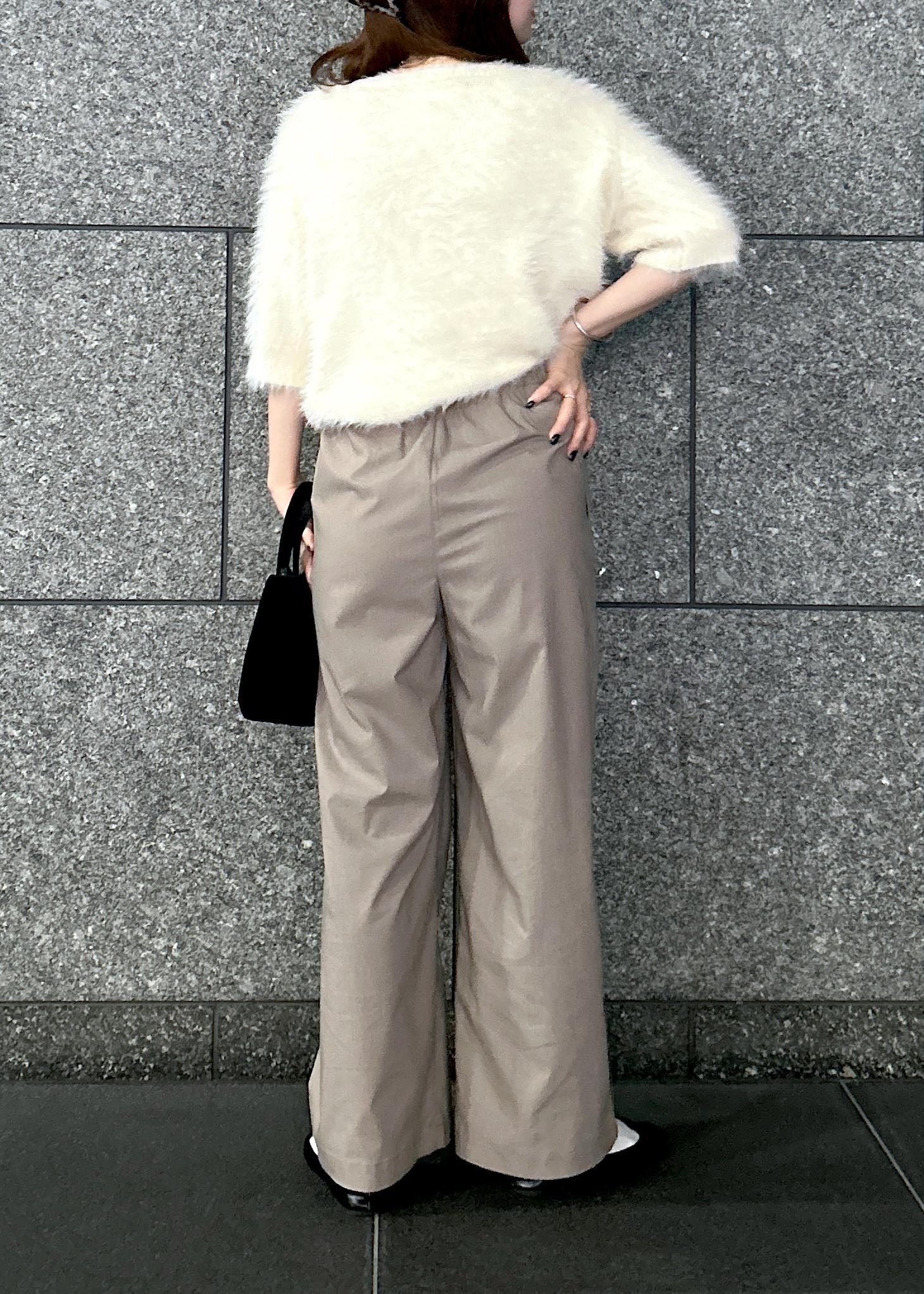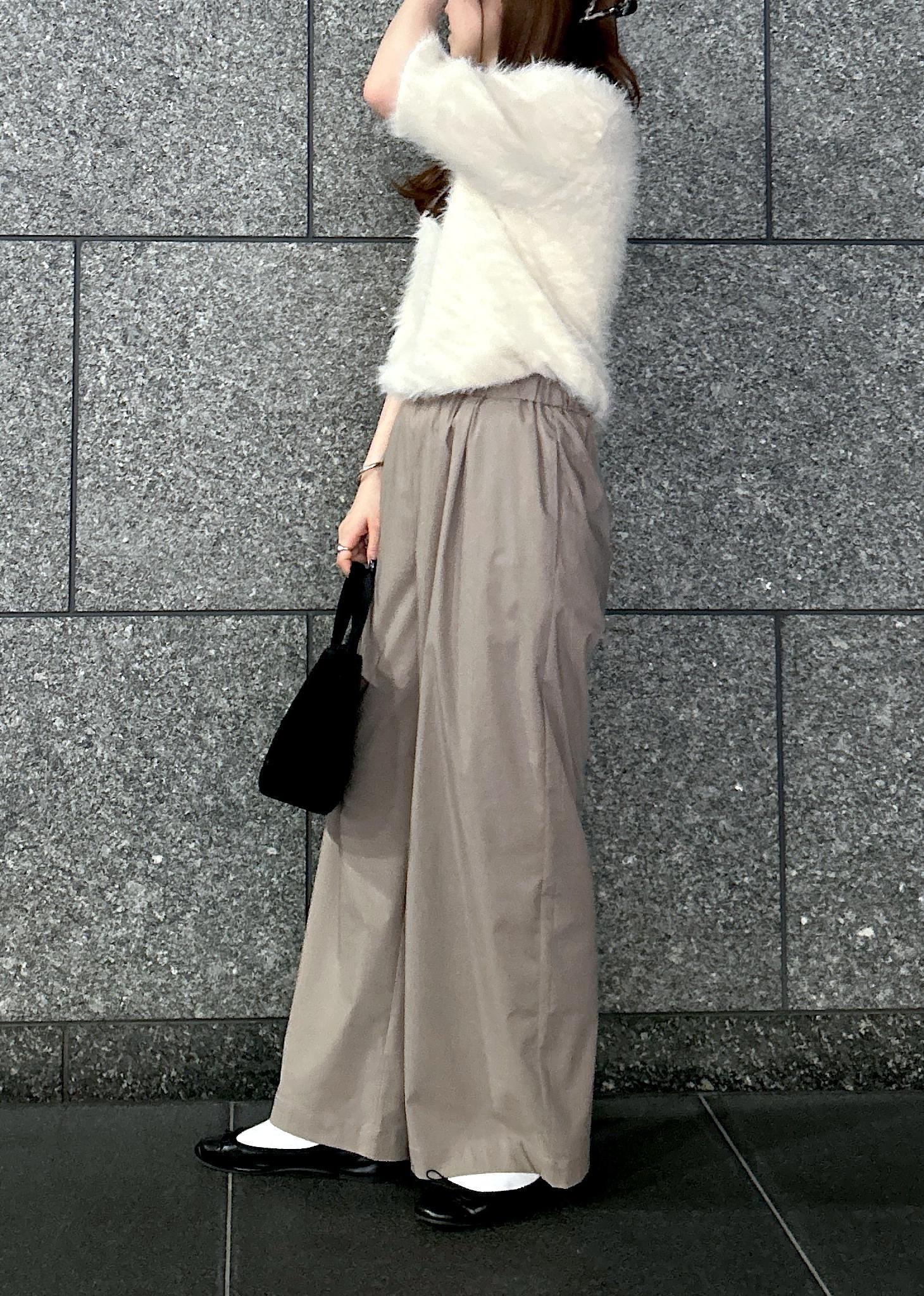 秋口に人気のフェザーニットにワイドパンツを合わせた大人カジュアルコーデ。