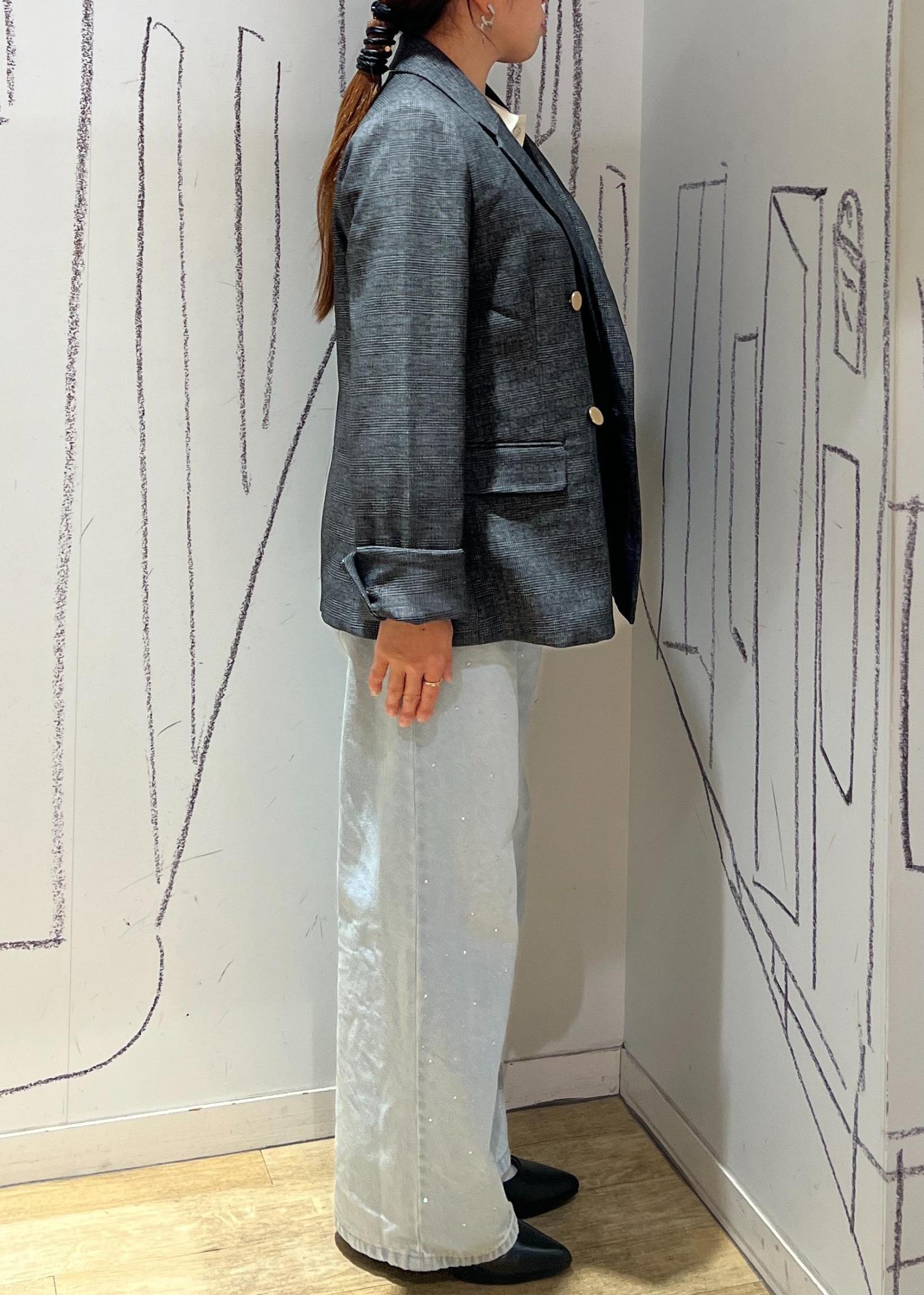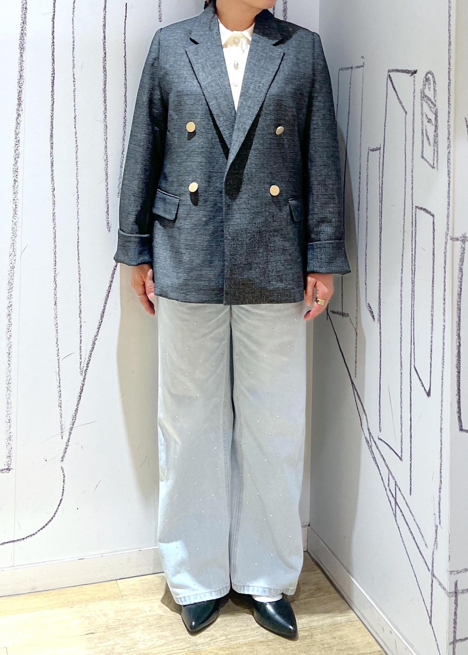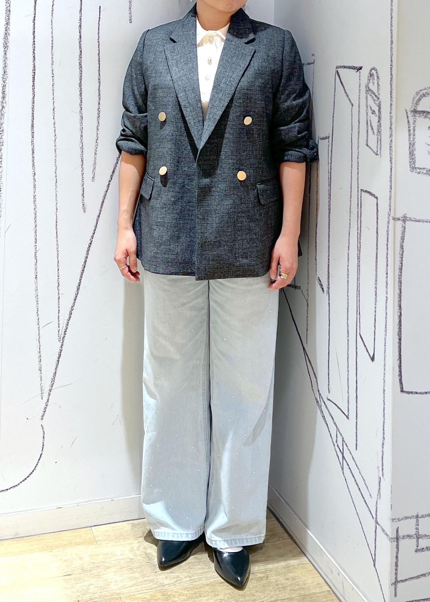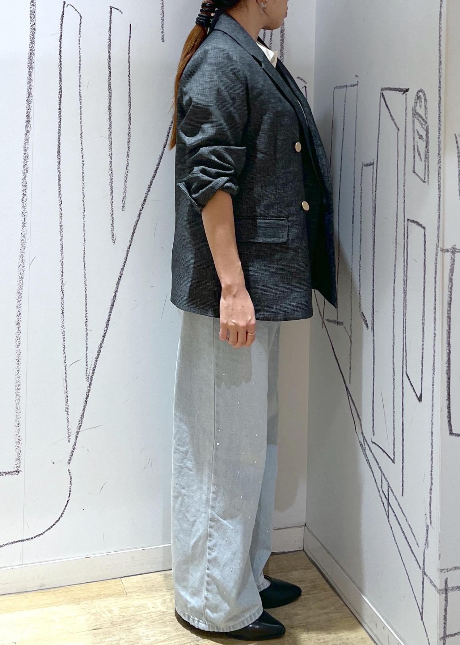 ROPÉ PICNICレディハンサムシリーズ ウールライク金ボタンジャケット(半裏地)/セットアップ・通勤対応ライトグレー / M¥8,998レビュー定番の金釦ジャケット。身柄半分の裏地が暑い時期が長くなった今、重宝します◎そのまま着ると袖丈は長いですが、袖のスリットから折り返すときちんと着れる長さです。着丈はお尻に掛かる長さでスタンダードに流行りなく着れます◎腕周り、バスト周りはタイト過ぎないので、中にリブニットと合わせることも可能です!02.07色はチェック柄ですが、柄物合わせが出来るくらいの目立たないものでコーディネートの幅が広がります◎