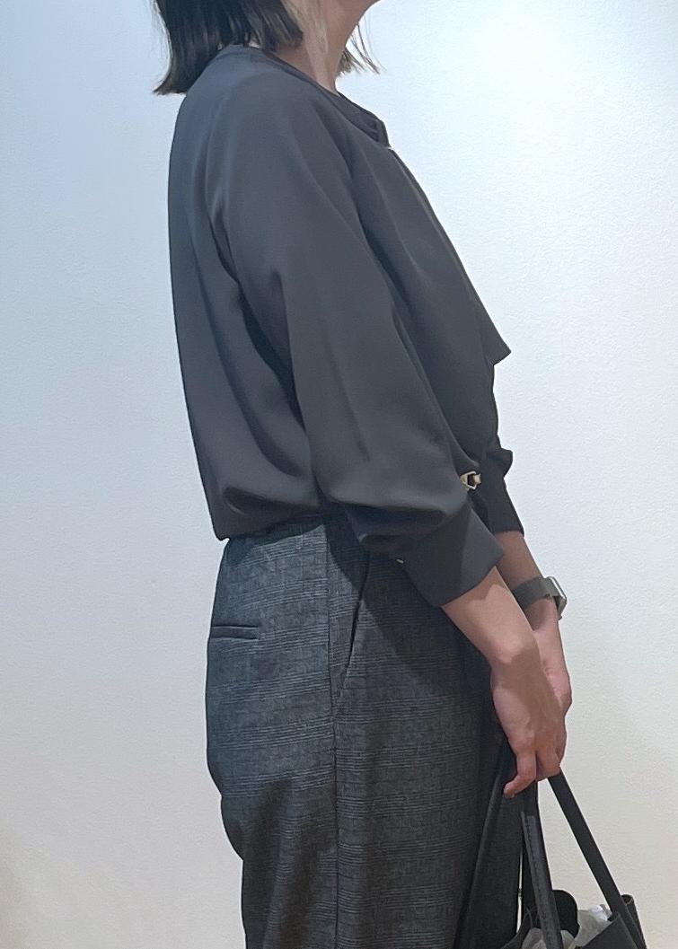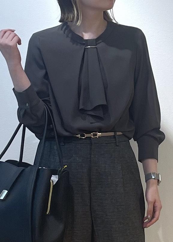 ROPÉ PICNIC【WEB限定カラー・サイズ】メタルパーツフロントフリルタイブラウス/通勤対応チャコール / M¥4,499レビュー毎年人気のボウタイ風ブラウスです♩