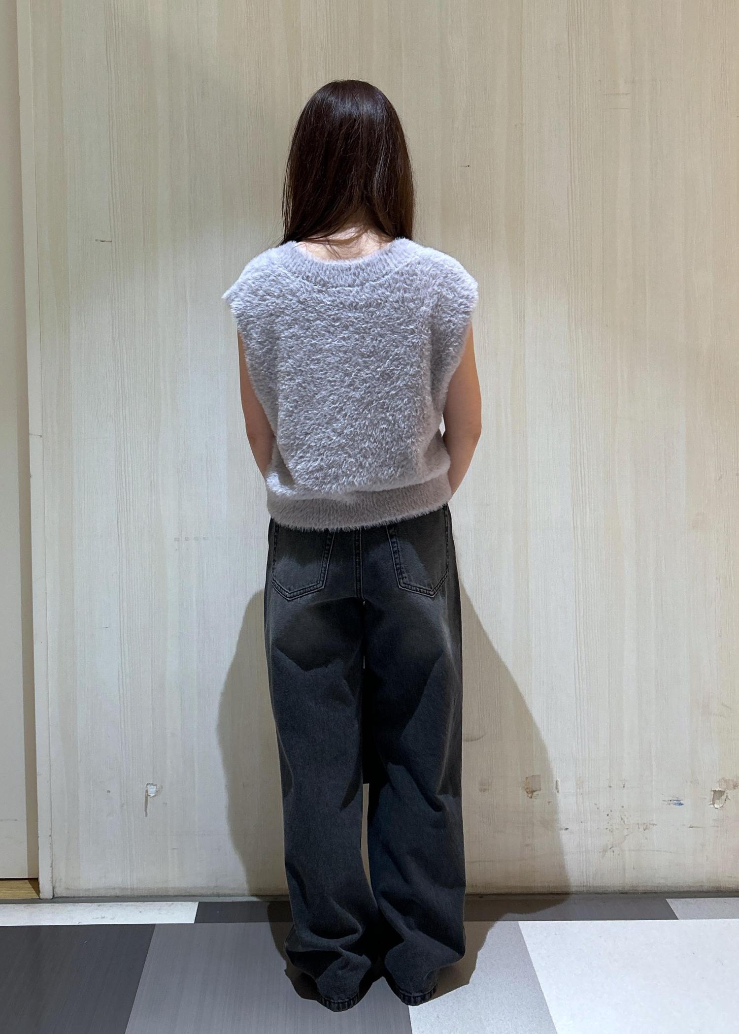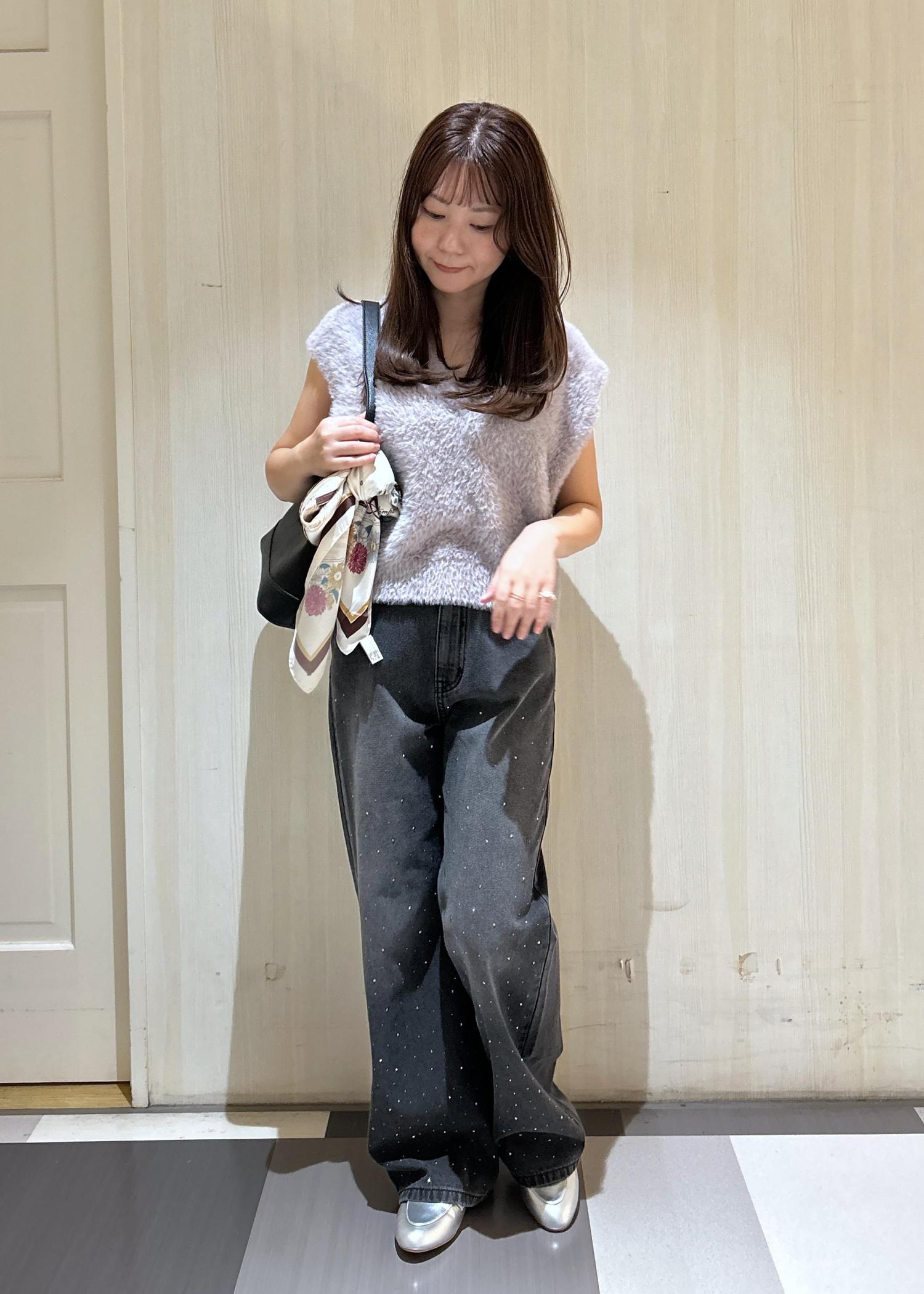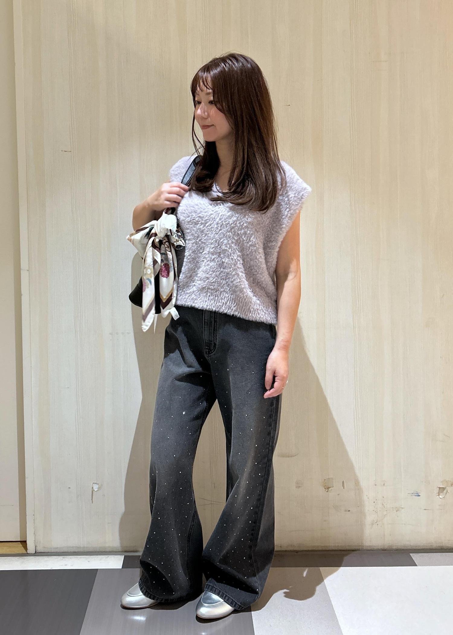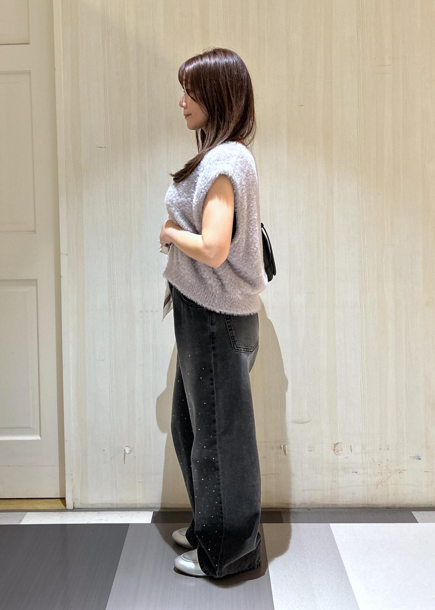シャギーベストと大人気ビジューデニムのコーデにしました!!!