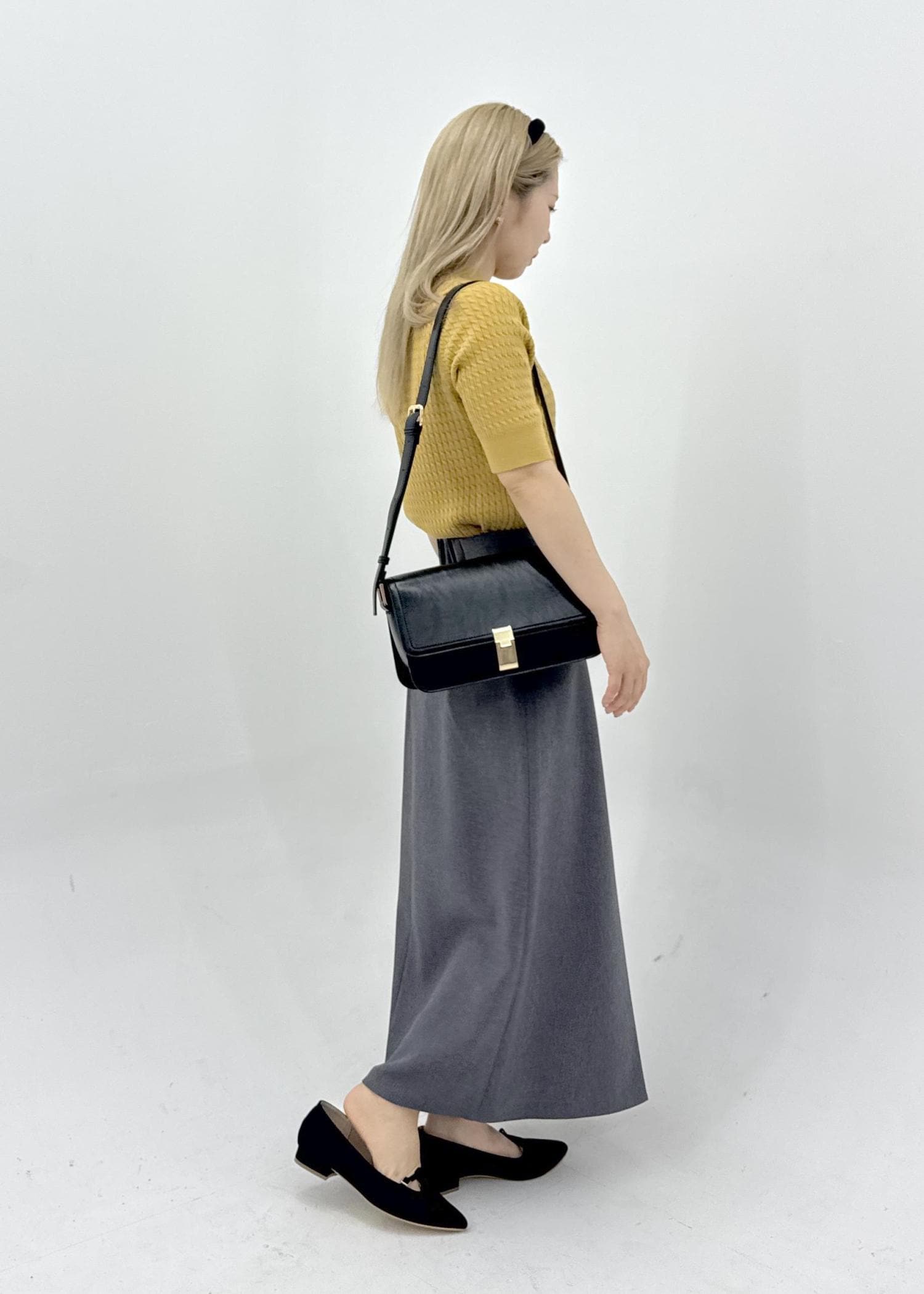 杢調ツイル素材でシーズンレスでも使いやすく、ジャケットやデニムなど幅広いテイストに合わせていただけます。